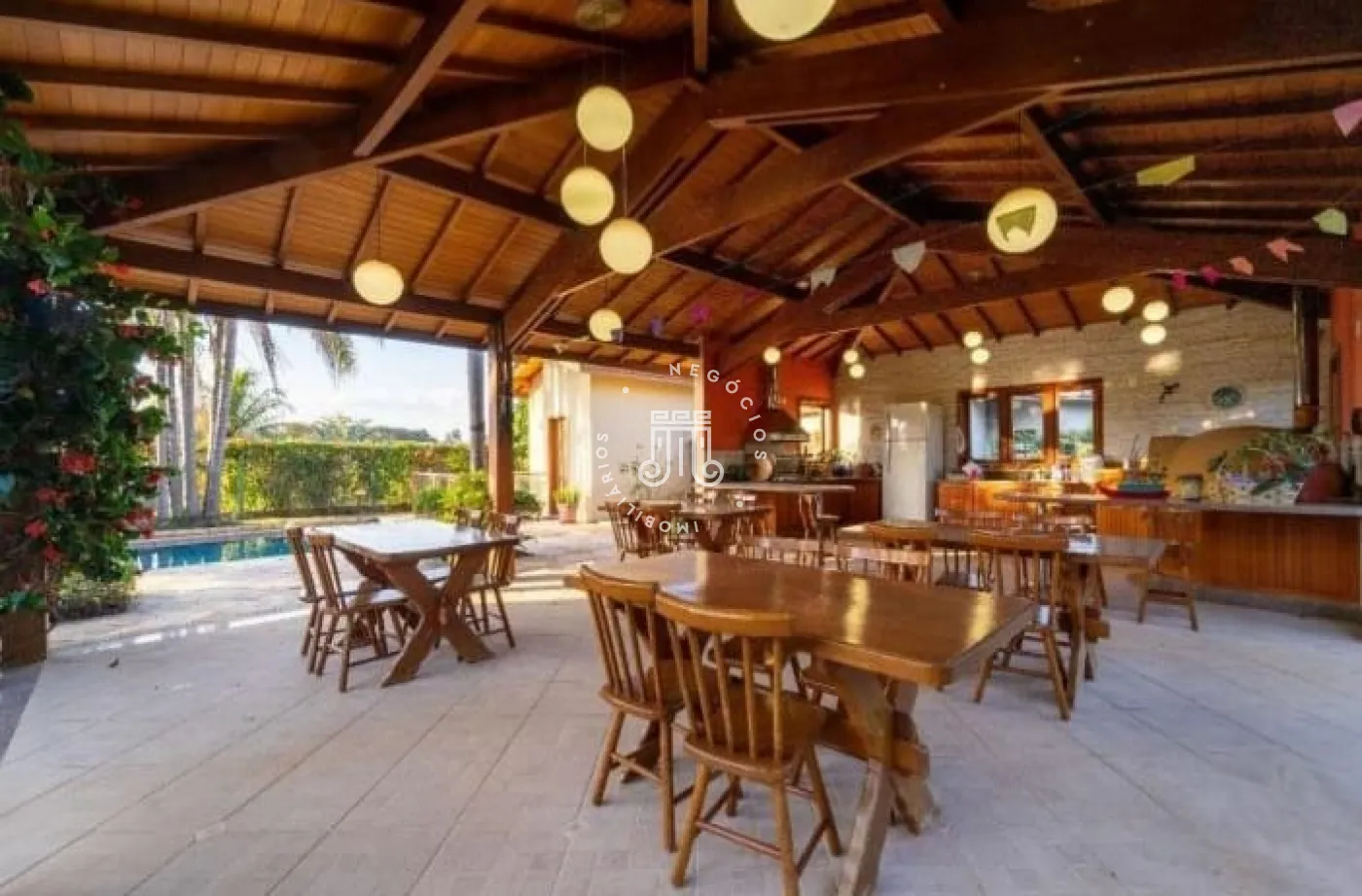 A casa ainda conta com espaço gourmet, piscina com vestiários e canil.