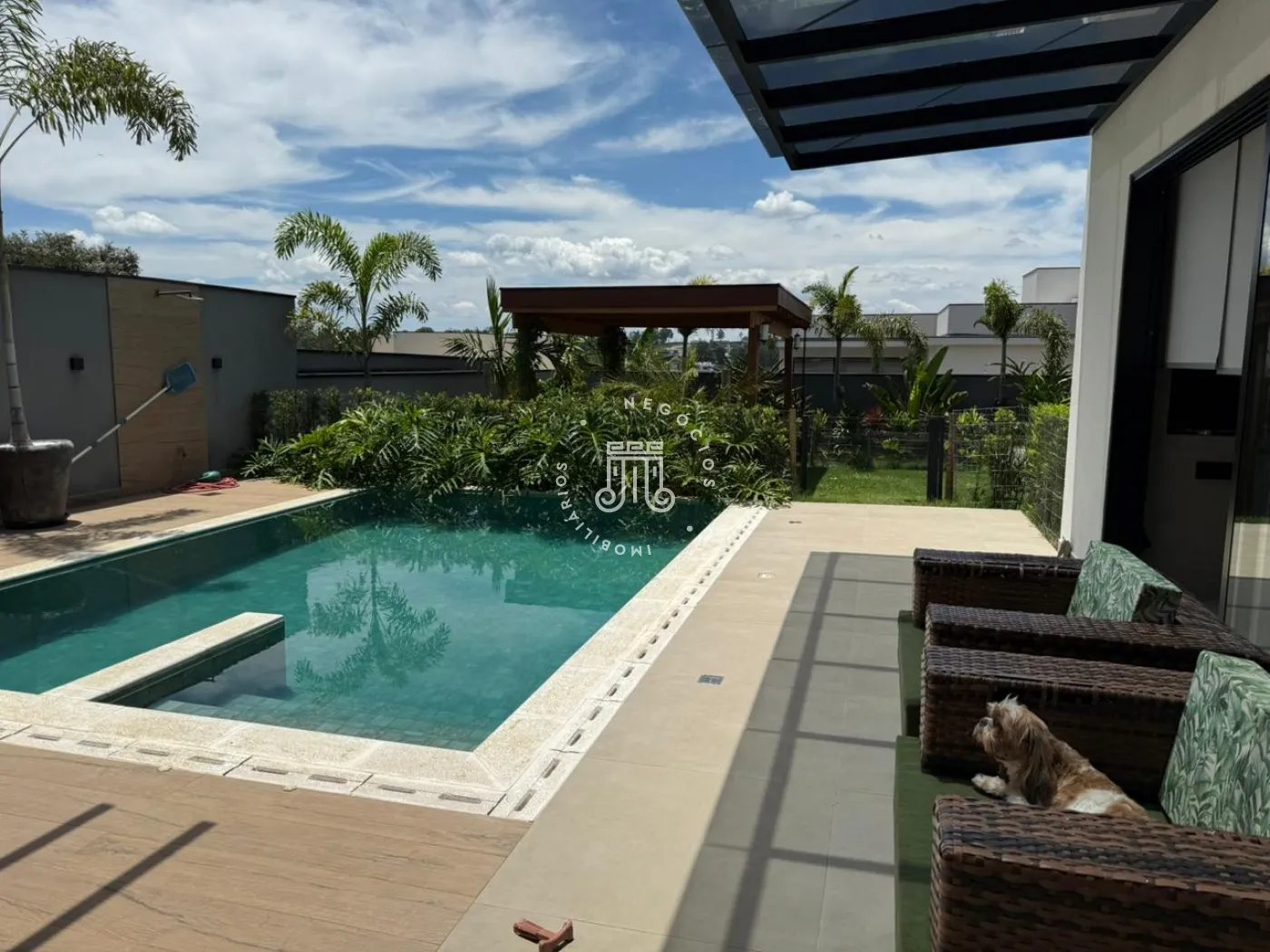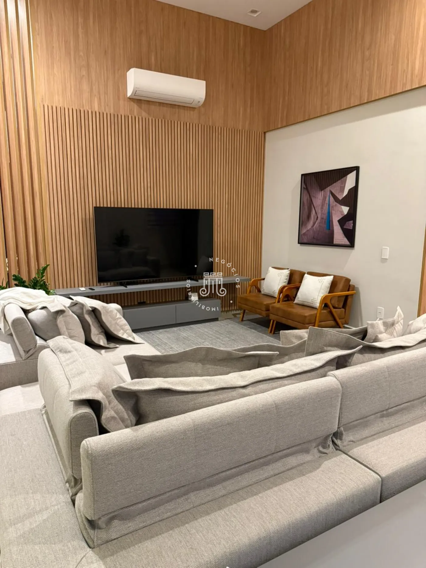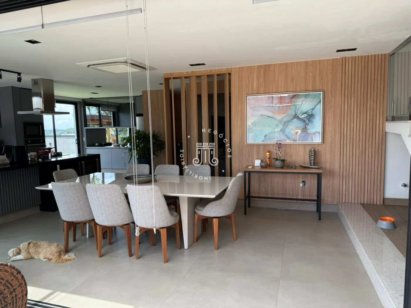Composto por terreno com 800 metros quadrados e área construída de 300 metros quadrados. A Casa possui sala de estar e de tv, ambas com moveis planejados. Cozinha integrada com varanda/sala de jantar em conceito aberto e com vista para a piscina. São quatro dormitórios sendo todos suítes. O espaço gourmet conta com churrasqueira, piscina e ainda area verde com um bangalô.