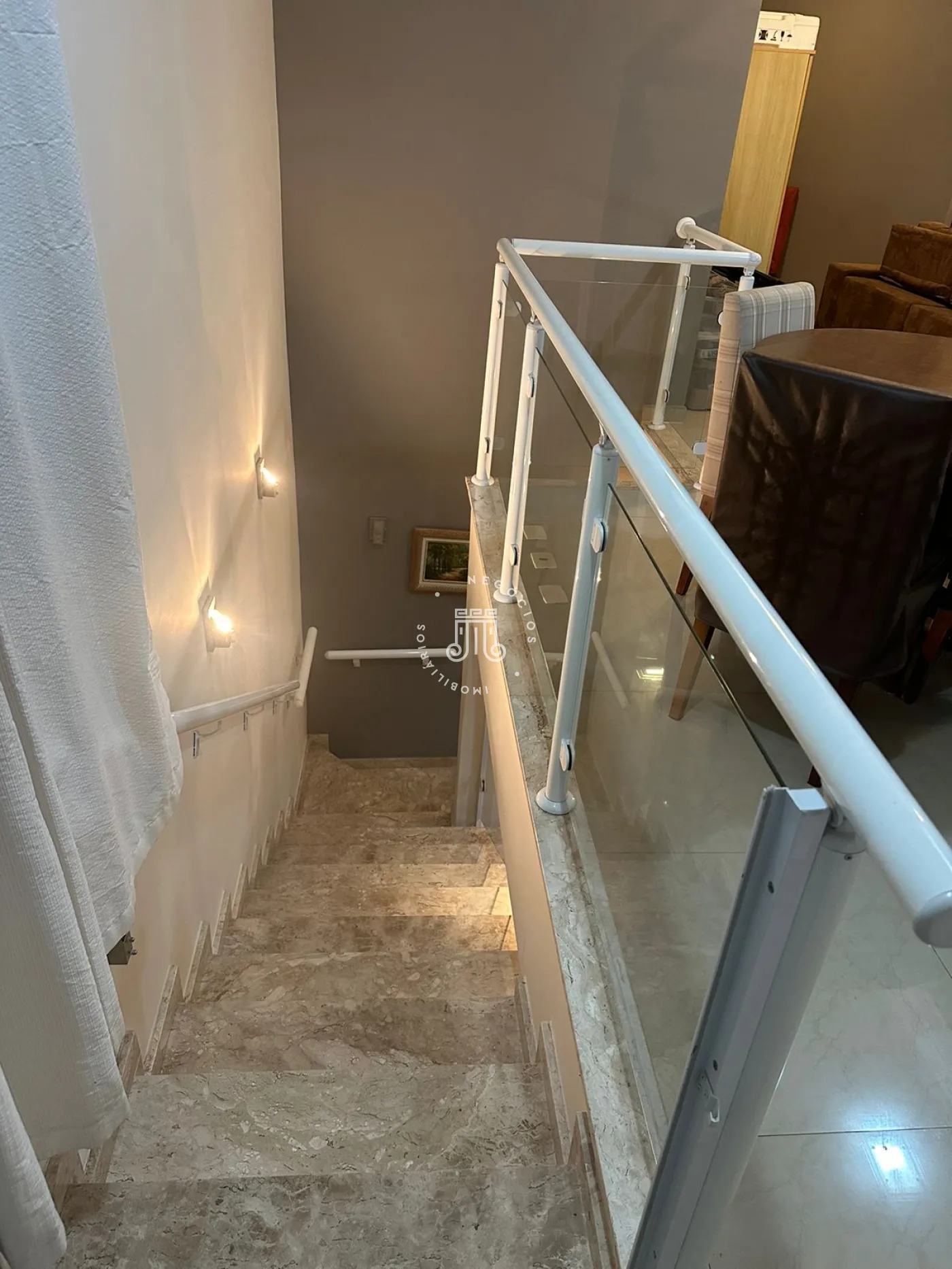 Além dos cômodos serem bem distribuídos, a casa tem um acabamento piso cerâmico, escada com para-peito em vidro, planejados, banheiros com box blindex, infra para ar condicionado, aquecedor solar e boiller e tomadas com voltagens 110 e 220.