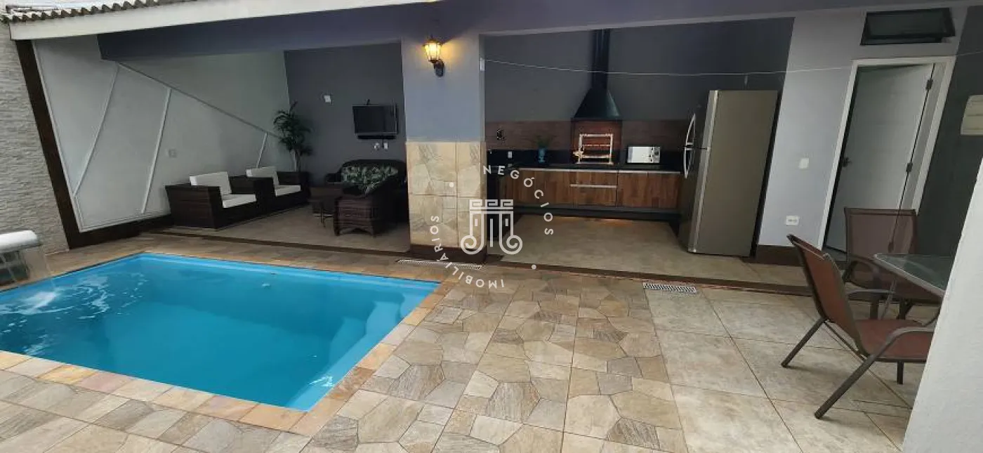 Área gourmet com piscina aquecida, churrasqueira e um espaço para relaxar.