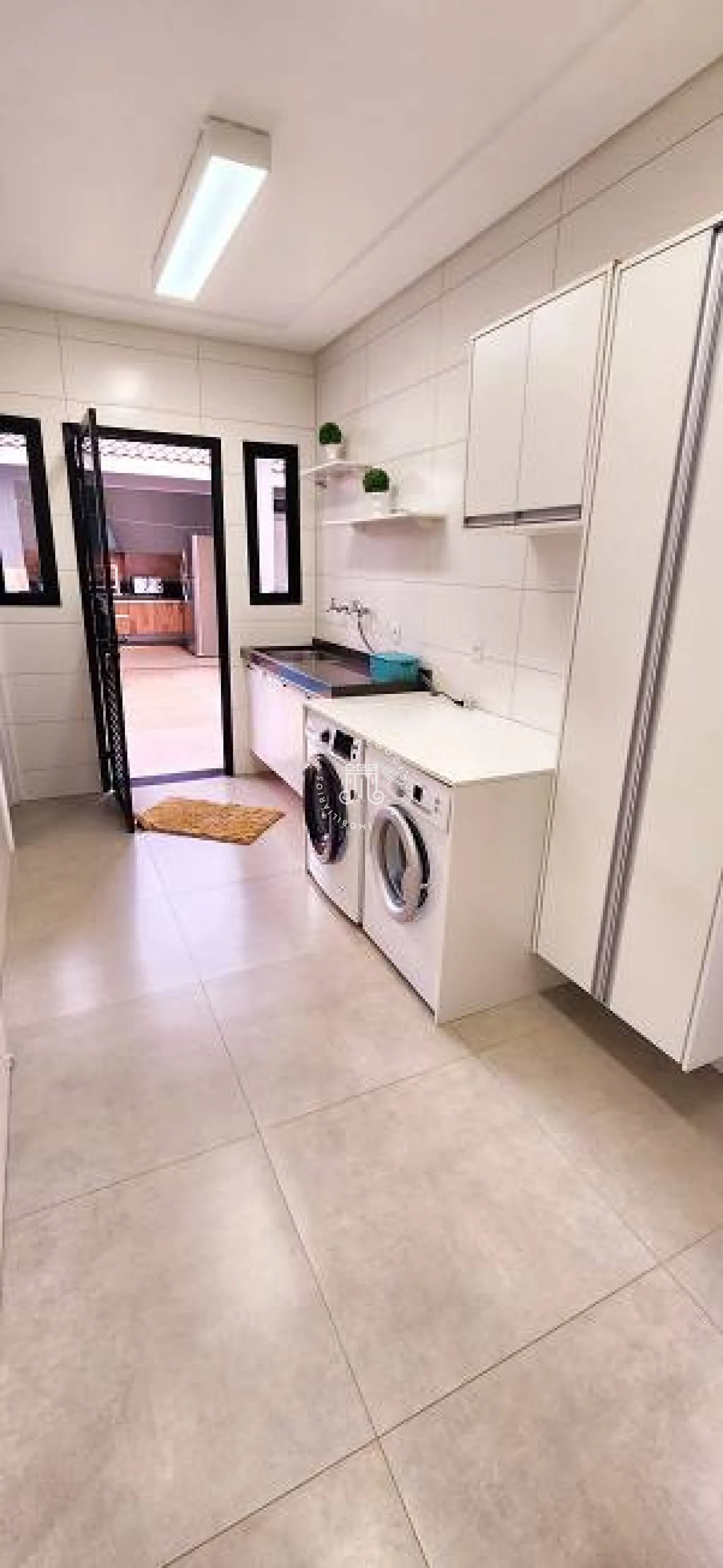 Cozinha moderna com armários planejados, integrada com sala de jantar com uma mesa para 4 pessoas, e despensa. Lavanderia.