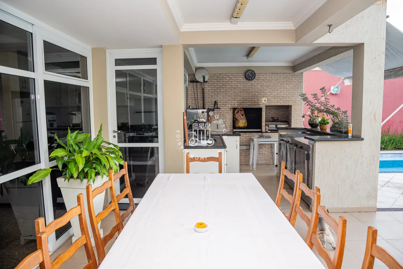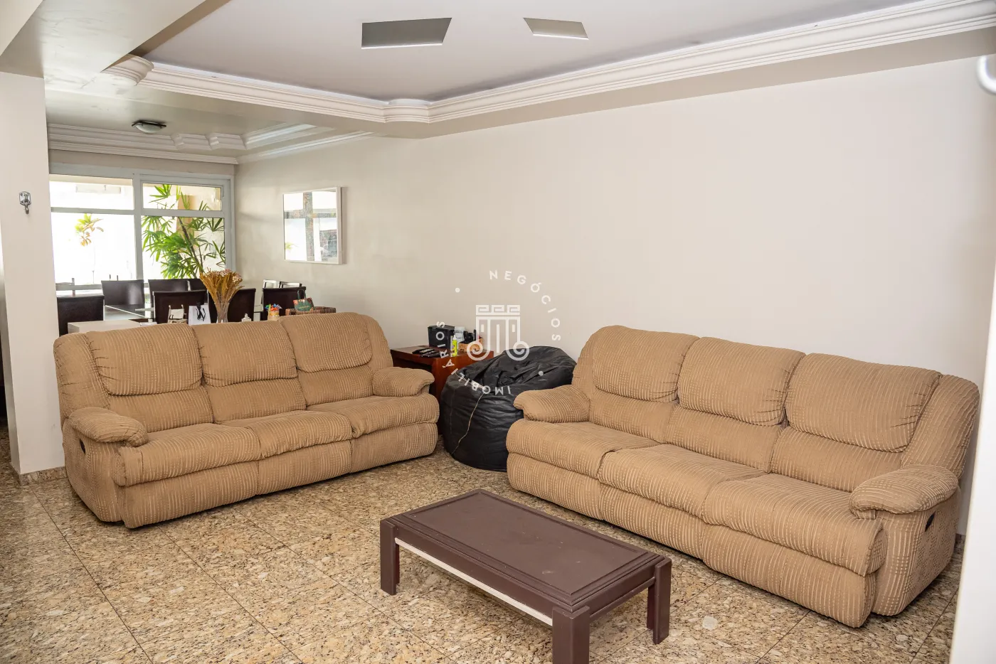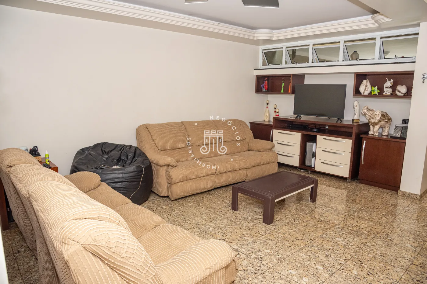 Piso Inferior: 01 suíte, 04 vagas de garagem cobertas, sala de estar, sala de jantar, lavabo, cozinha ampla, área de serviço, quintal amplo com piscina aquecida (aquecedor elétrico), churrasqueira, sauna e 02 banheiros na área externa.
