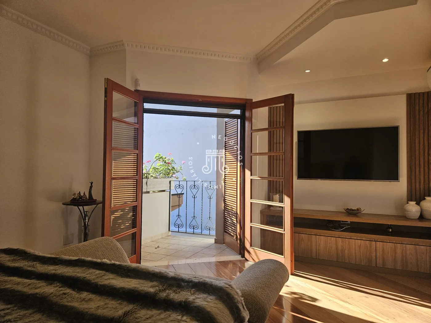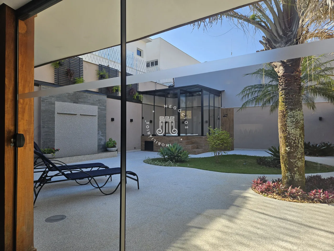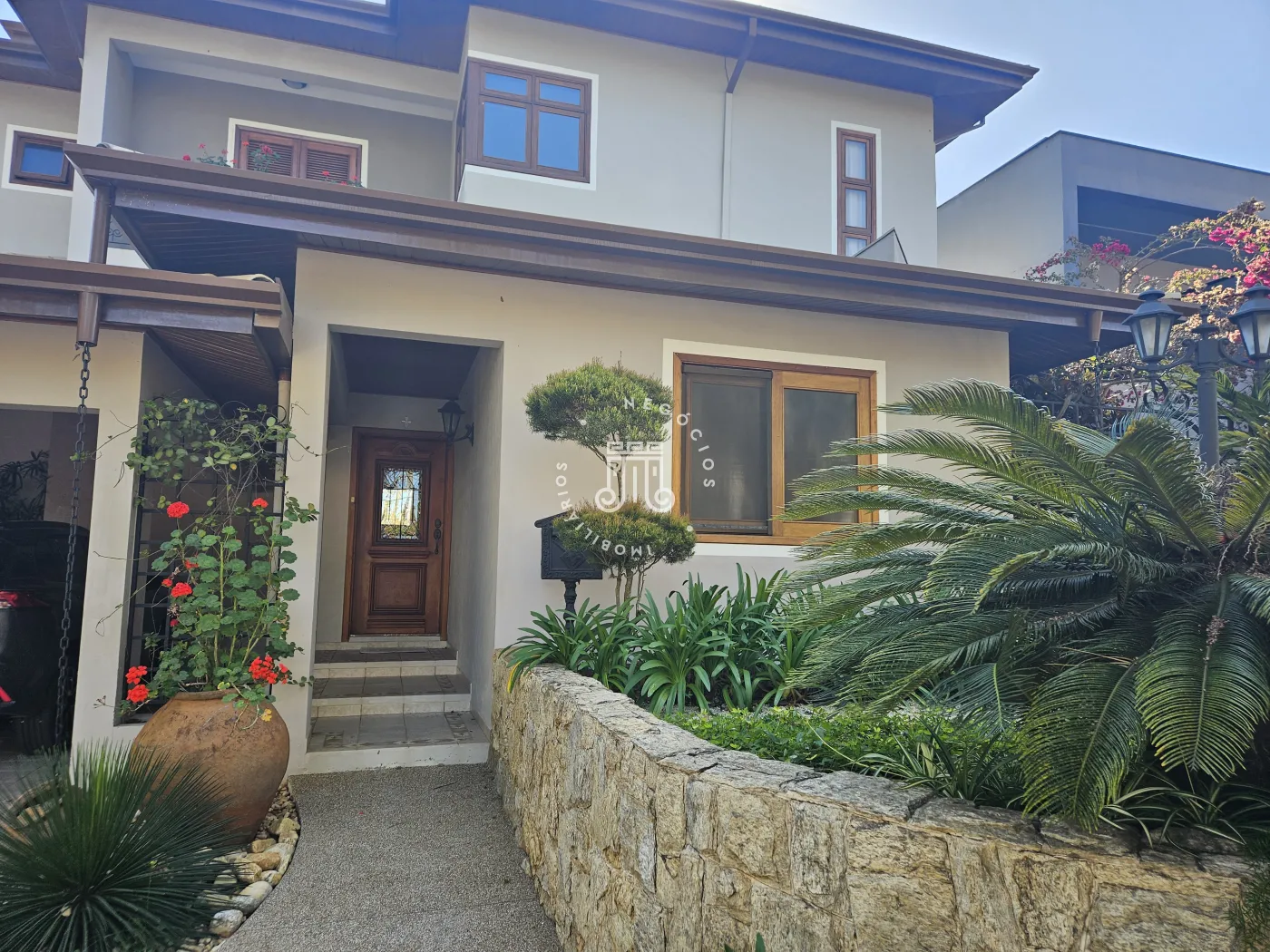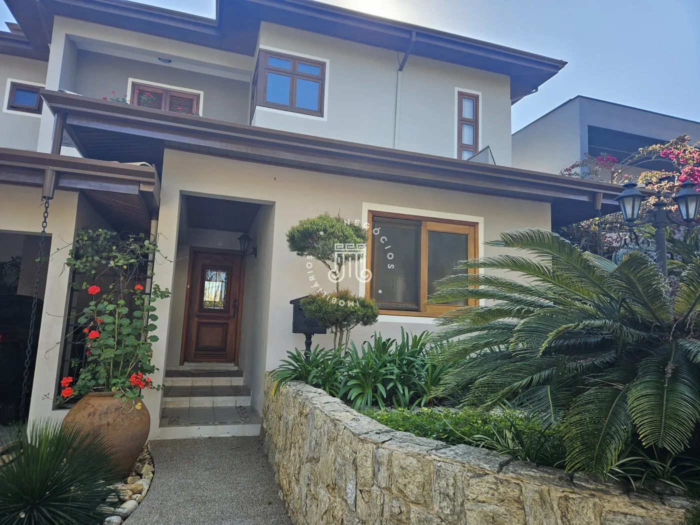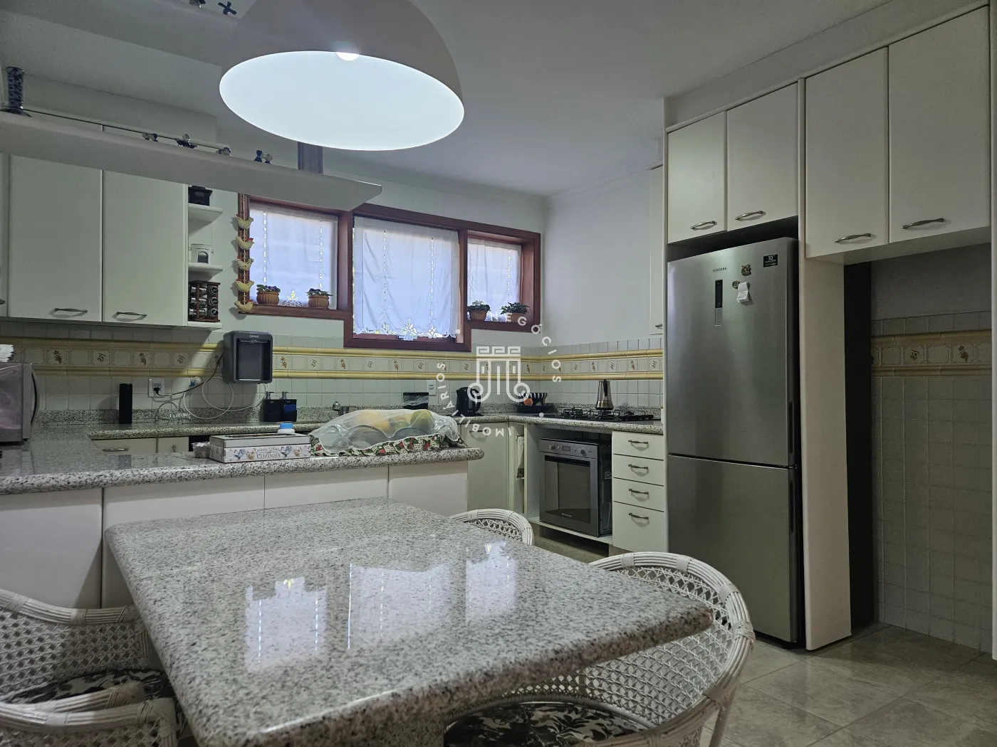 O imóvel possui área total construída de 424 m². Conta com três dormitórios, todos com suíte.