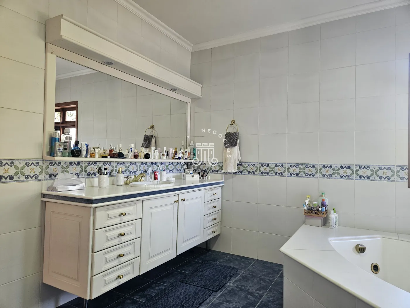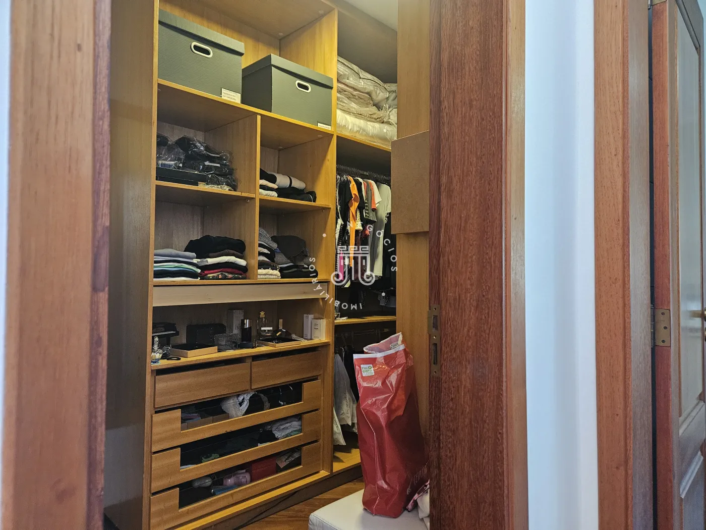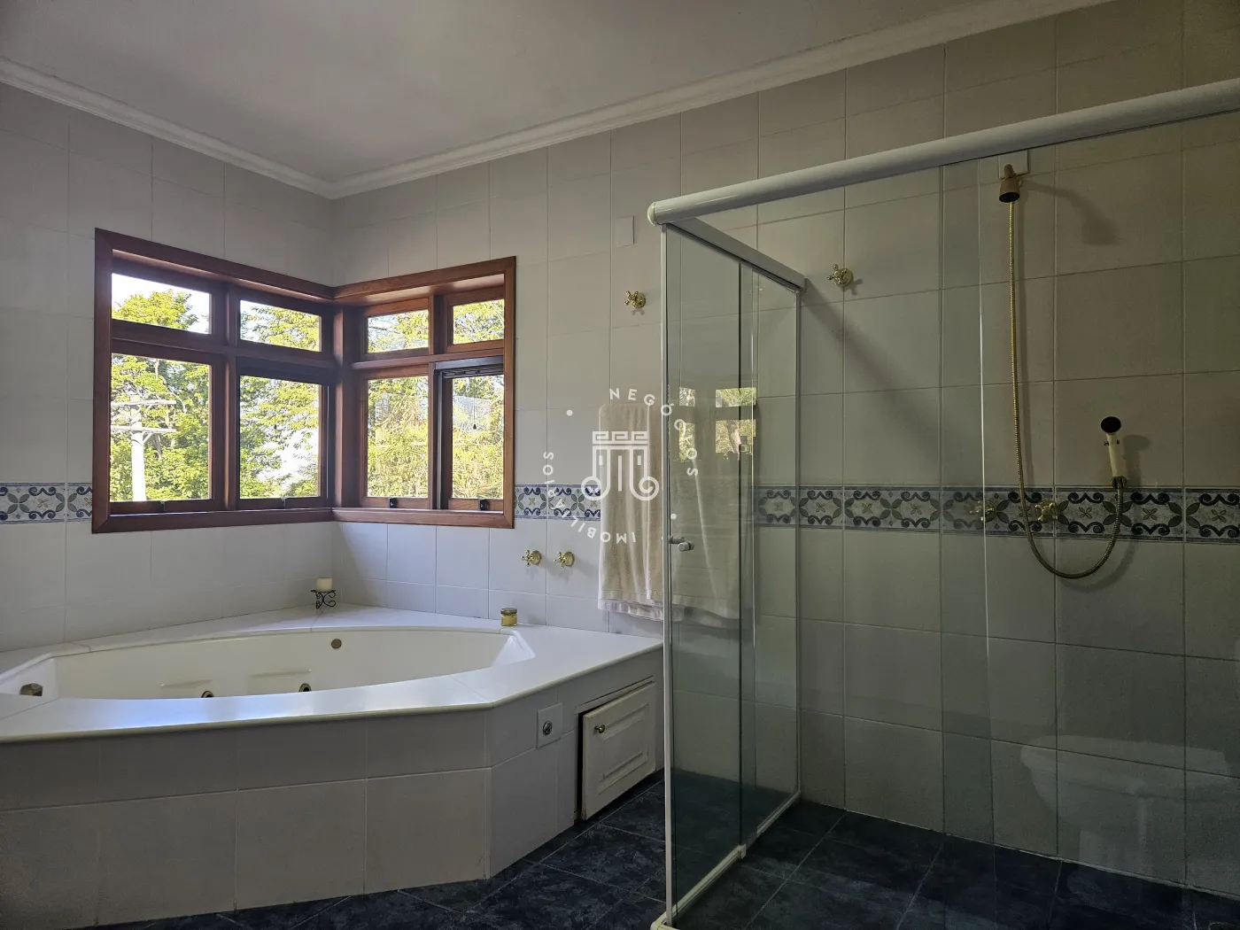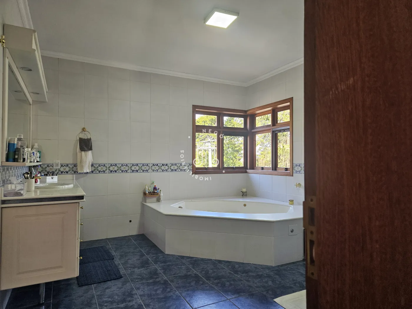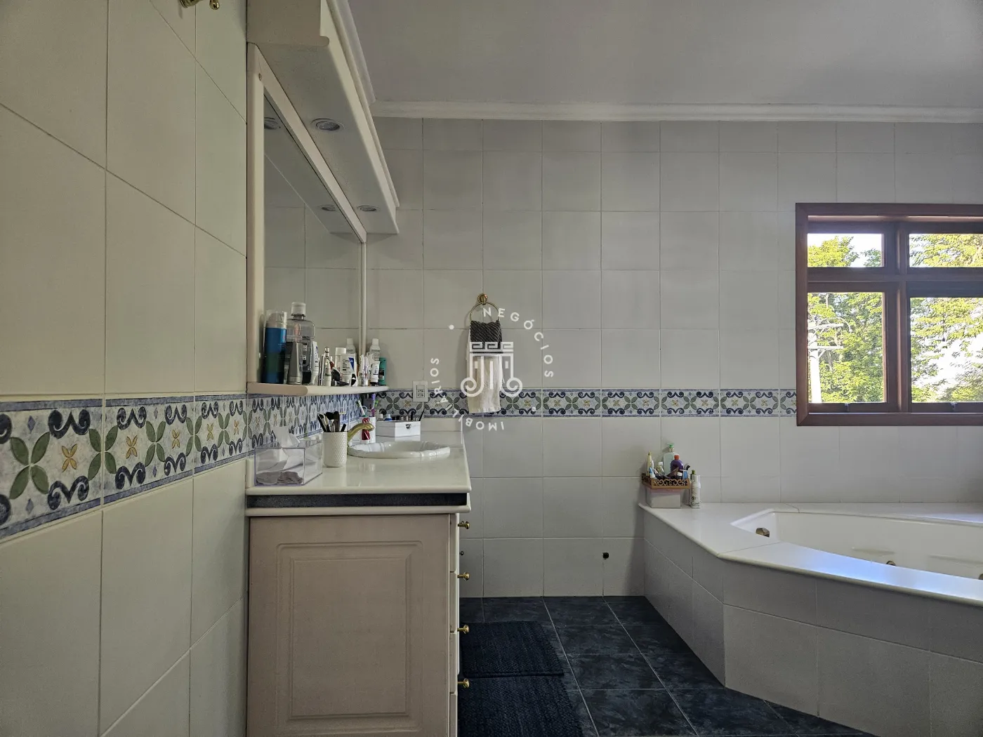 O imóvel possui área total construída de 424 m². Conta com três dormitórios, todos com suíte.
