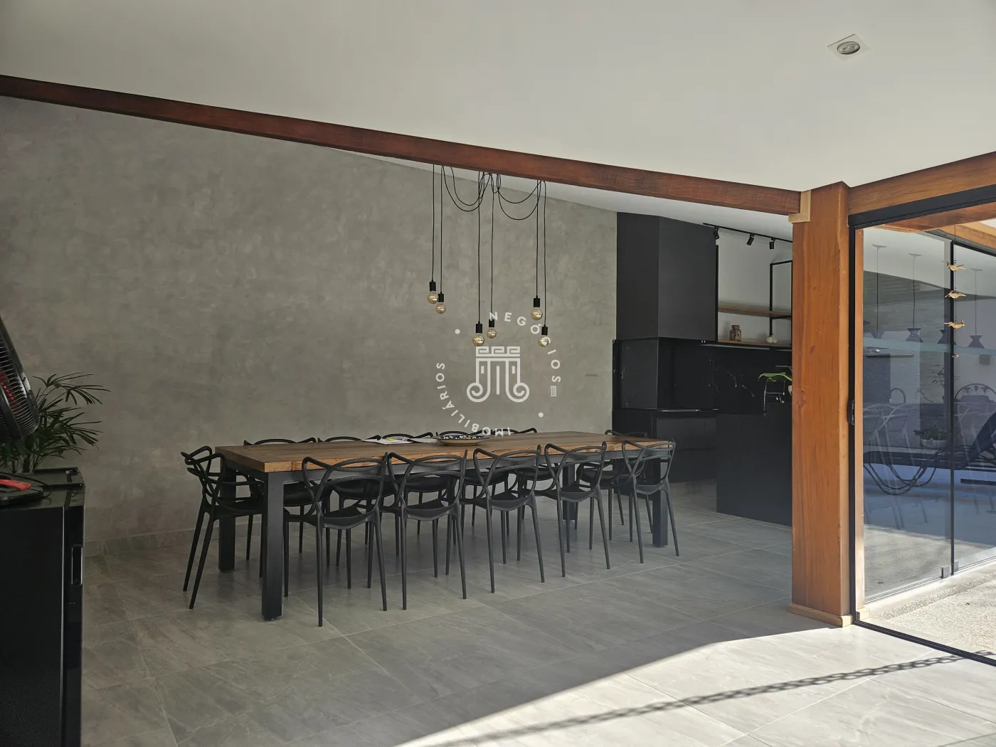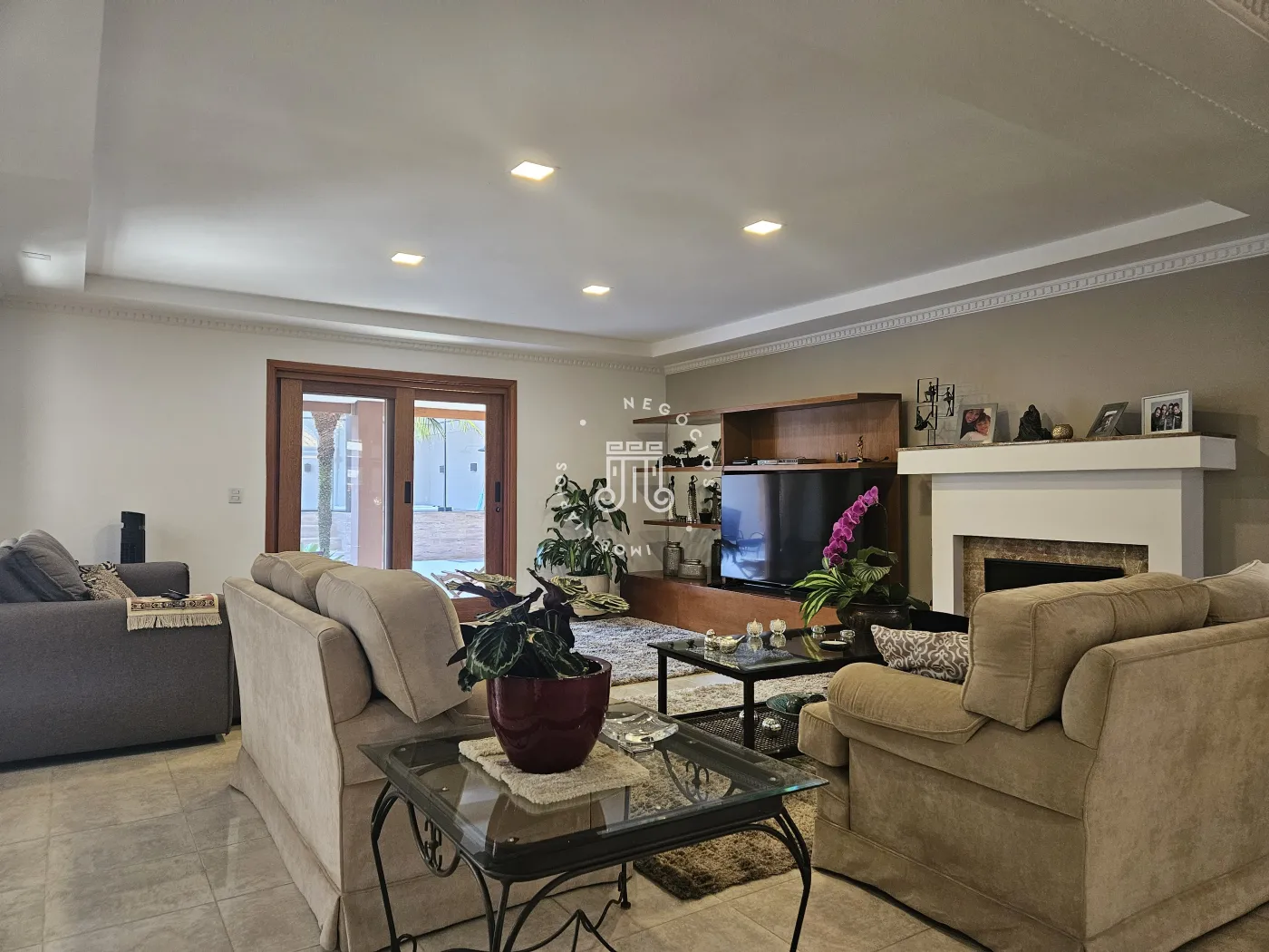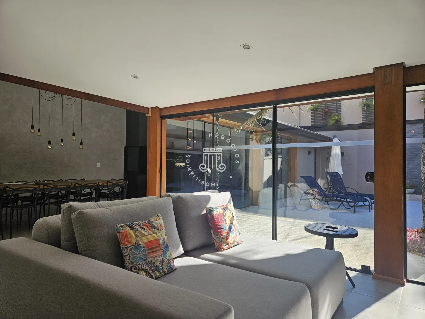 A sala é planejada para três ambientes, permitindo integração entre os espaços.