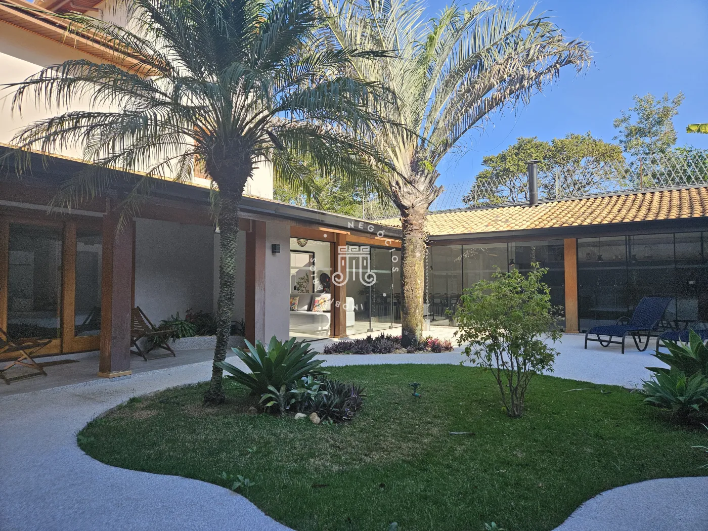 A construção apresenta estrutura adequada para uso familiar e para receber visitantes.