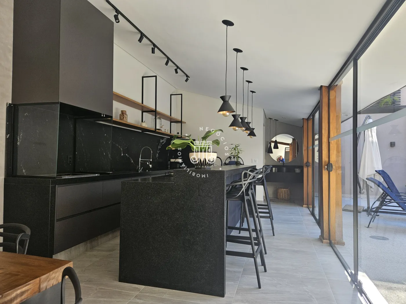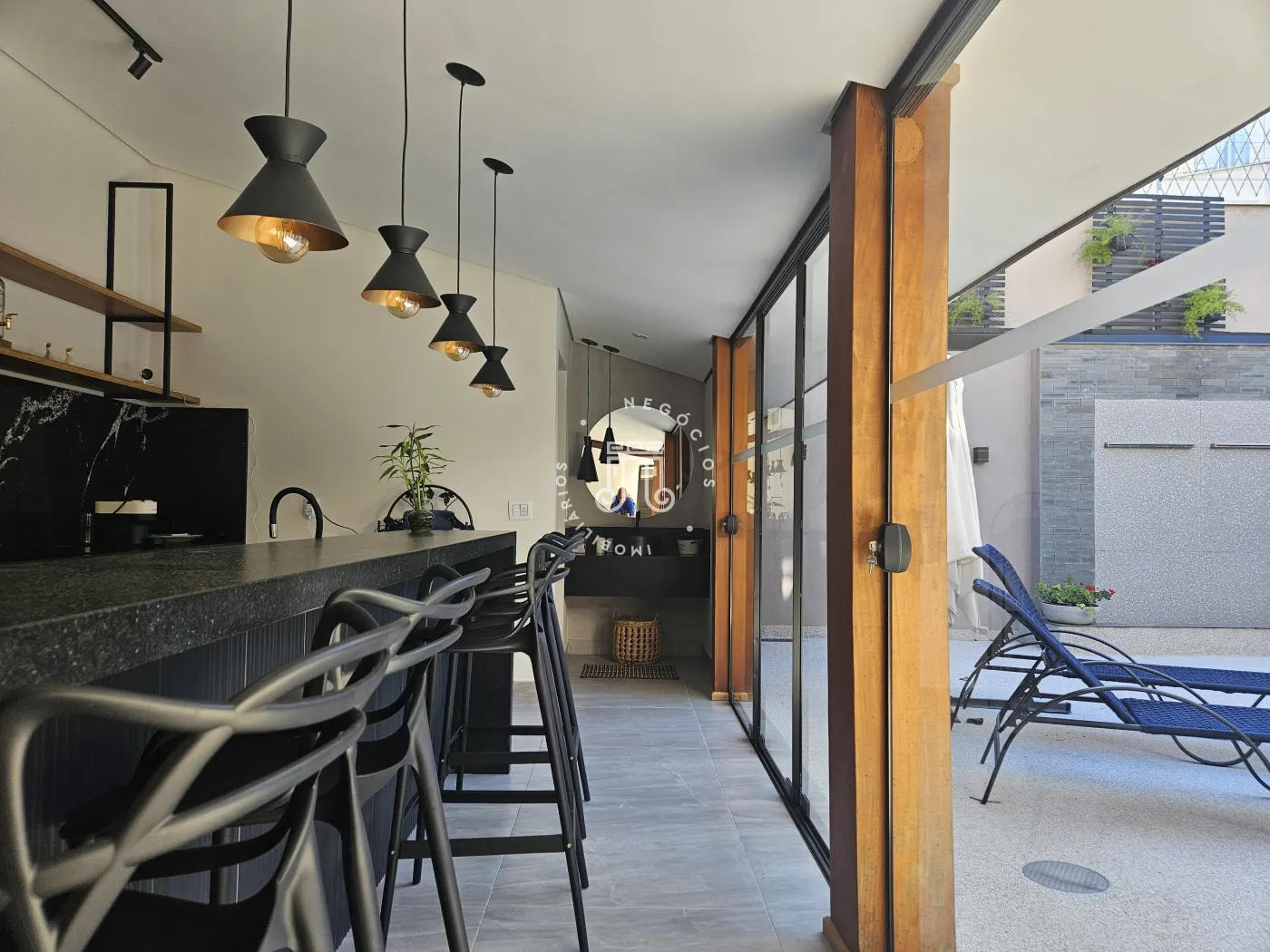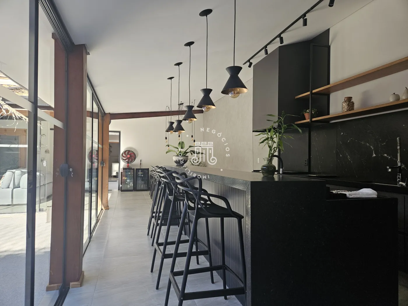 A casa também possui um escritório bastante funcional para atividades home office.