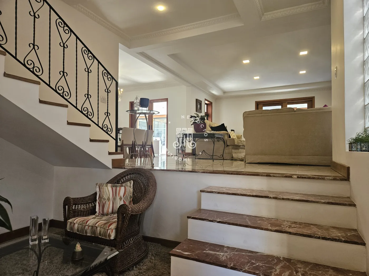 A casa é feita totalmente em alvenaria de tijolos de barro (pois mantém a temperatura da casa mais fresca) que tem todas as portas internas e externas em cedro rosa. Possui detalhes em mármore espanhol Rosso Coralito, tem pilares e assoalho em madeira nobre Garapeira.