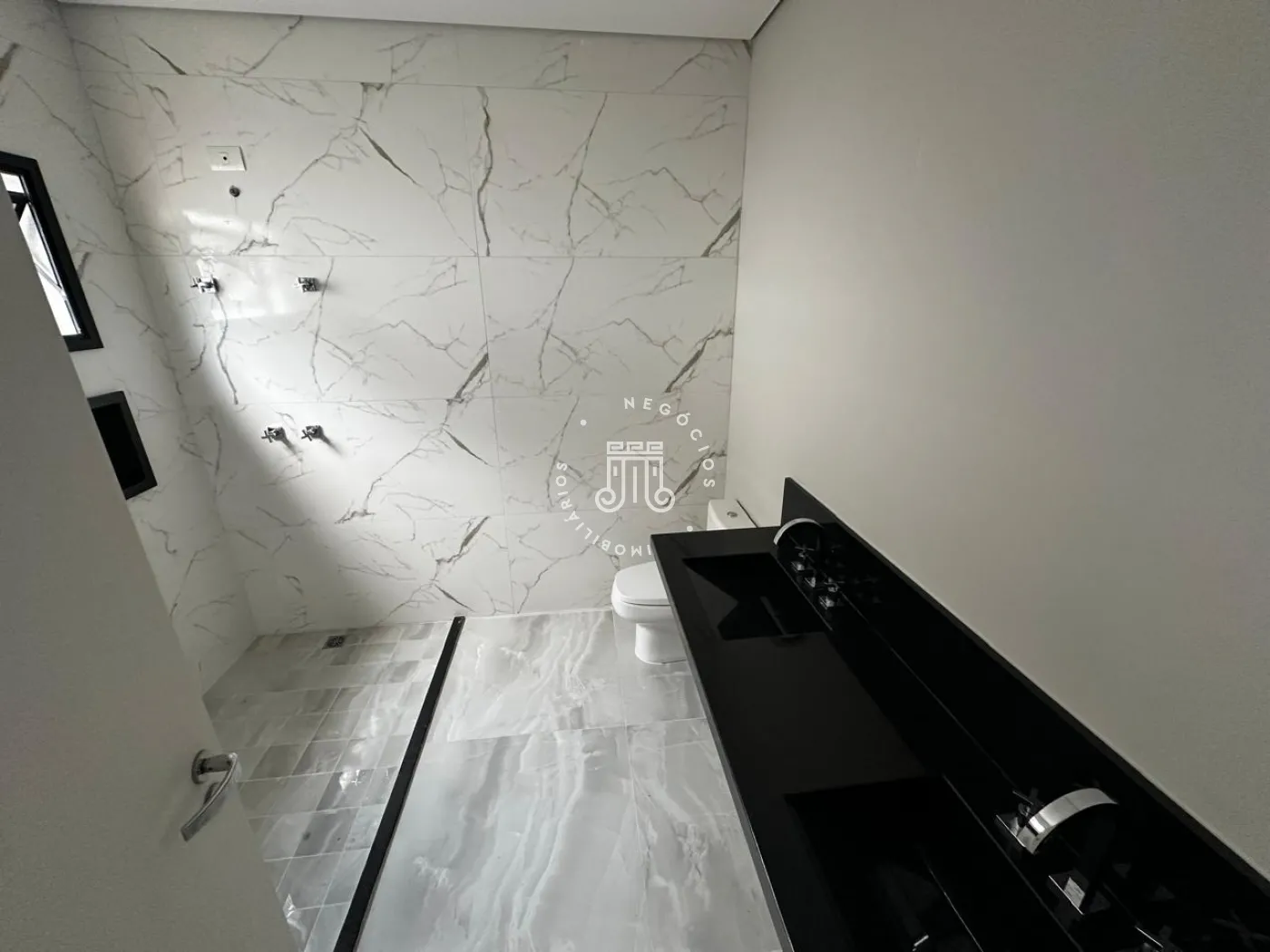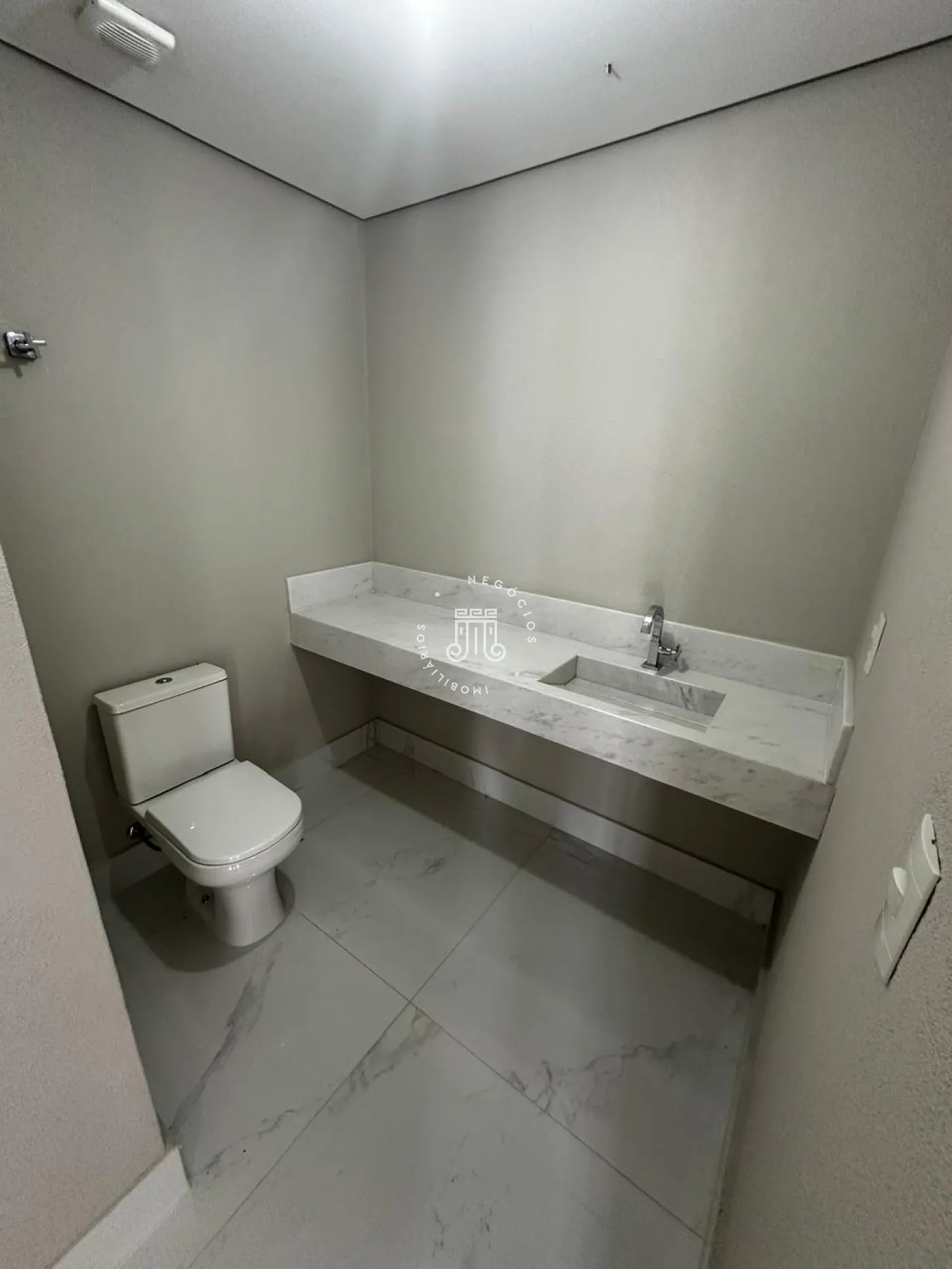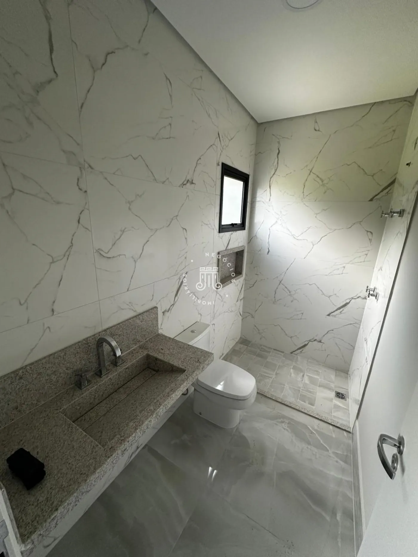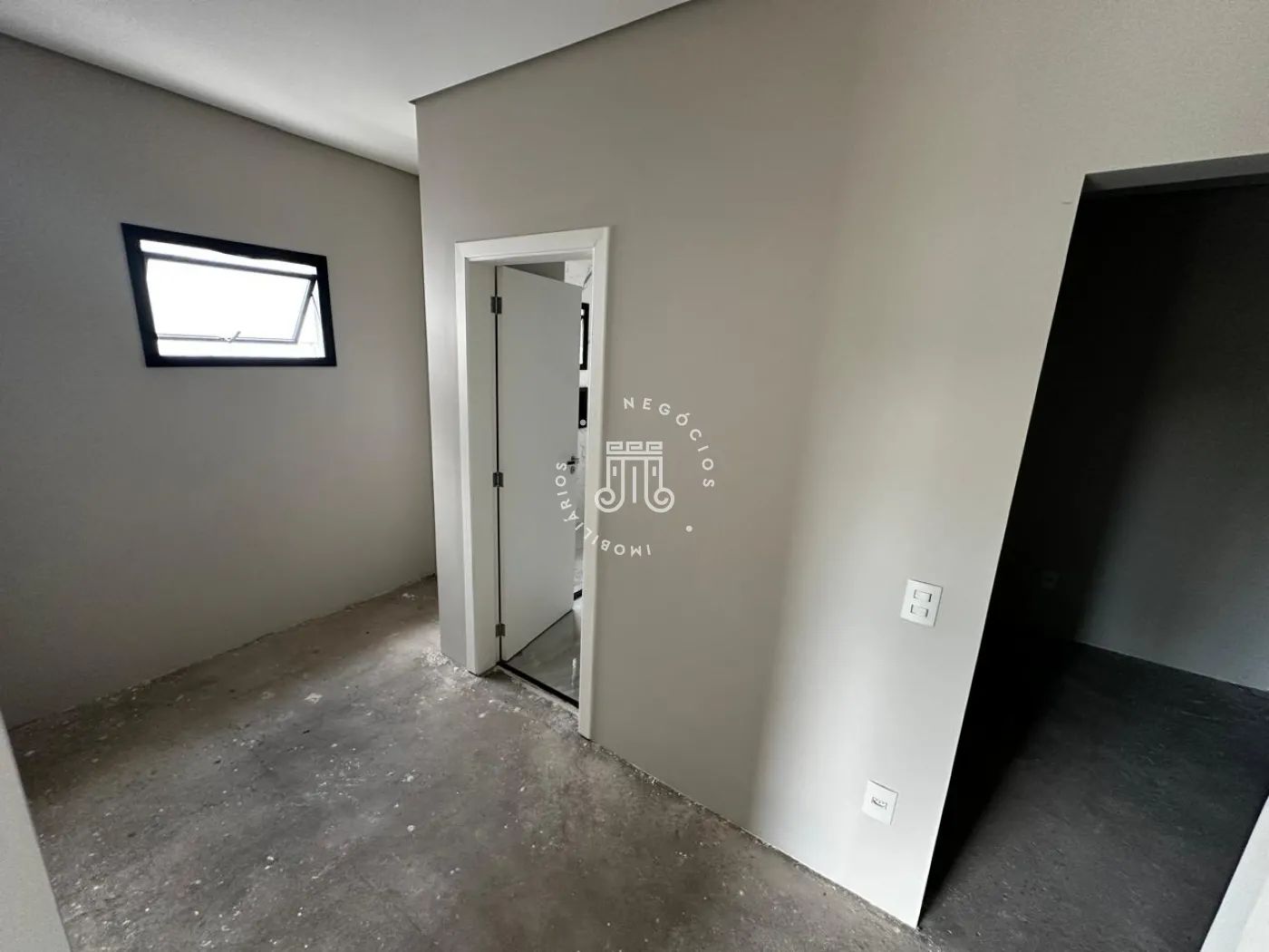 Seu projeto é distribuído da seguinte maneira: Lavabo; Mezanino (área disponível para escritório, por exemplo); Sala de Estar integrada, com pé direito alto + lareira; Sala de Jantar integrada; Cozinha, rica em armários planejados, totalmente integrada aos ambientes sociais da casa + despensa; 02 Demi suítes, ricas em armários planejados; 01 suíte principal ampla, com armários planejados; Sótão (ambiente bastante amplo que pode ser adaptado para diversas funcionalidades: dormitórios, escritório, oficina, estúdio e afins);