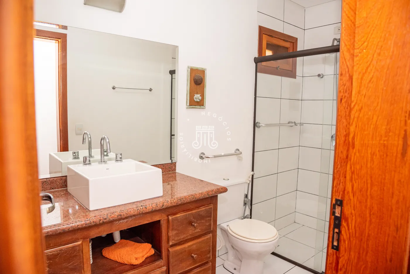 O pavimento superior tem 03 suítes, sendo uma máster com banheira e closet, sala de TV, sótão amplo.