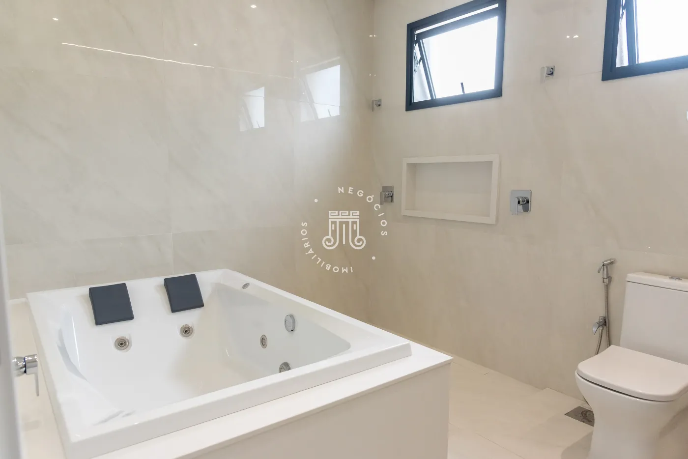 Sobrado com terreno de 510m² e área construída de 350m², oferecendo amplos espaços e acabamentos de qualidade. A casa possui 4 suítes, sendo a master com closet e banheira de hidromassagem dupla.