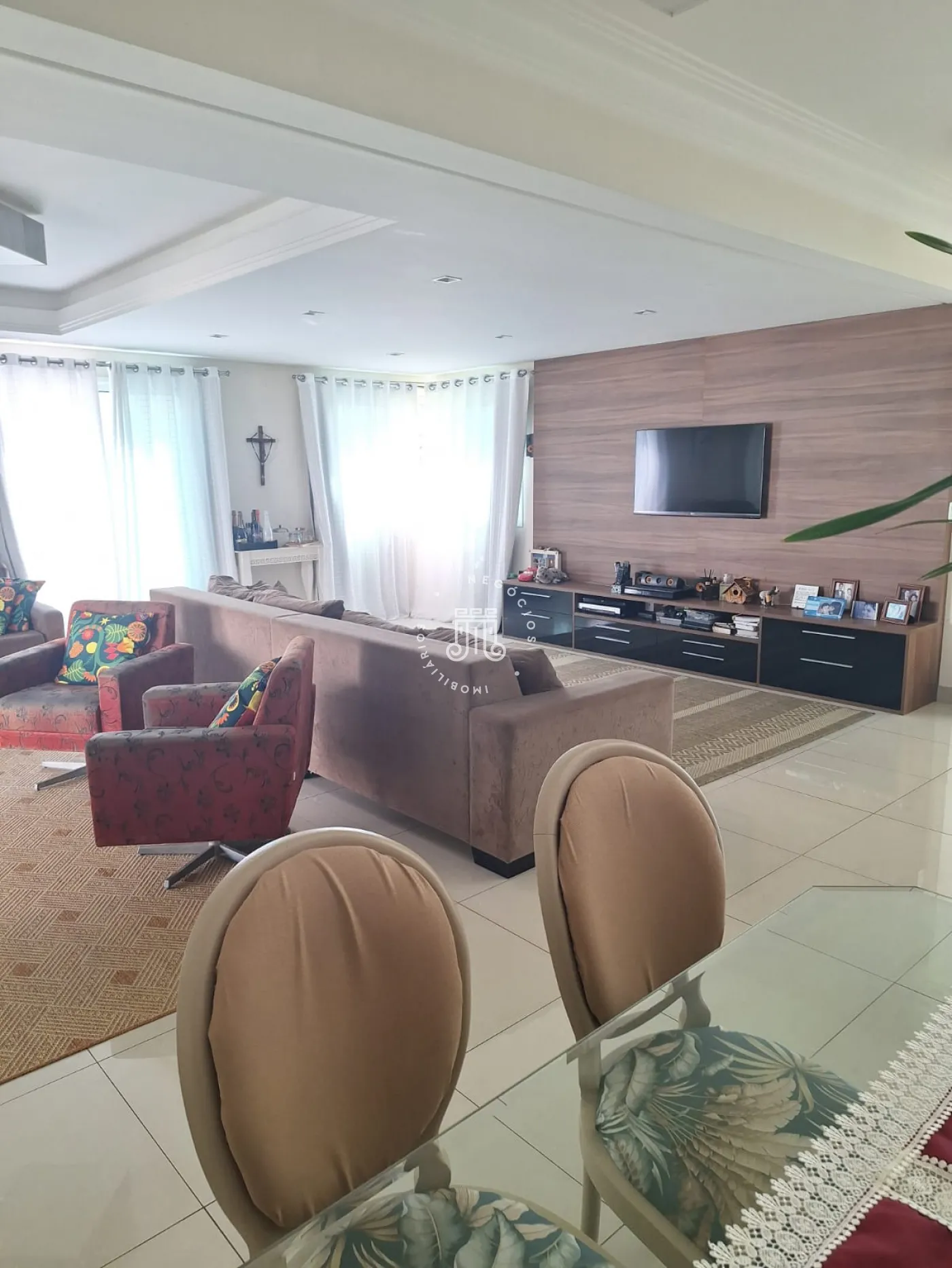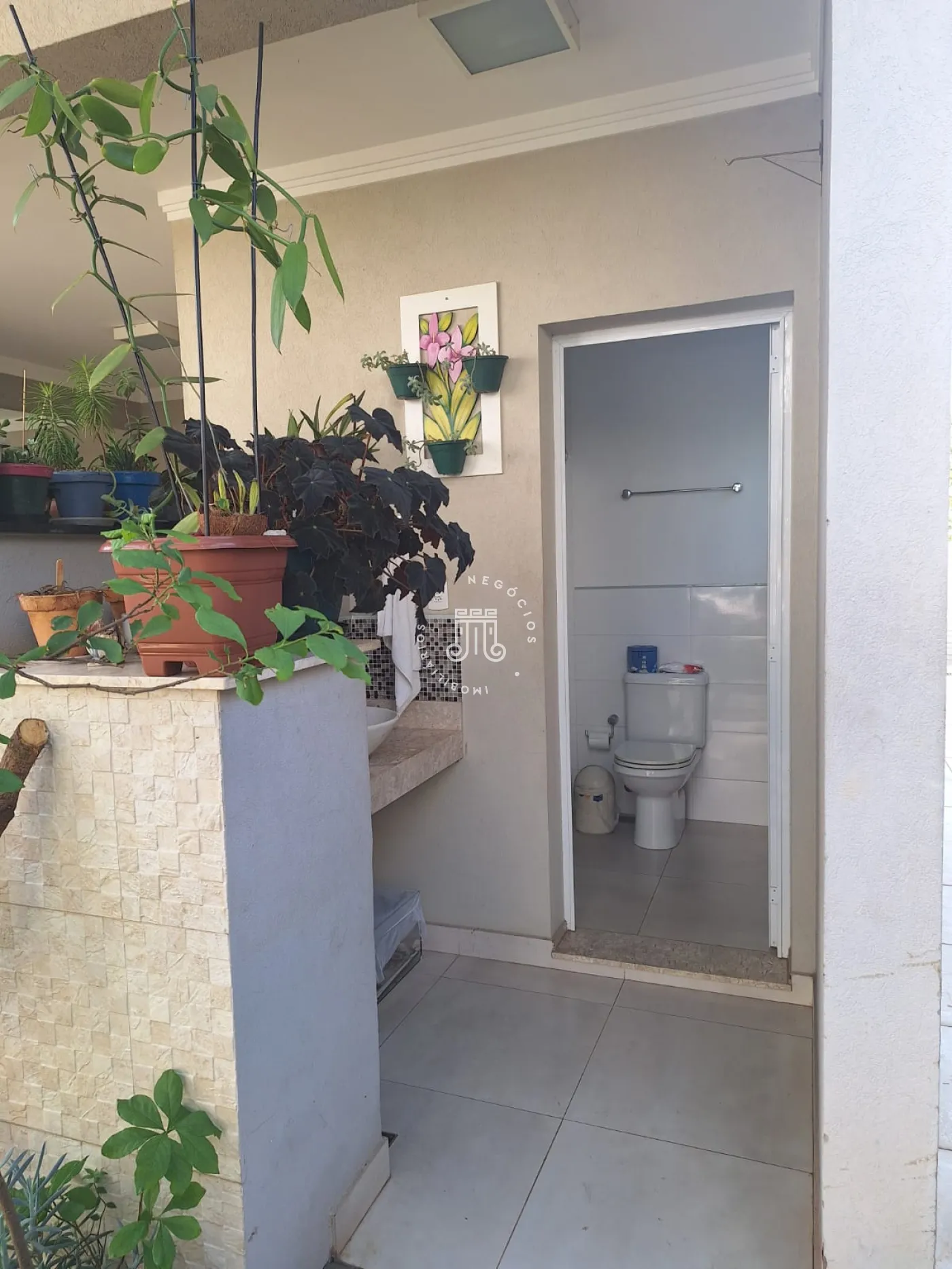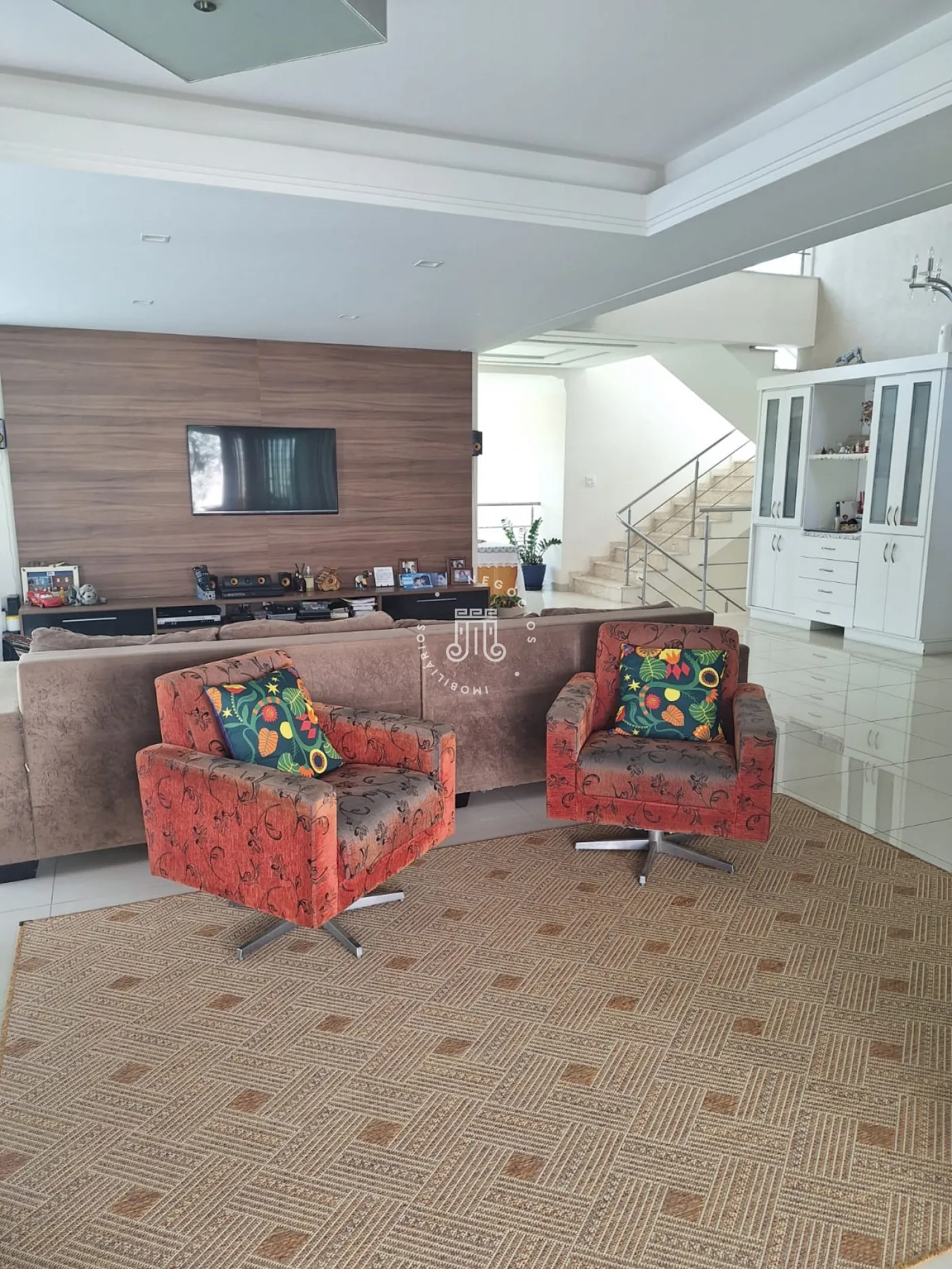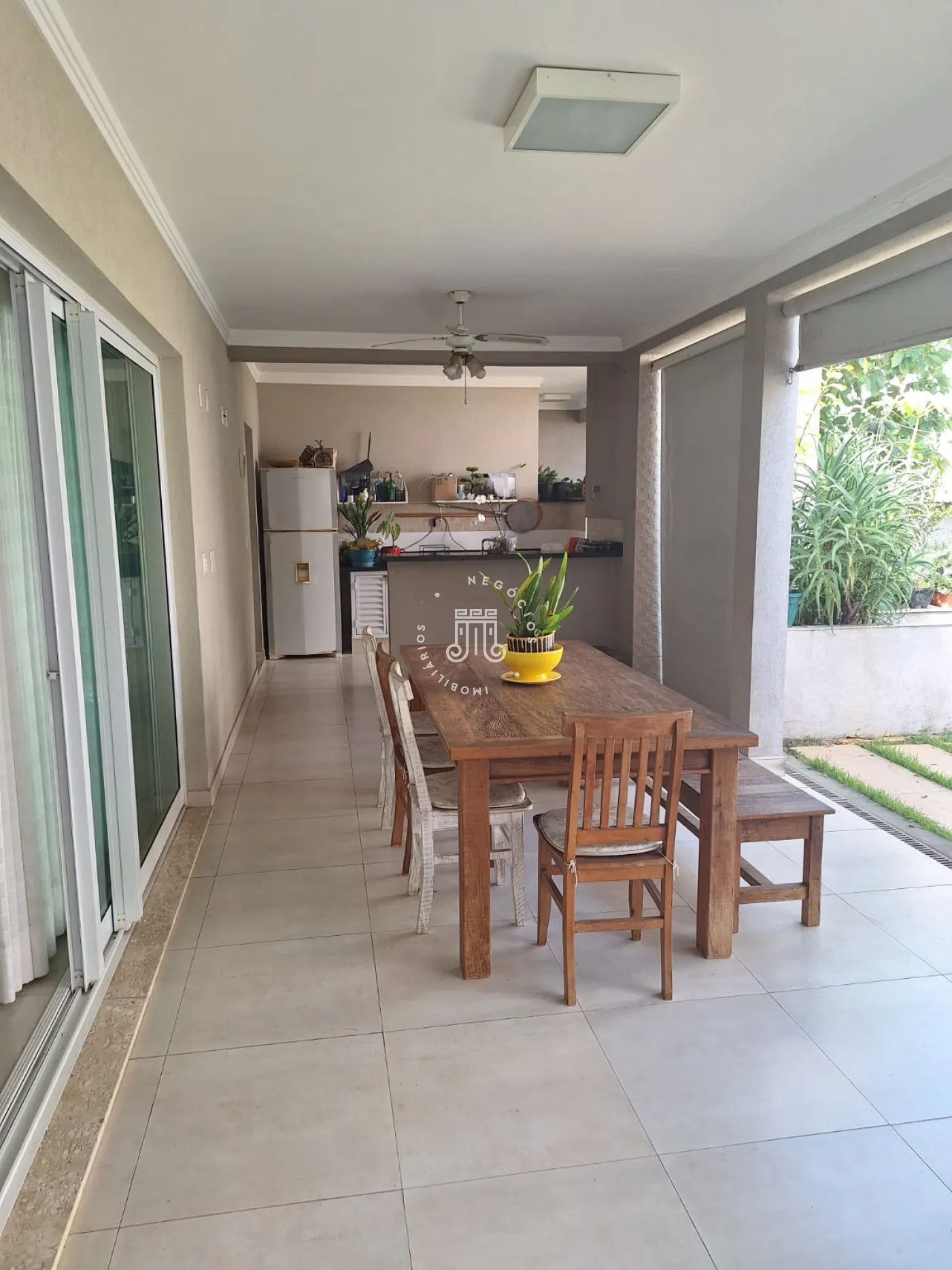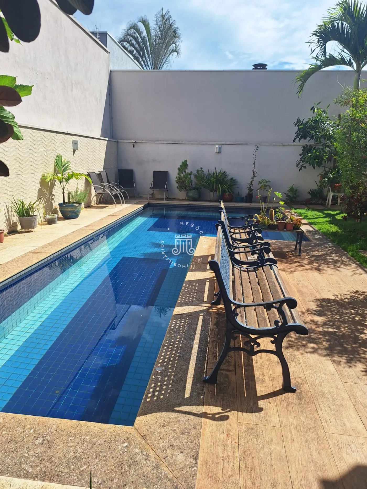 Pavimento superior, com ampla sala de jantar, sala de estar, cozinha com planejados e despensa, lavanderia e acesso a área Gourmet, com churrasqueira, piscina, amplo jardim, canil, banheiro e depósito.