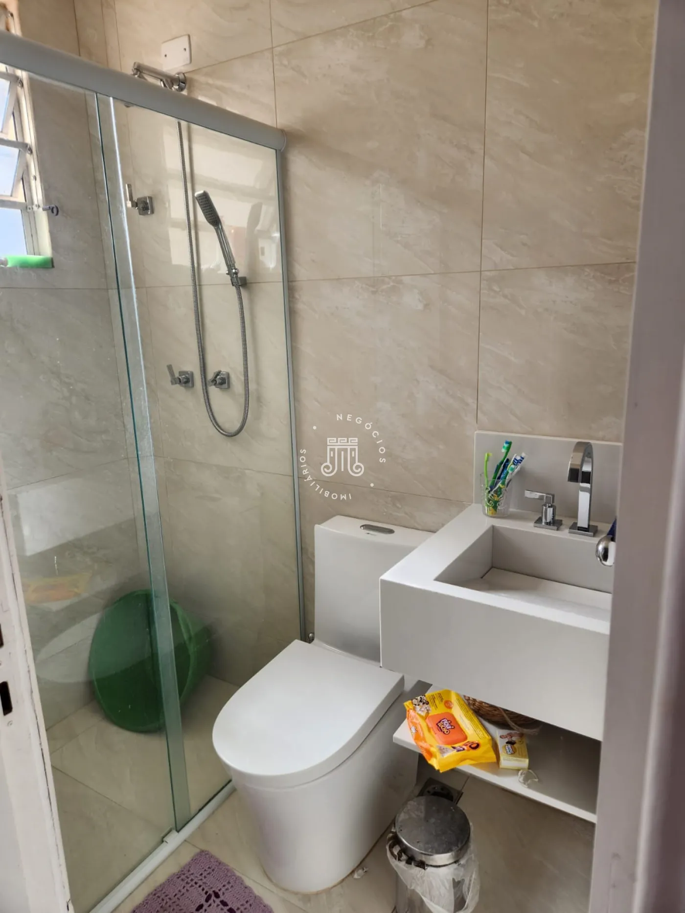 Está disponível para venda um sobrado localizado no condomínio Village Jardim Versailles, no bairro Vila Mafalda, em Jundiaí/SP. O imóvel possui 92 metros quadrados de área construída em um terreno de 220 metros quadrados. A estrutura inclui três dormitórios com móveis planejados, sendo um deles suíte, equipada com gabinete, box em vidro e espelho. Há também duas salas integradas destinadas ao living e à sala de jantar, além de lavabo e banheiro social.