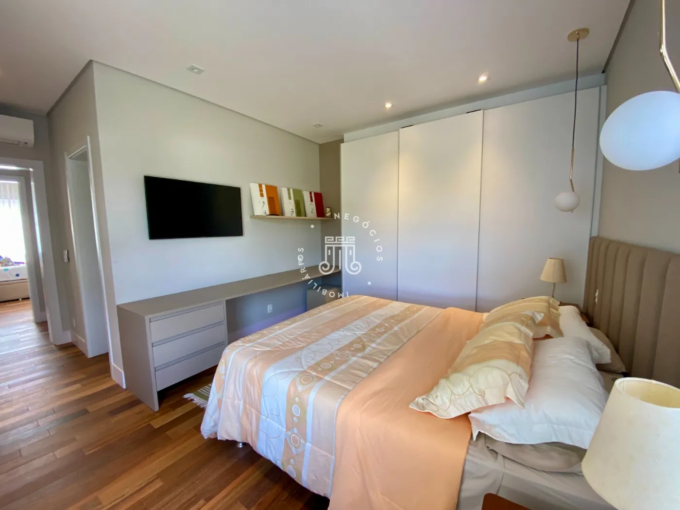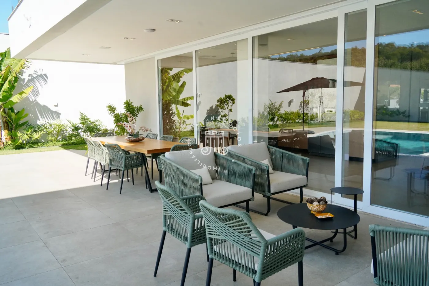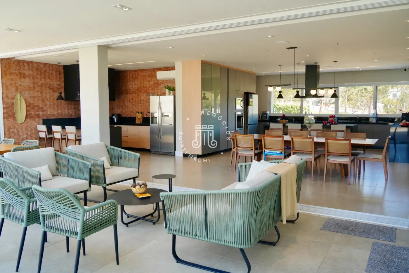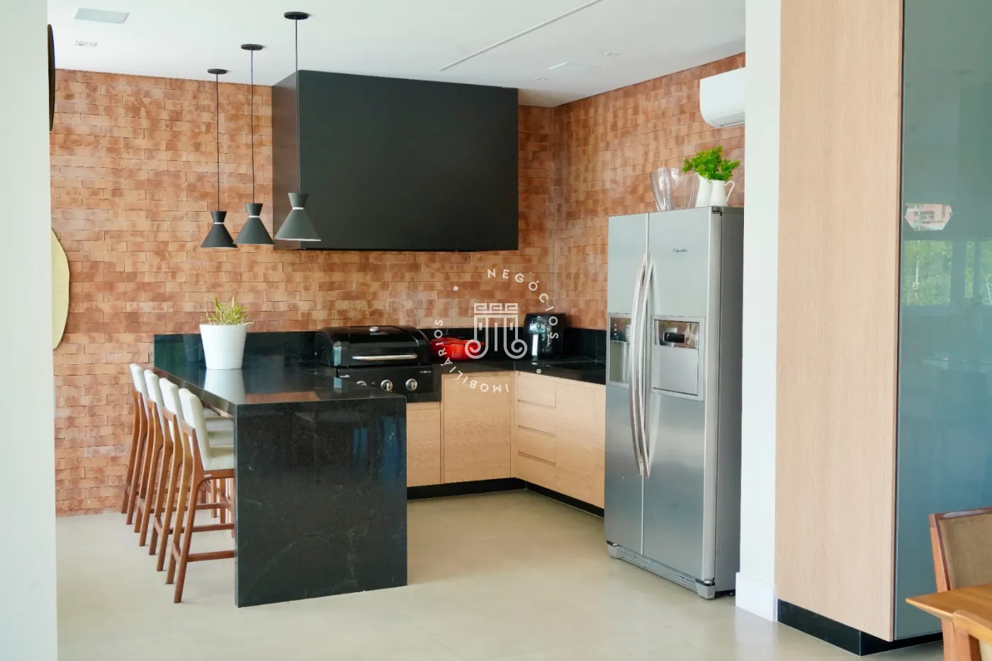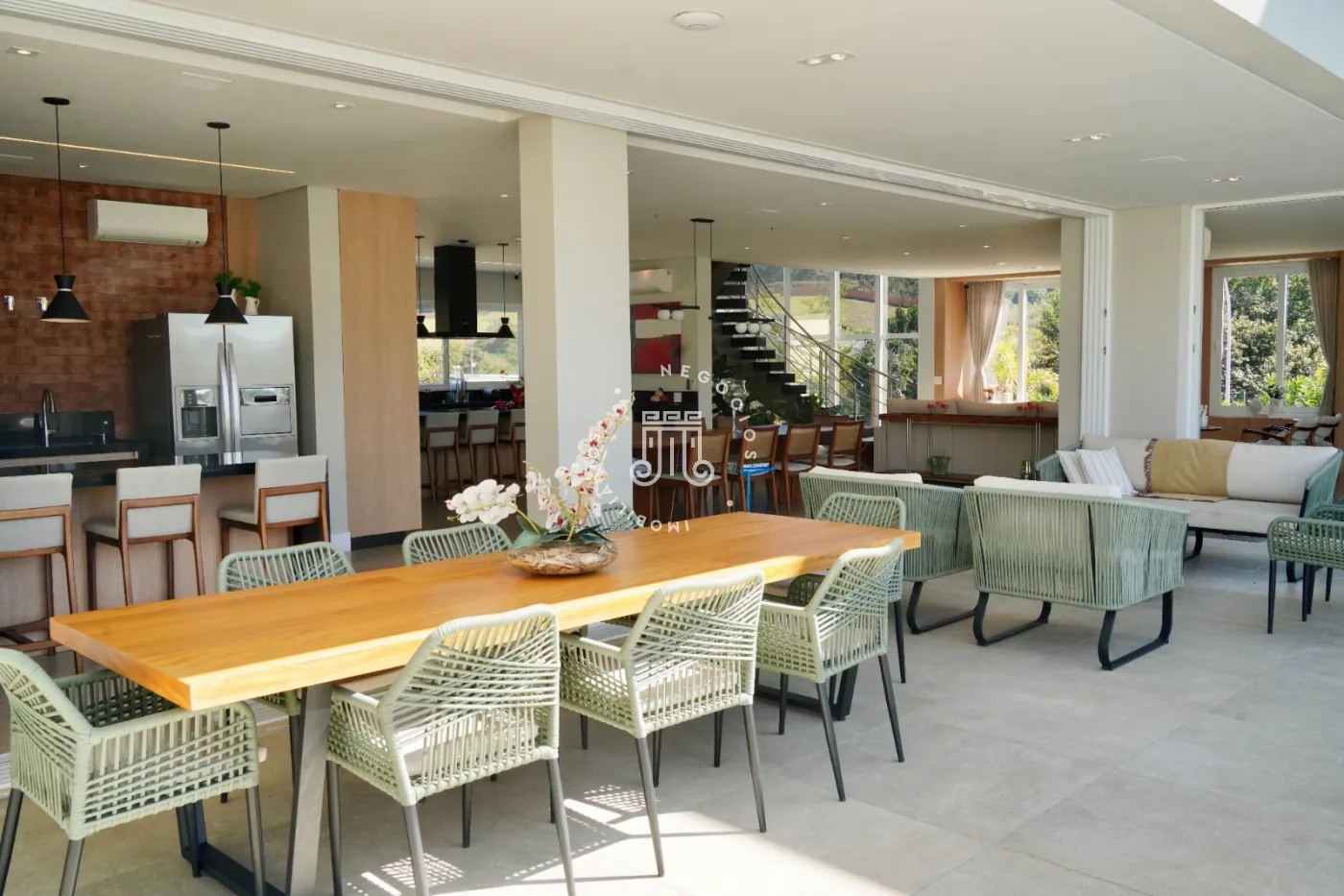 Na área externa, a propriedade conta com piscina aquecida, prainha e hidromassagem, além de jardim com pomar e árvores frutíferas. O sistema de irrigação é automatizado.
