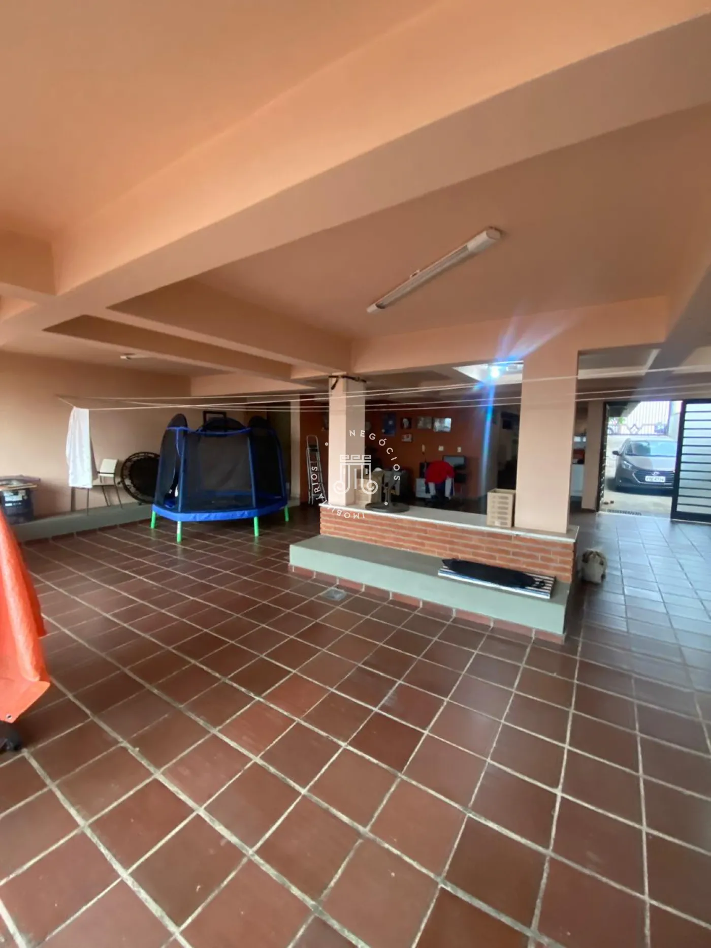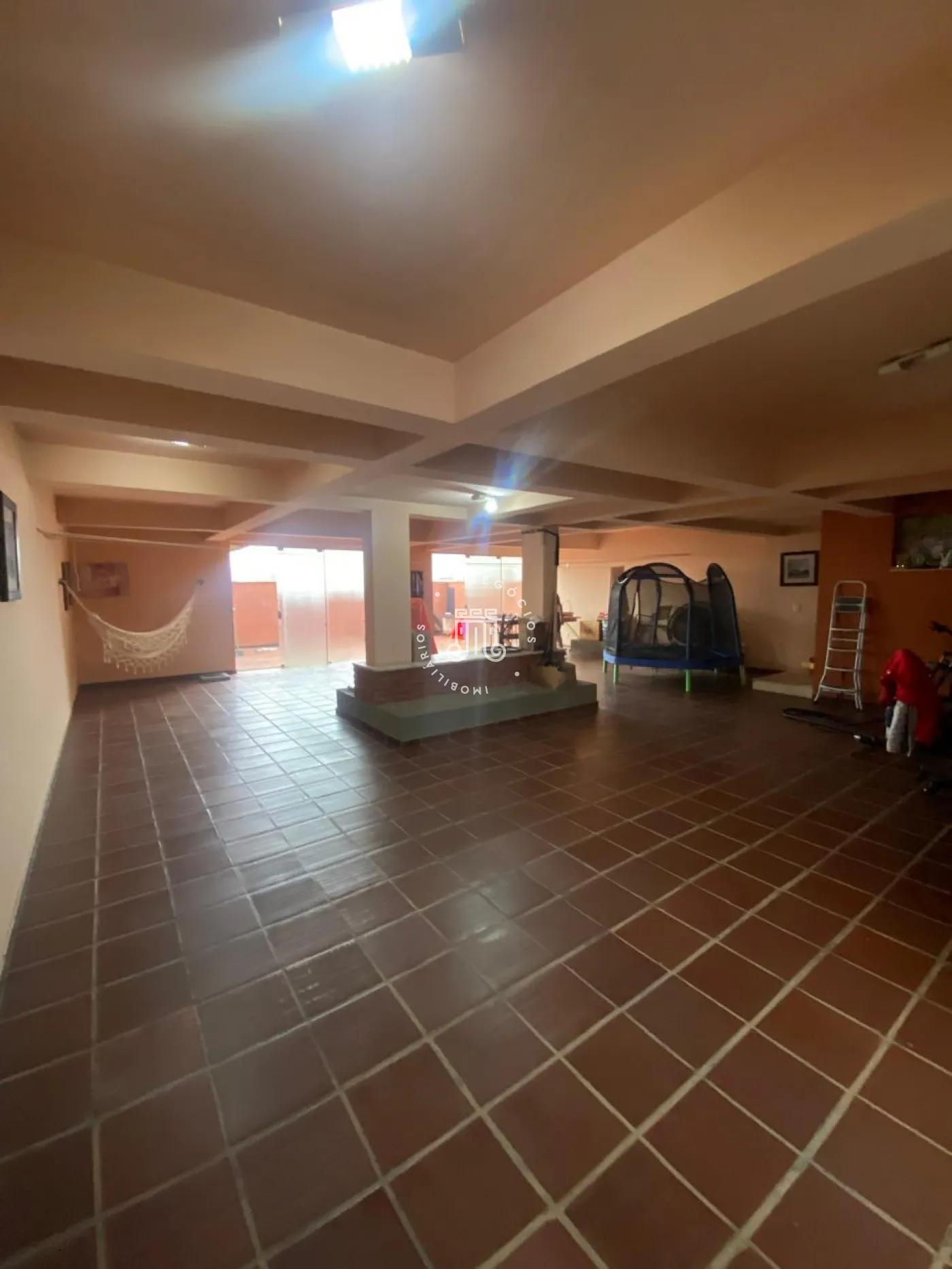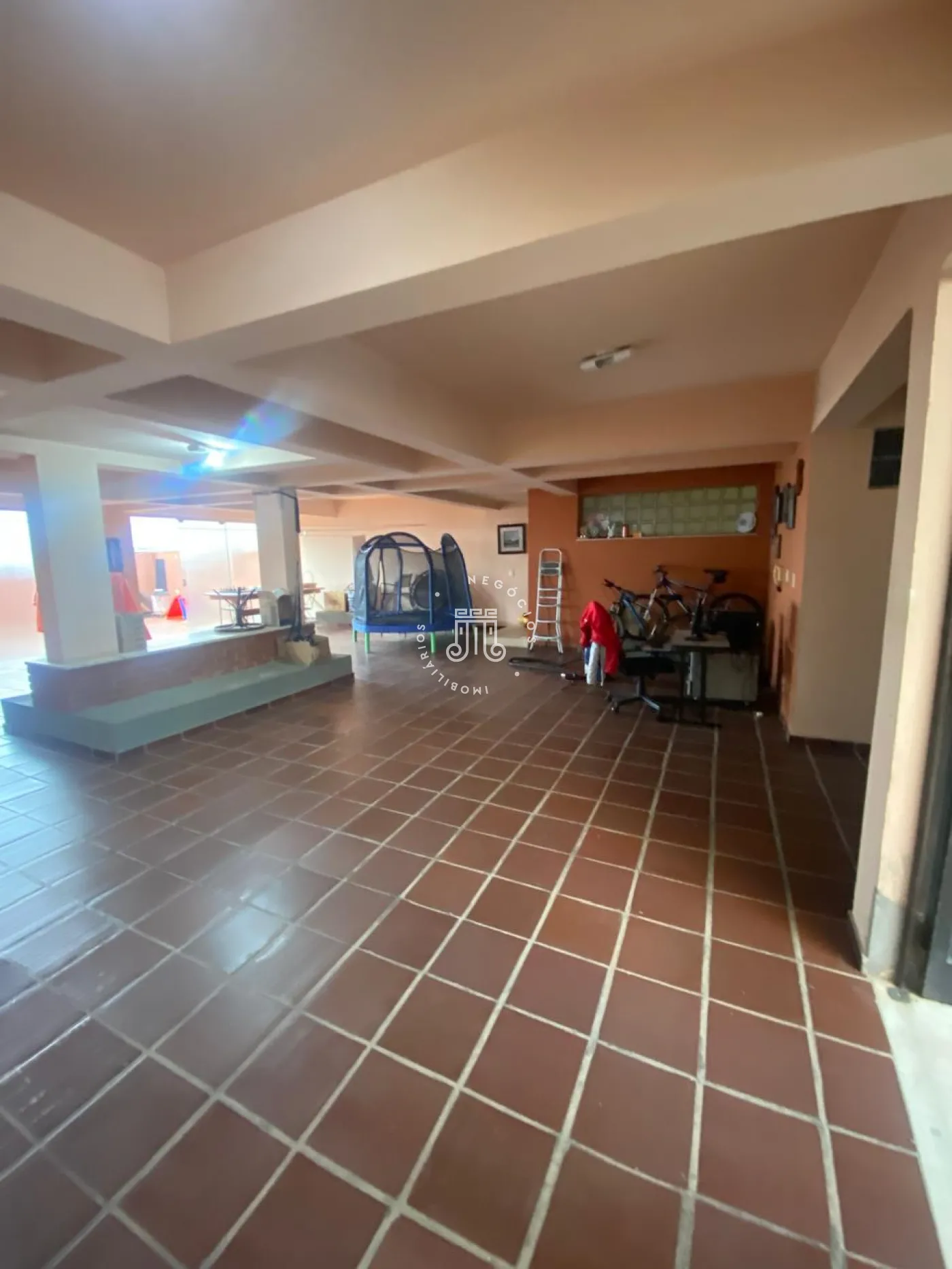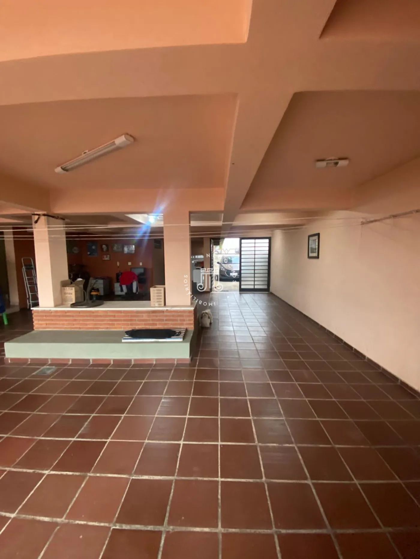 Parte inferior: Salão plano de 140 m², ideal para festas, escritório, laboratório ou consultórios. Se for residencial, há garagem coberta para 4 veículos e descoberta para 3, com acesso ao salão. Conta também com lavanderia, 1 banheiro, churrasqueira, quintal e portão eletrônico com grade de alumínio.