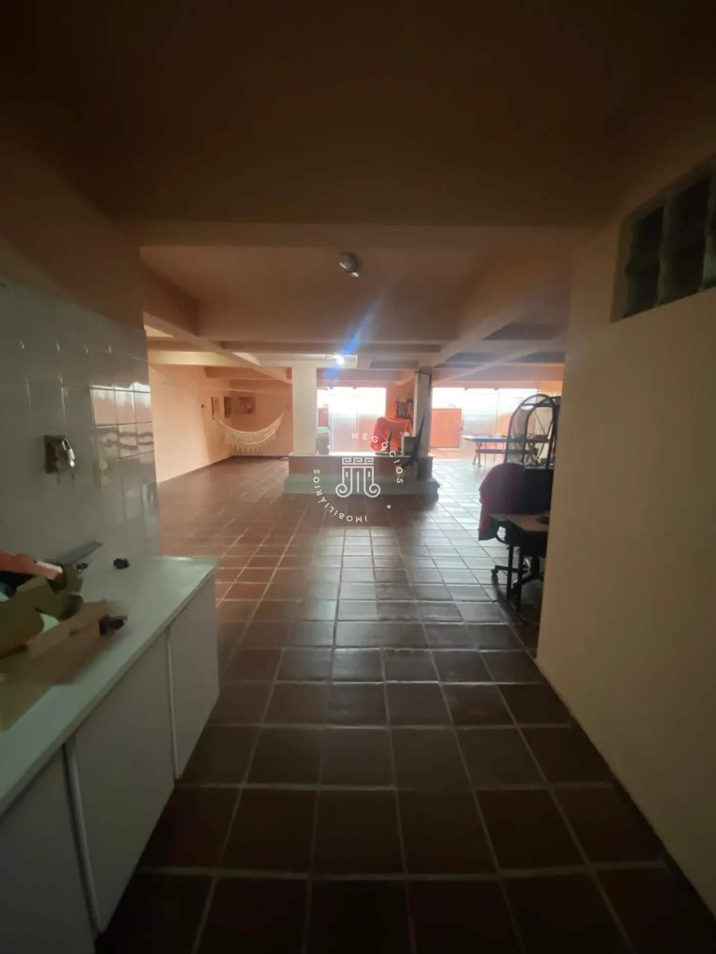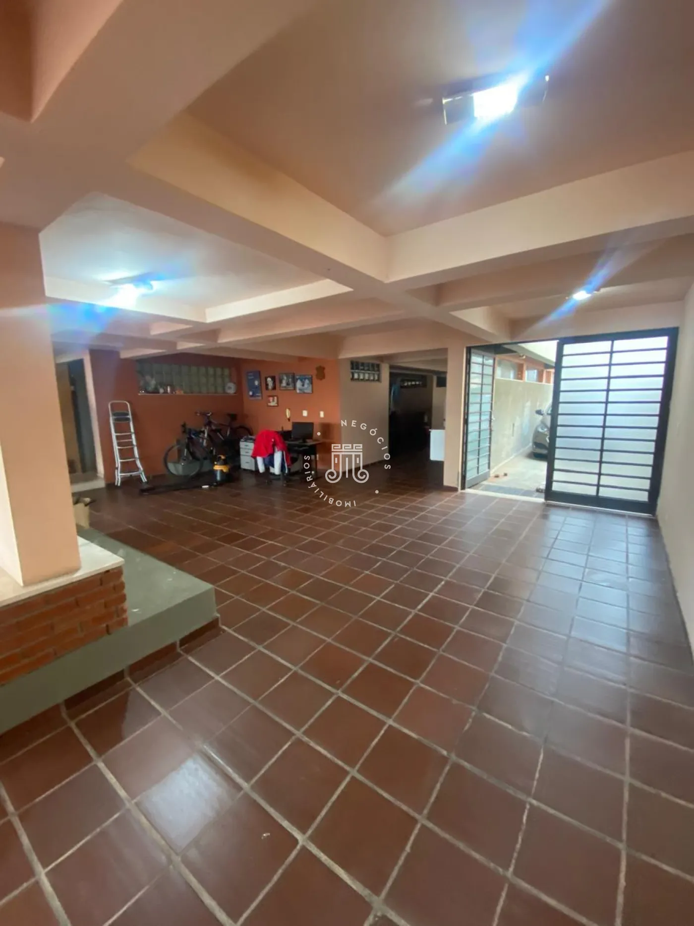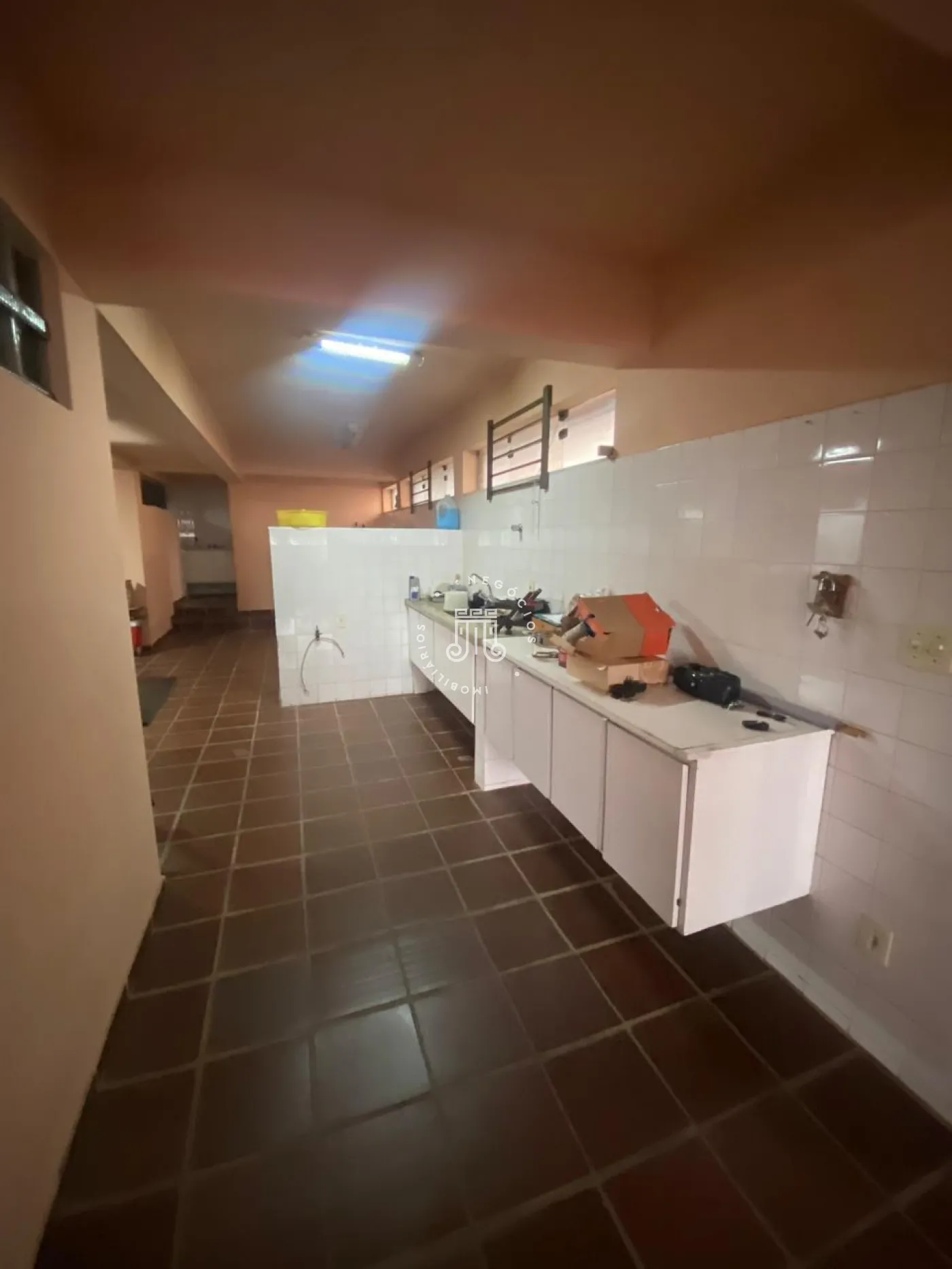 Parte inferior: Salão plano de 140 m², ideal para festas, escritório, laboratório ou consultórios. Se for residencial, há garagem coberta para 4 veículos e descoberta para 3, com acesso ao salão. Conta também com lavanderia, 1 banheiro, churrasqueira, quintal e portão eletrônico com grade de alumínio.