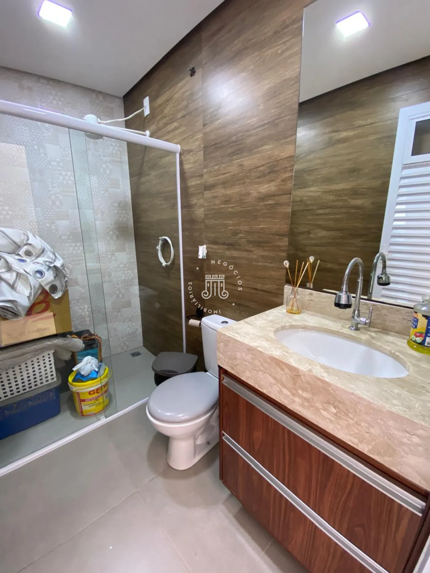 - Banheiro social: Armário planejado, Nicho, Box e Espelho.