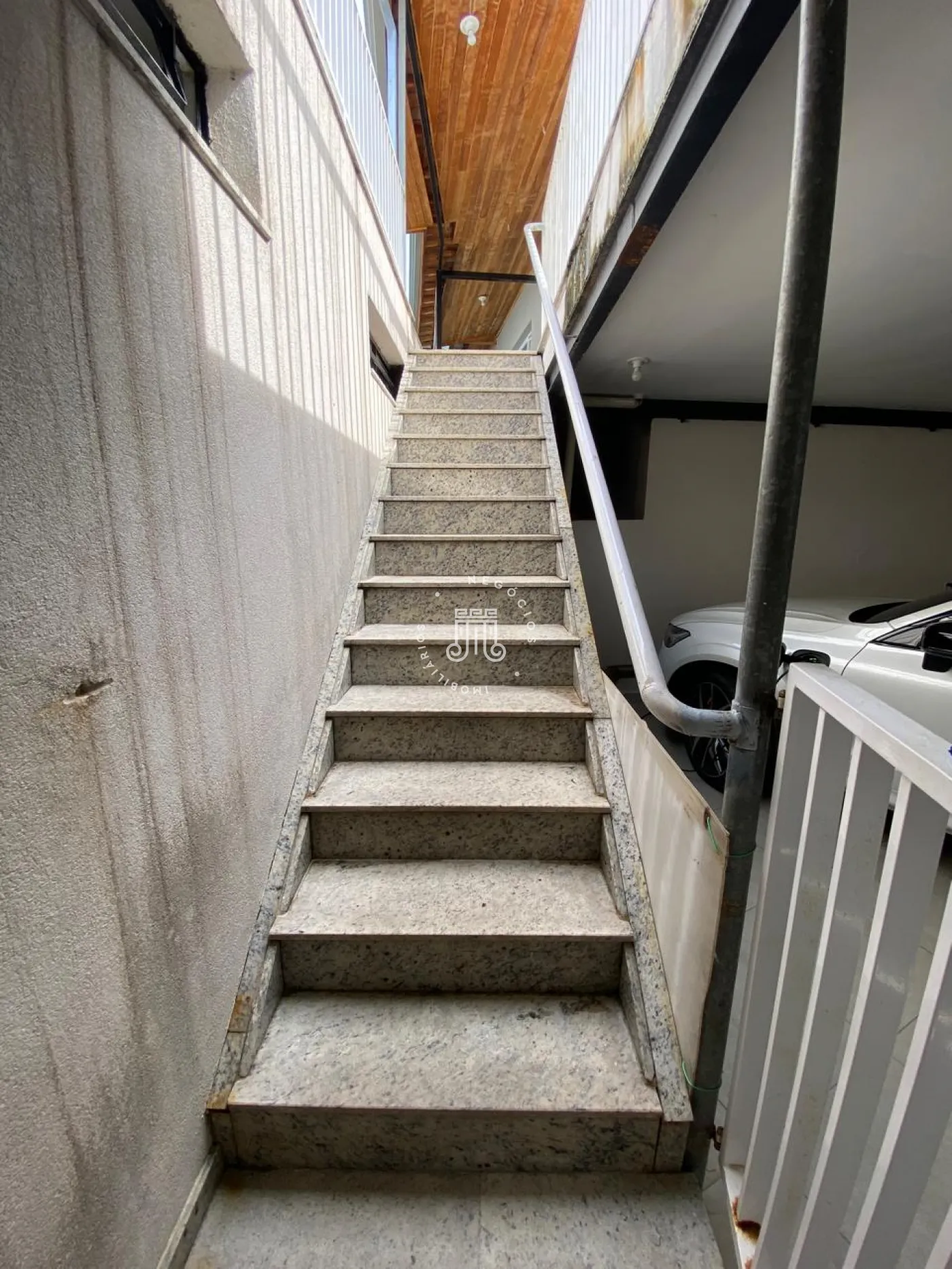 - Escada: Papel de parede, Corrimão de inox e Armário planejado;