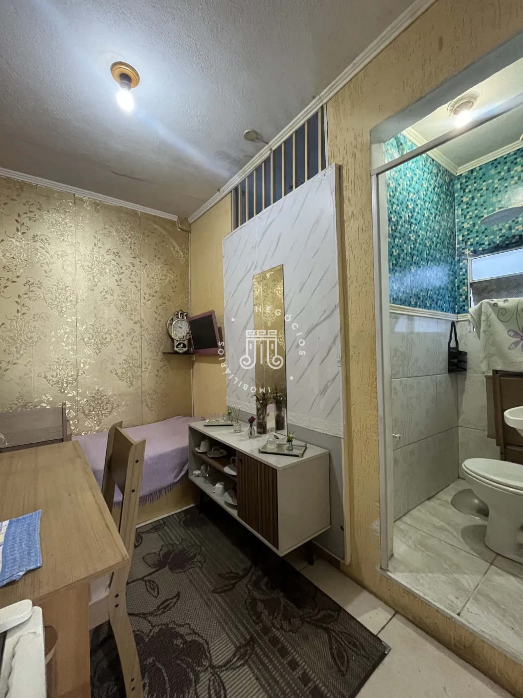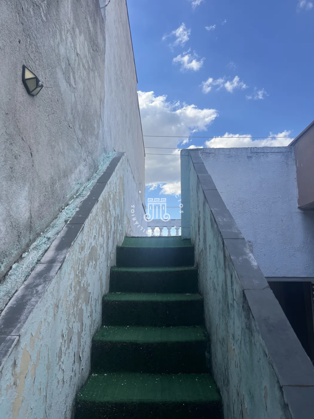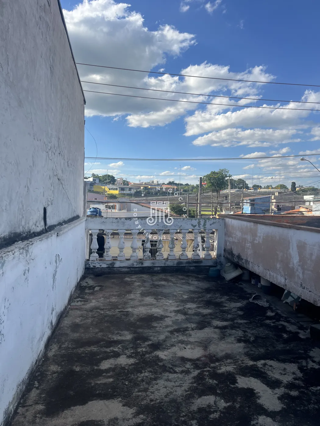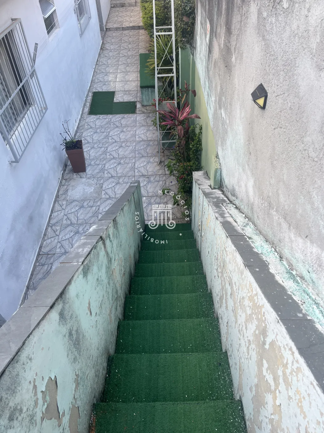 A propriedade possui terraço e estúdio na parte frontal, com corredor em ambas as laterais, possibilitando circulação independente.