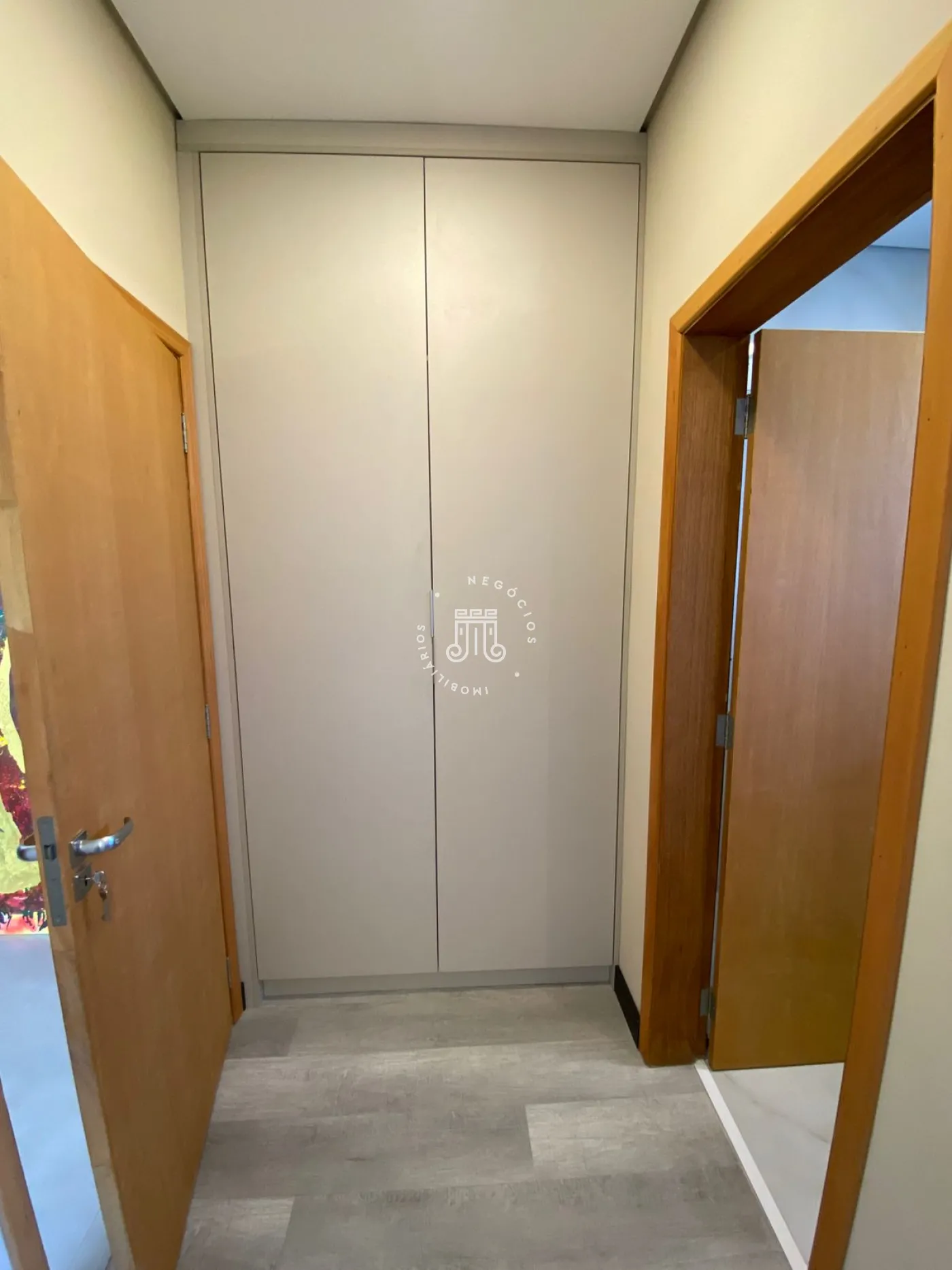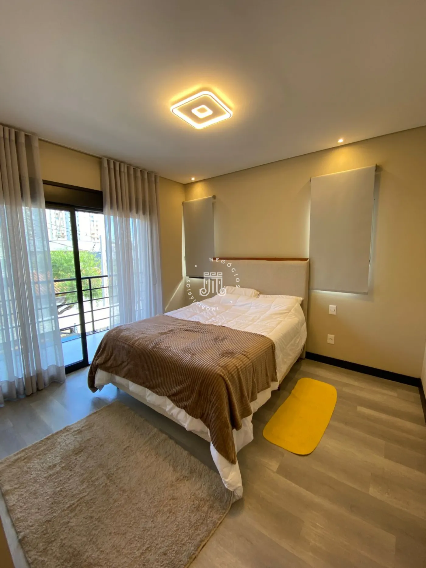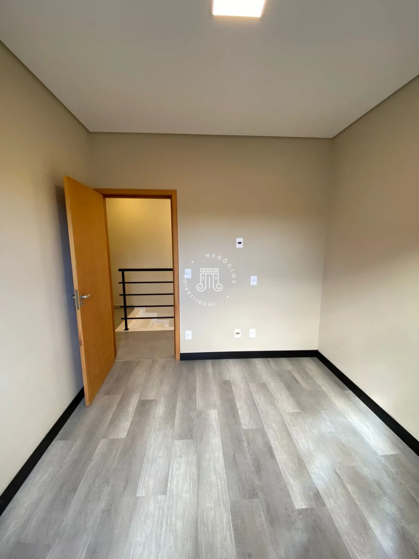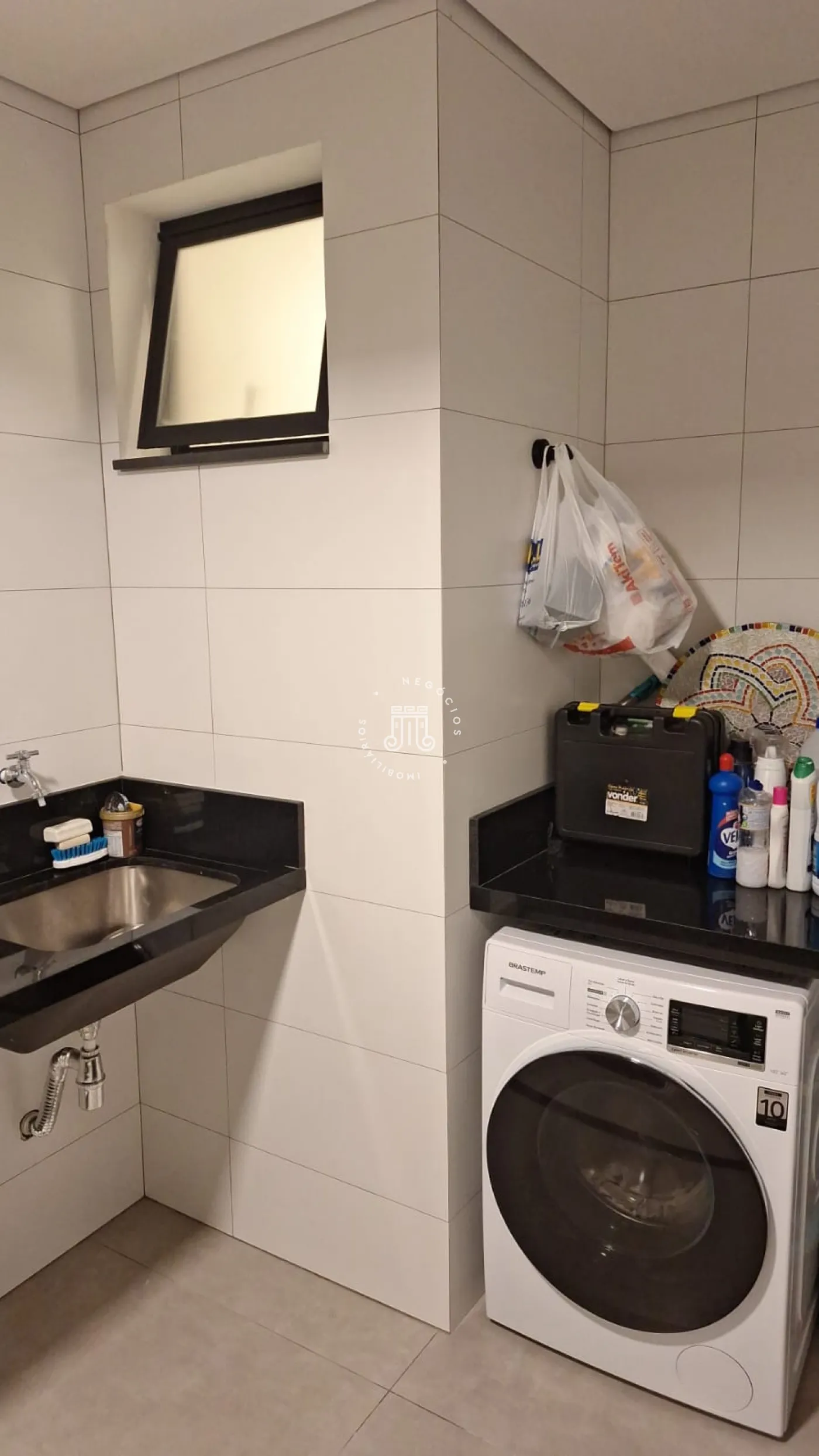Com 3 dormitórios, sendo 1 deles suíte master com armário e sacada, janelas com persiana integrada, banheiro social com box, lavabo, sala de estar, com pé direito duplo, cozinha planejada com ilha em granito, área de serviço, quintal com jardim e 2 vagas de garagem cobertas com portão eletrônico.