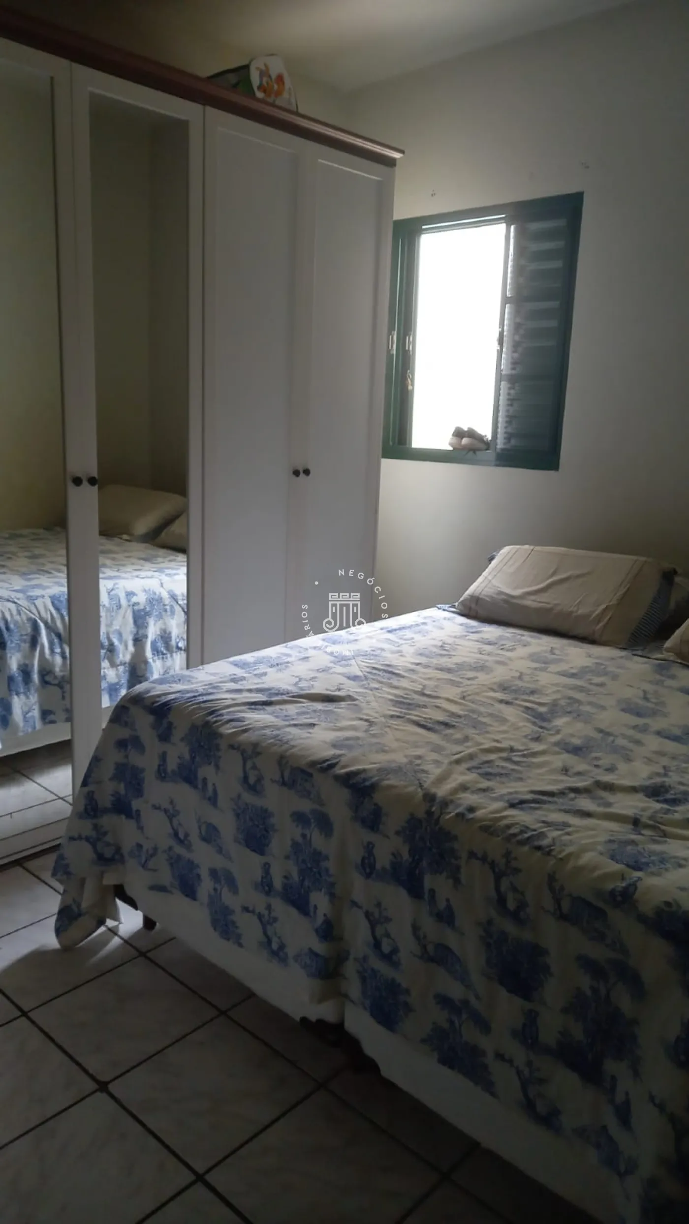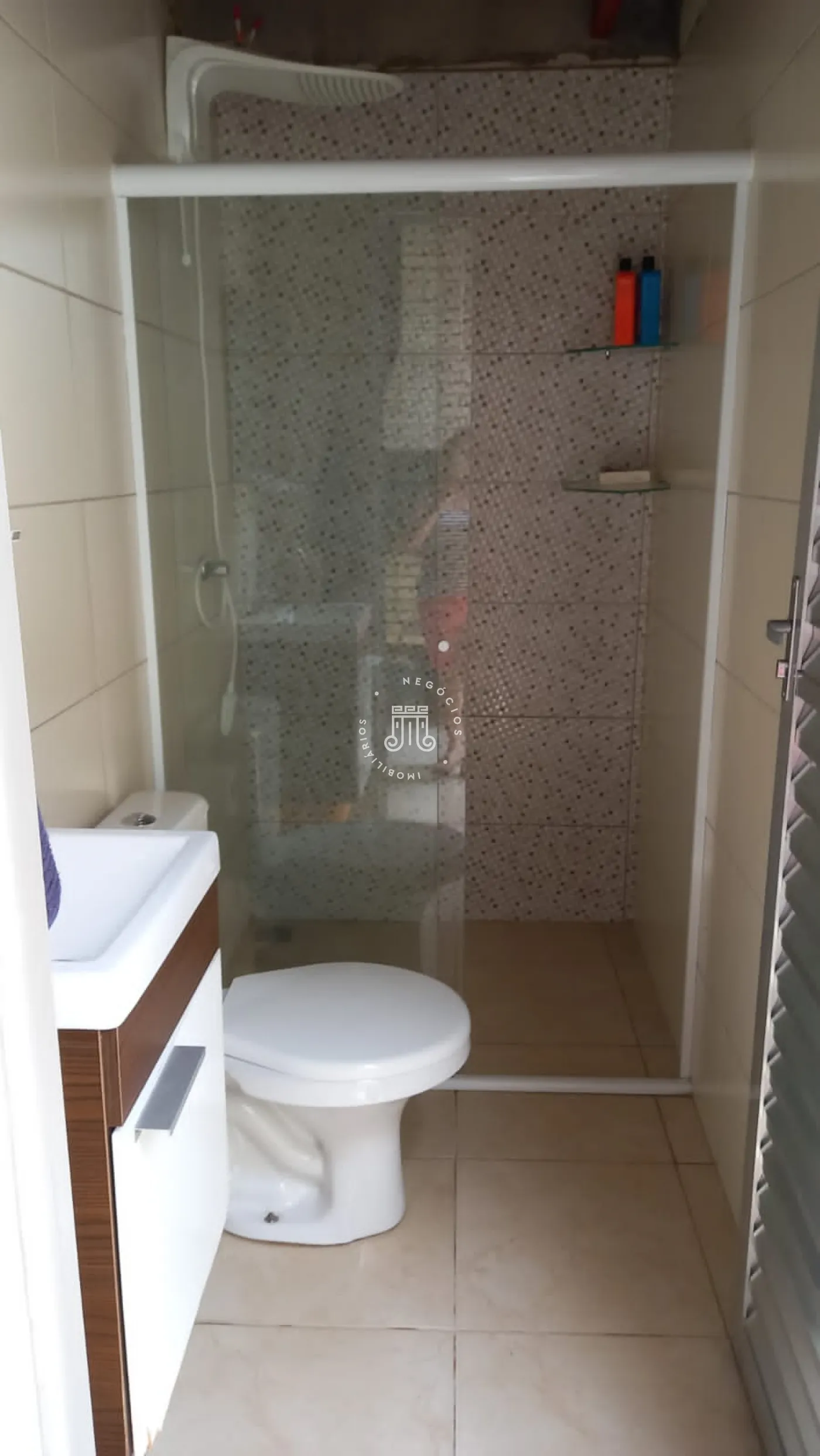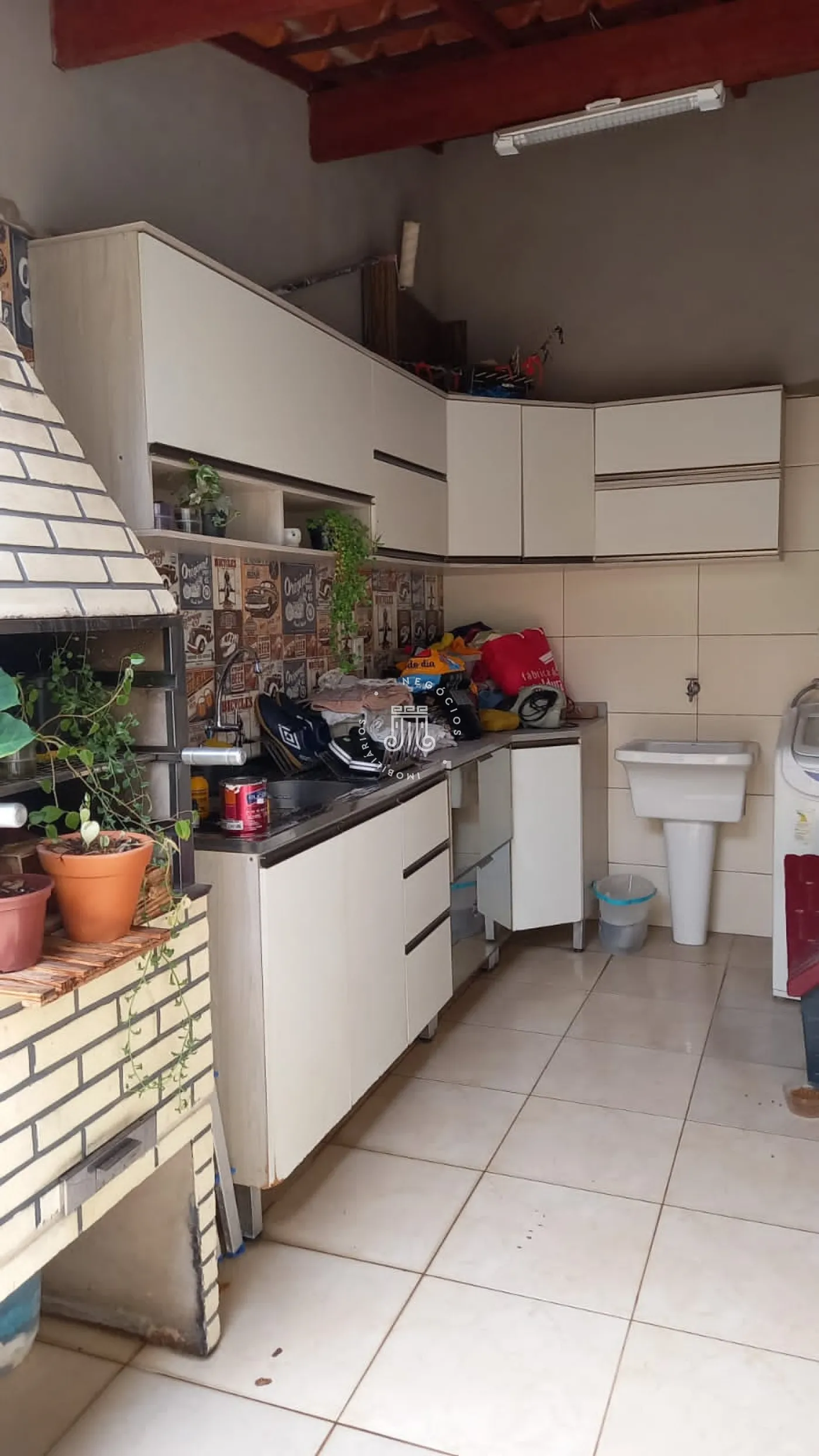 Imóvel com 03 quartos com armários, sala , banheiro social box de vidro, cozinha com armários, área de serviço, quintal com churrasqueira e banheiro externo nos fundos e vaga 2 carros cobertos, portão eletrônico.