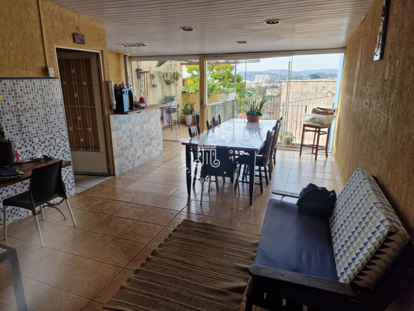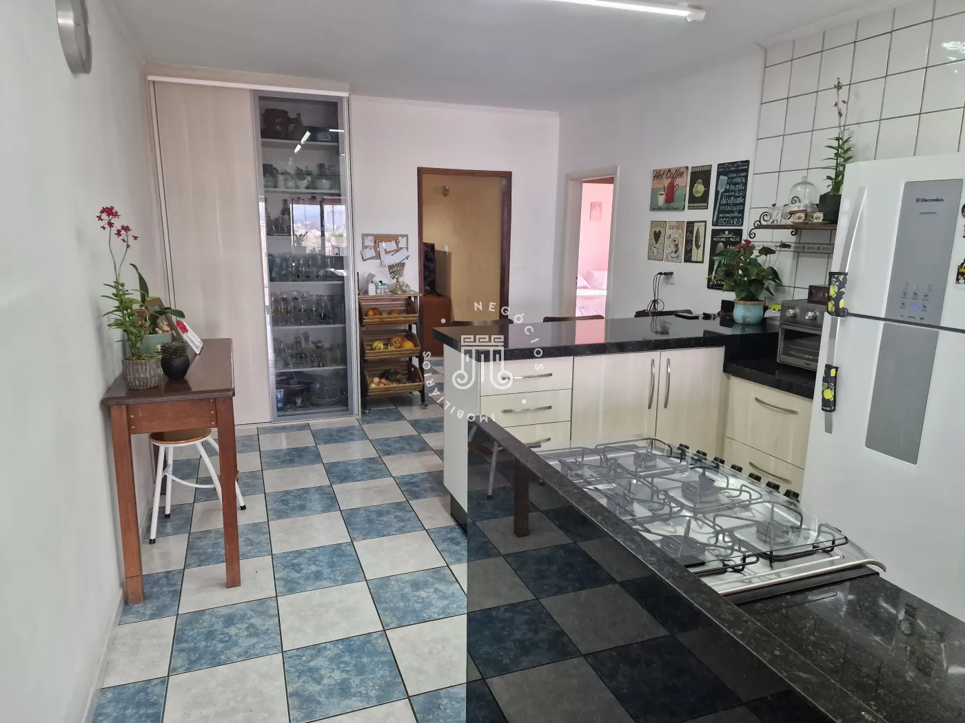 O imóvel conta ainda com 4 amplos dormitórios, sendo 1 suíte; 3 banheiros (1 da suíte, 1 lavabo e 1 social); copa e cozinha entre salda de estar e sala de jantar com área gourmet com fogão a lenha; ao fundo, a lavanderia.