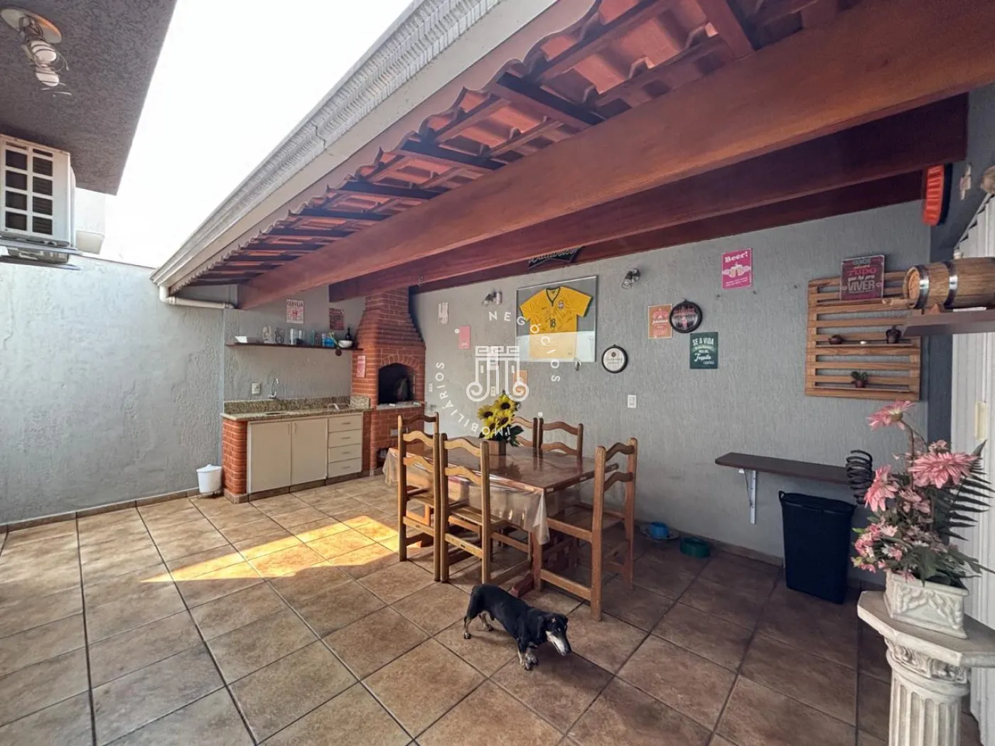 O imóvel está distribuído da seguinte forma: 3 quartos, sendo 1 suíte com hidromassagem, todos com armários planejados e ar condicionado, banheiro social, sala de jantar, sala de estar, cozinha com armários planejados, área de serviço, espaço gourmet com churrasqueira, pia com gabinete e 2 vaga de garagem, sendo 1 coberta.