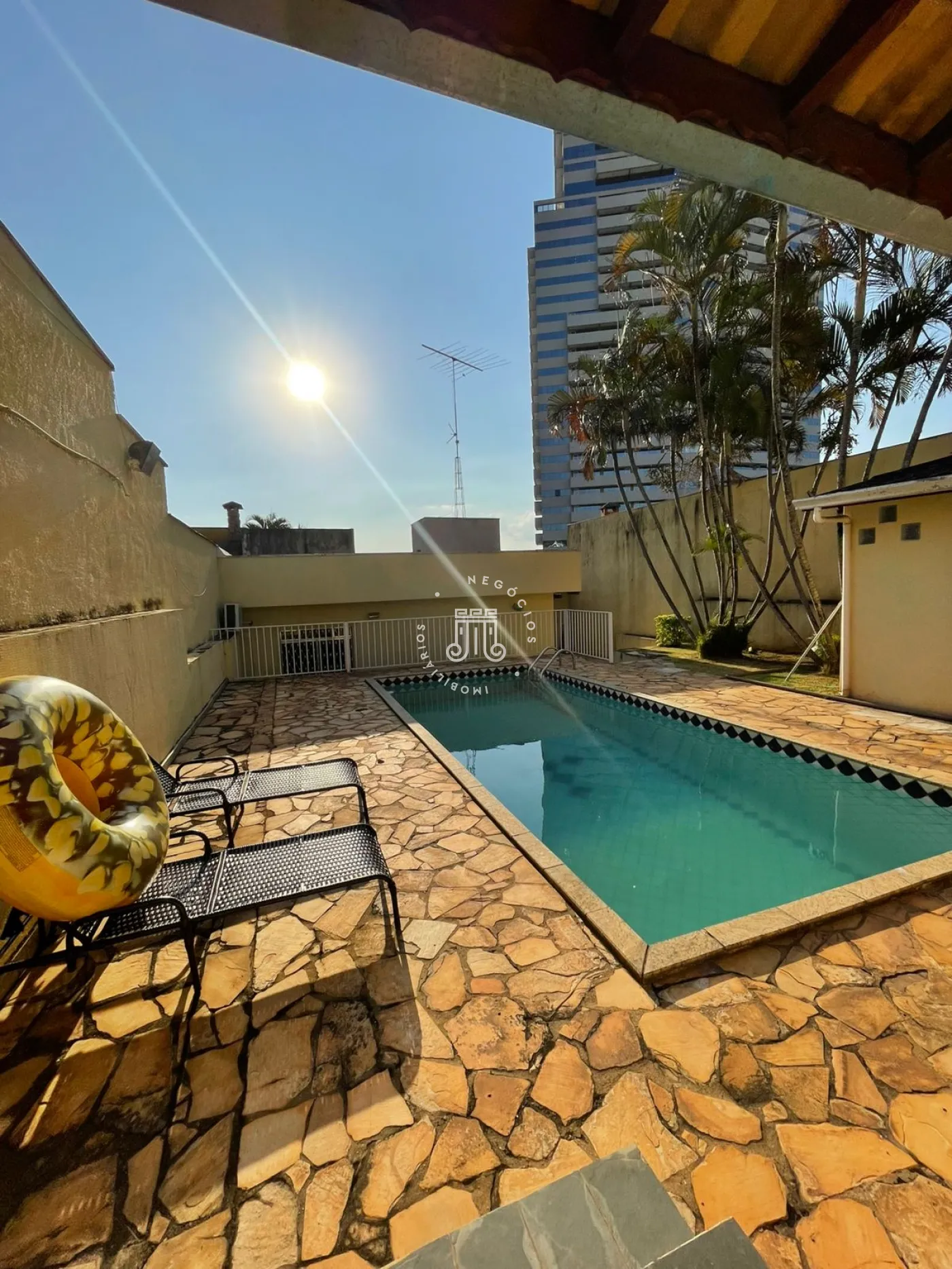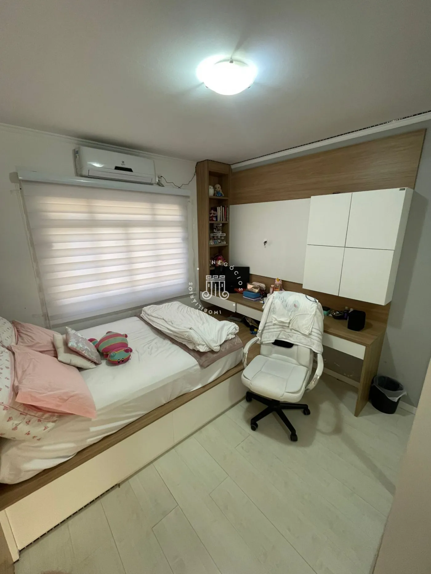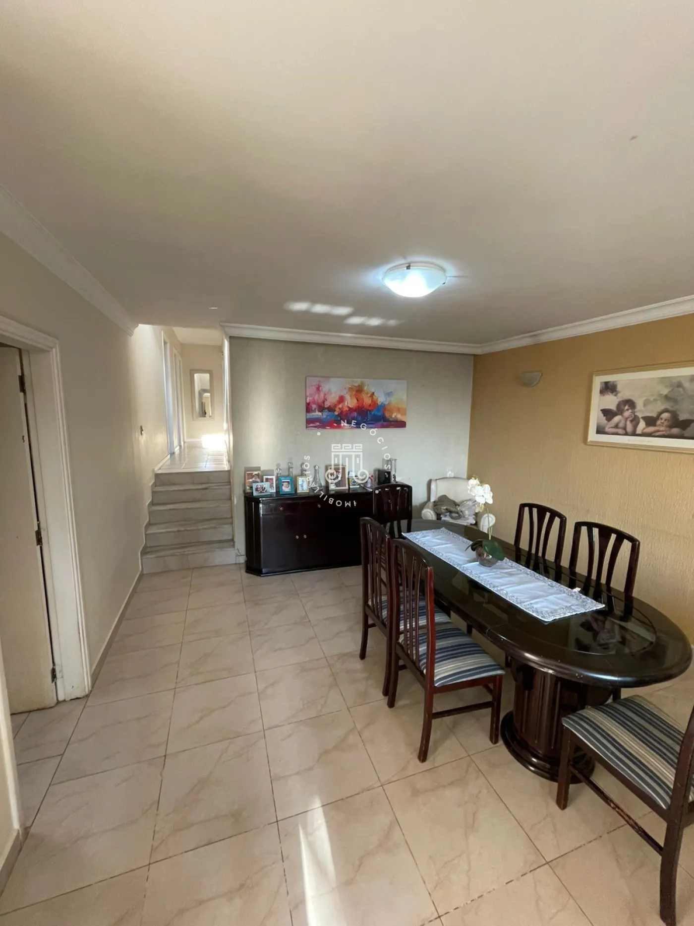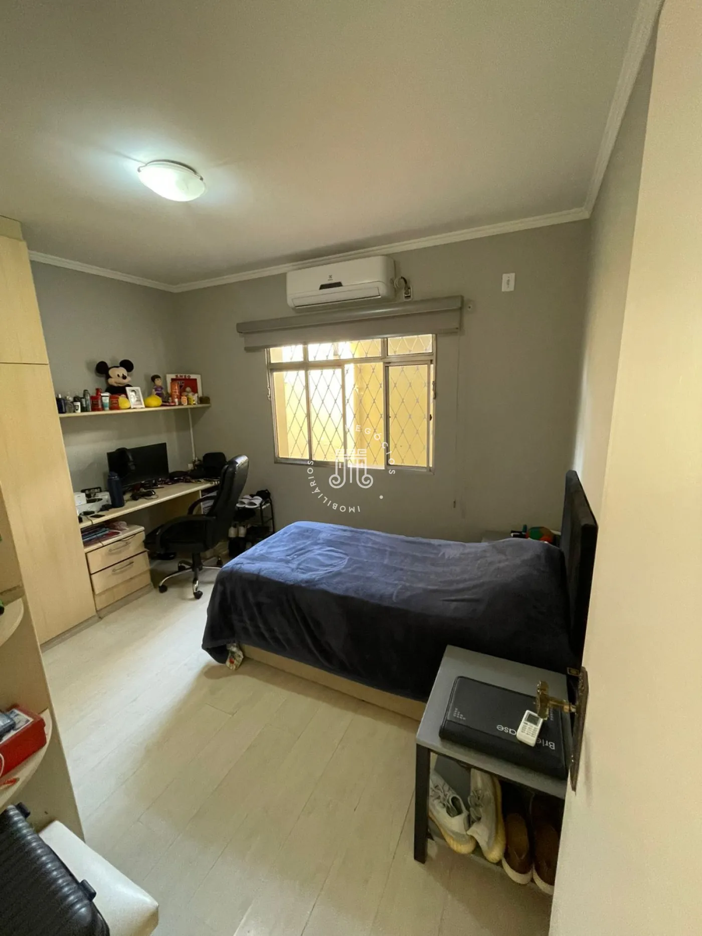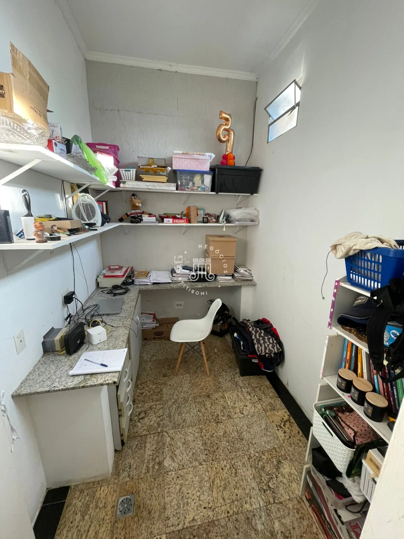 O imóvel conta com quatro dormitórios, sendo uma suíte, além de sala ampla com espaço para diferentes ambientes, escritório planejado, lavabo, cozinha equipada com móveis sob medida, área de serviço e banheiro social com box de vidro e gabinete.