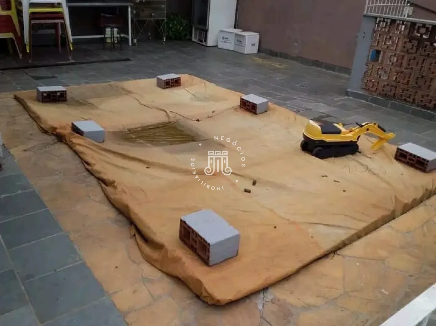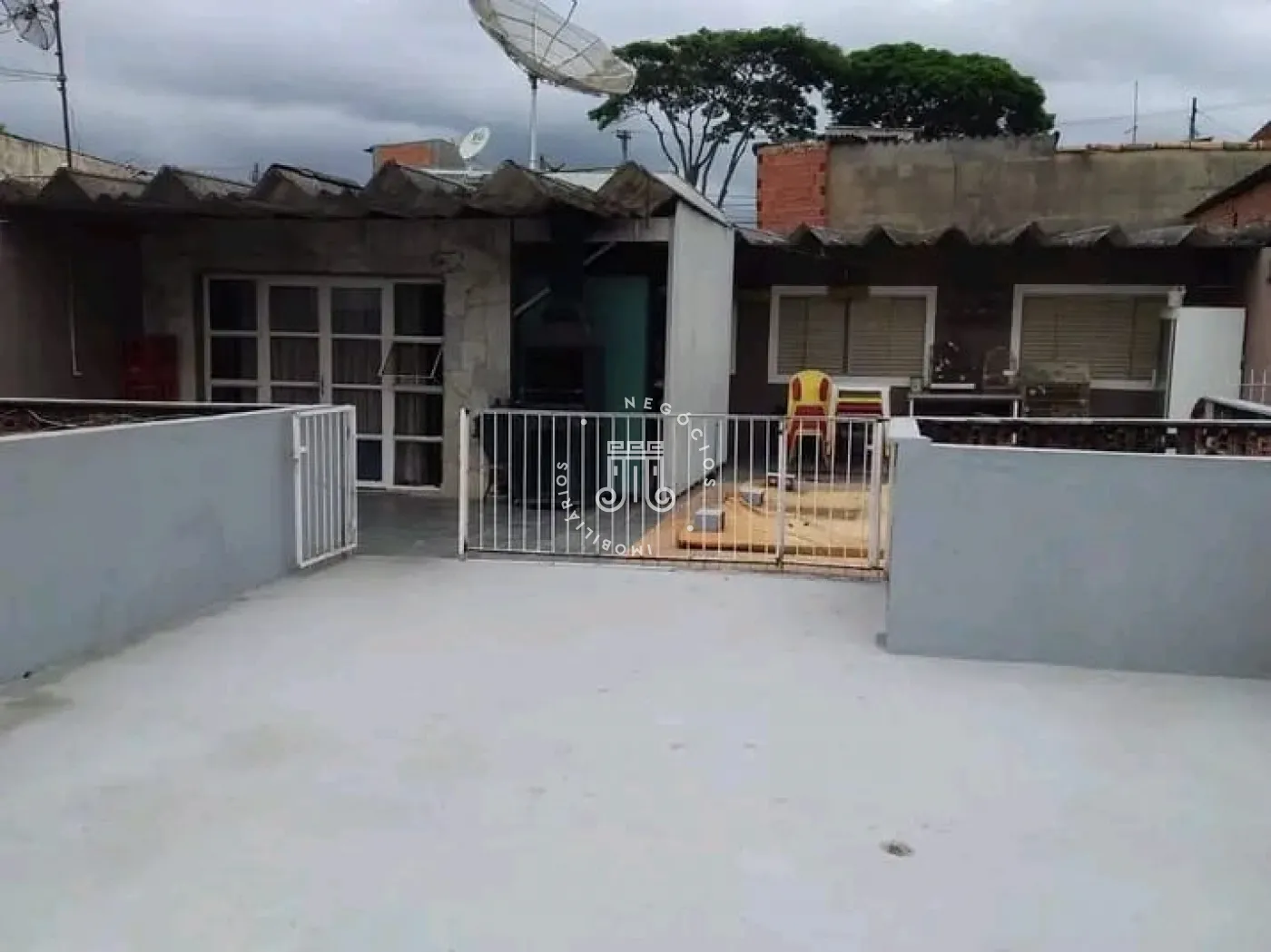 A casa de 83m² conta com: 03 dormitórios, 01 banheiro, sala de estar, cozinha americana, vaga para 05 carros e um quintal amplo com piscina com capacidade para 11 mil litros. Possui também um ponto comercial com 1 banheiro de 60m² com pé direito de 6m independente da casa.