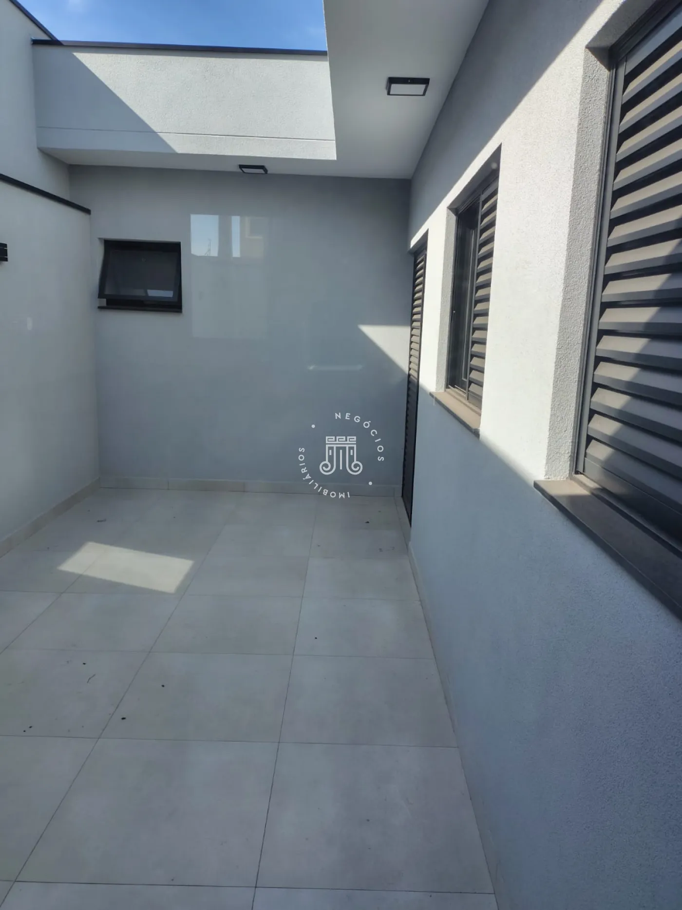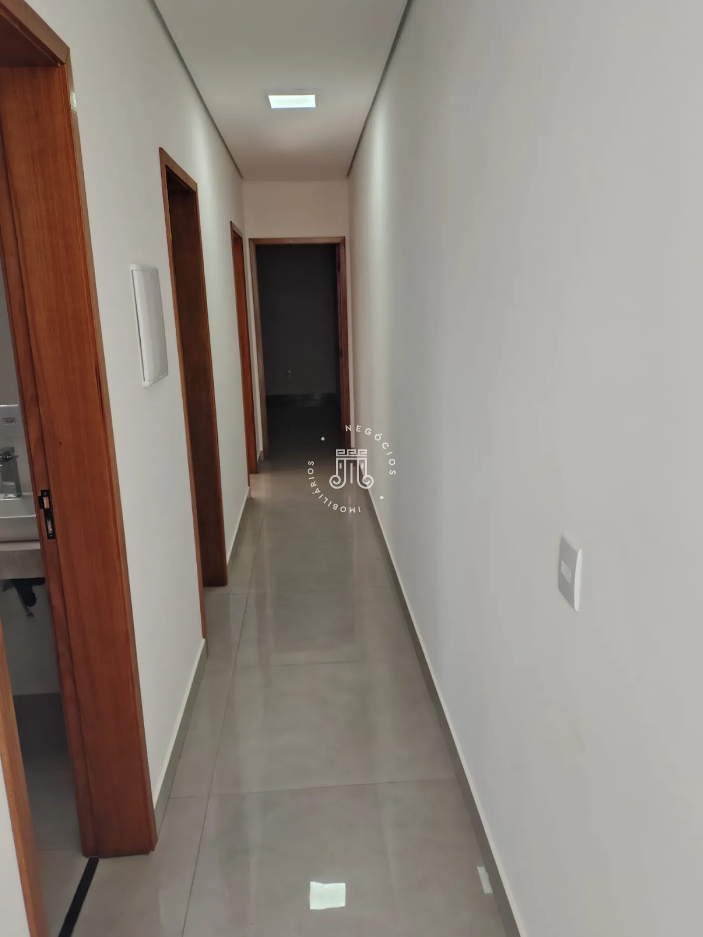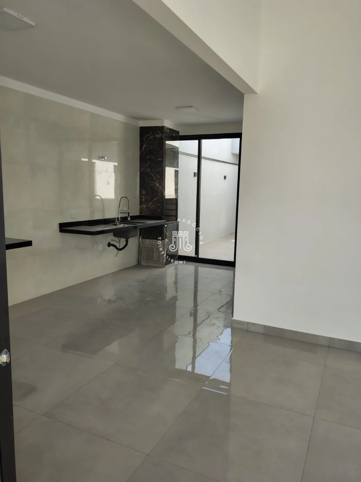 Com terreno de 172,50 m² e 113,94 m² de área construída, composta por 3 quartos sendo 1 suite e todas as janelas automatizadas, sala jantar, sala de estar, cozinha e área gourmet integrada, banheiro social, churrasqueira, área de servio coberta e 1 vaga de garagem coberta com portão automatizado.