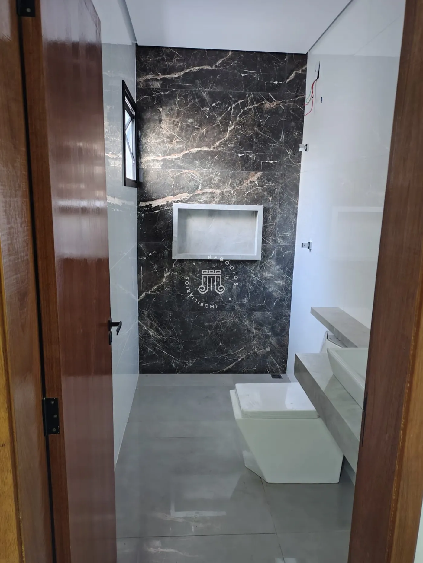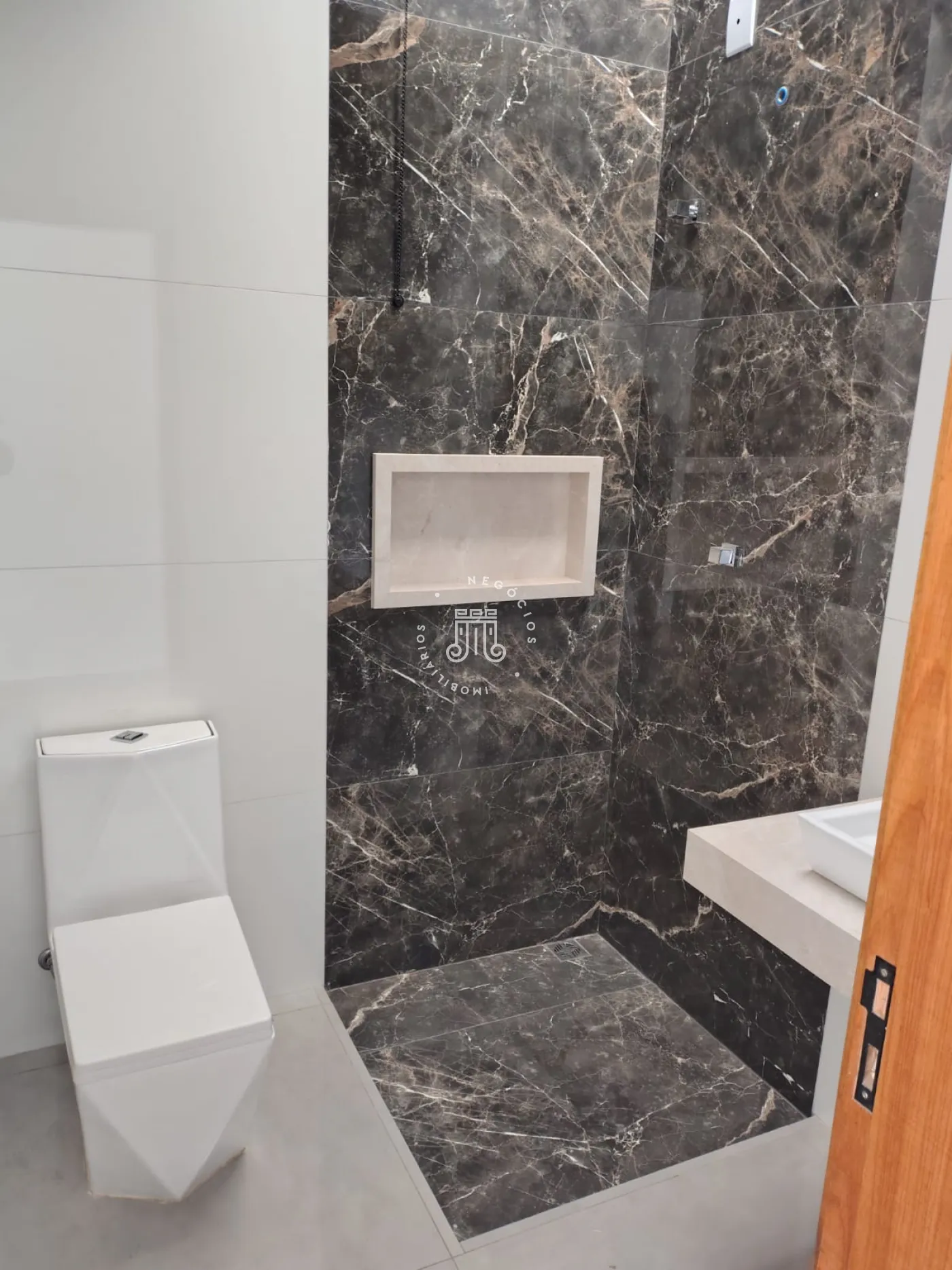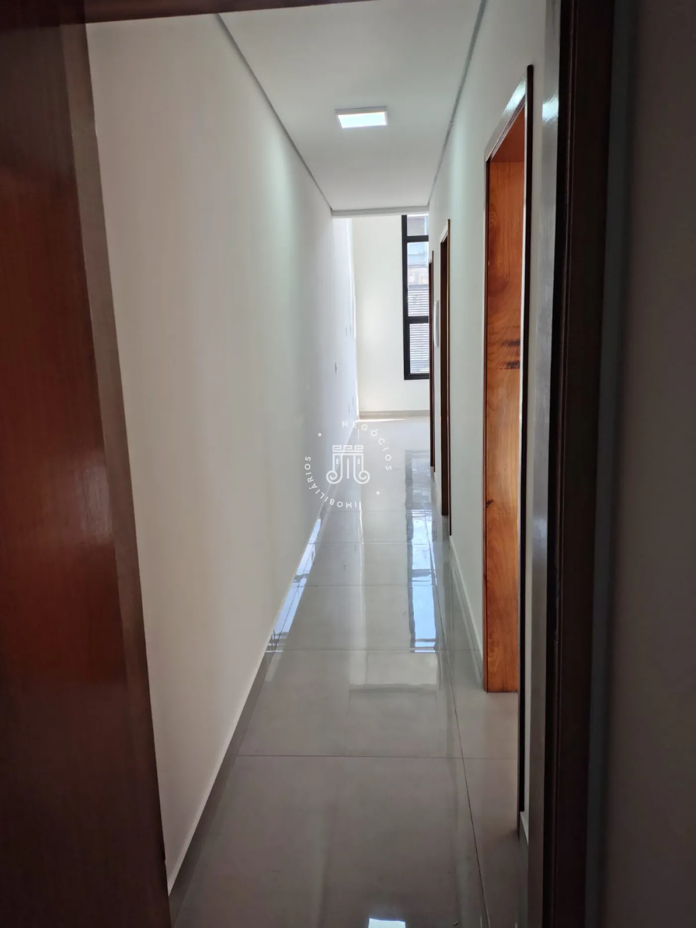 Com terreno de 172,50 m² e 113,94 m² de área construída, composta por 3 quartos sendo 1 suite e todas as janelas automatizadas, sala jantar, sala de estar, cozinha e área gourmet integrada, banheiro social, churrasqueira, área de servio coberta e 1 vaga de garagem coberta com portão automatizado.