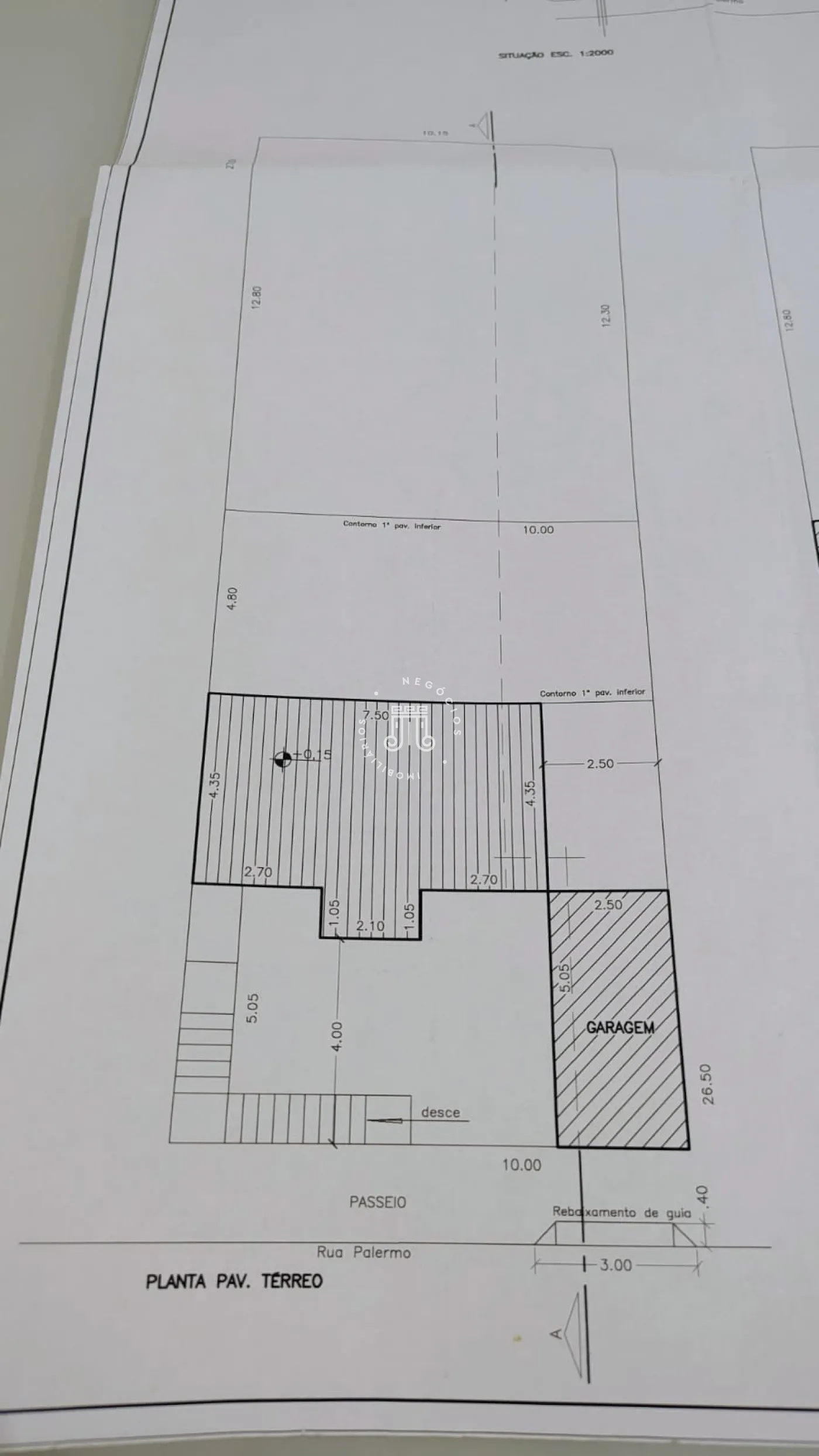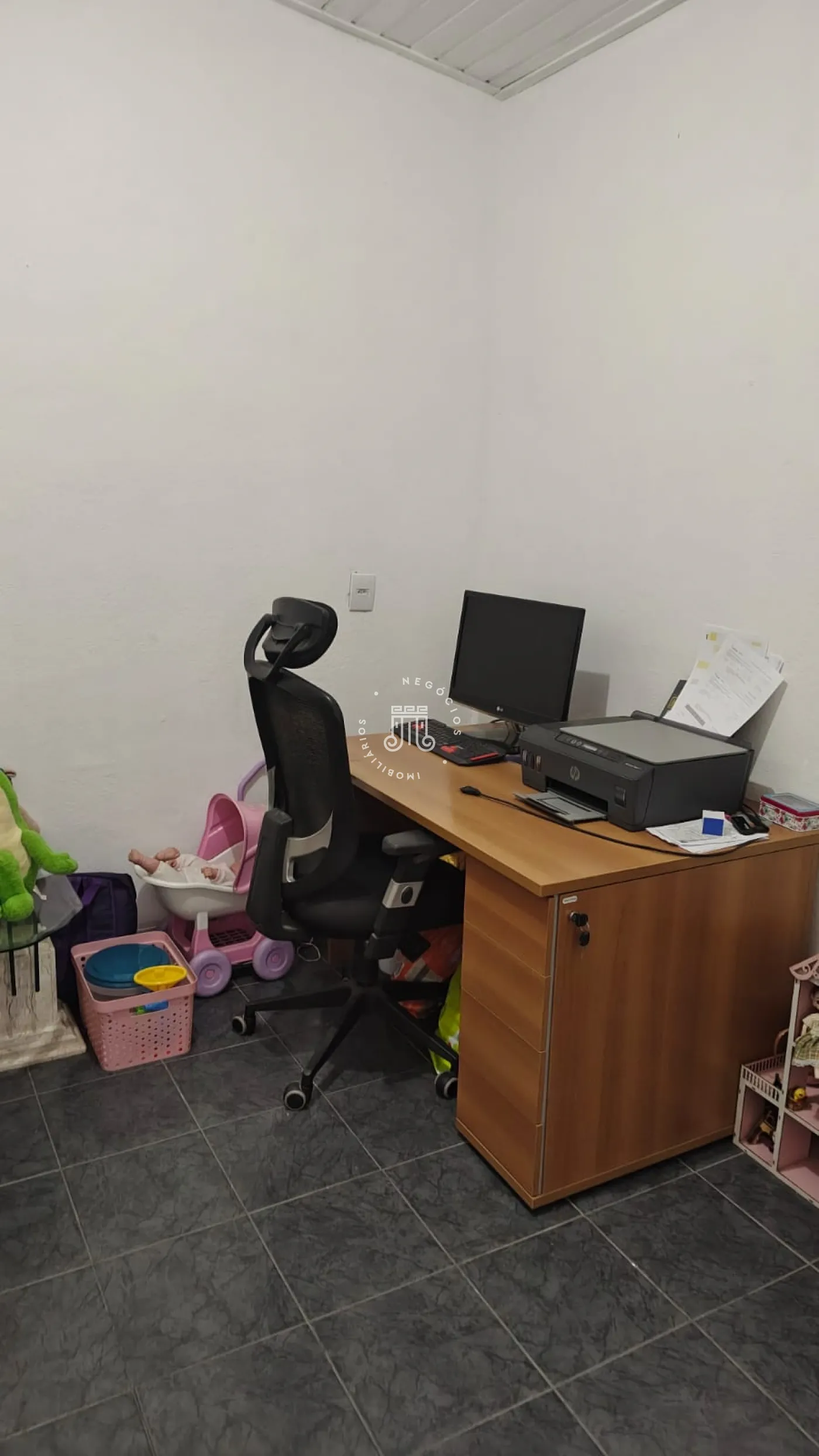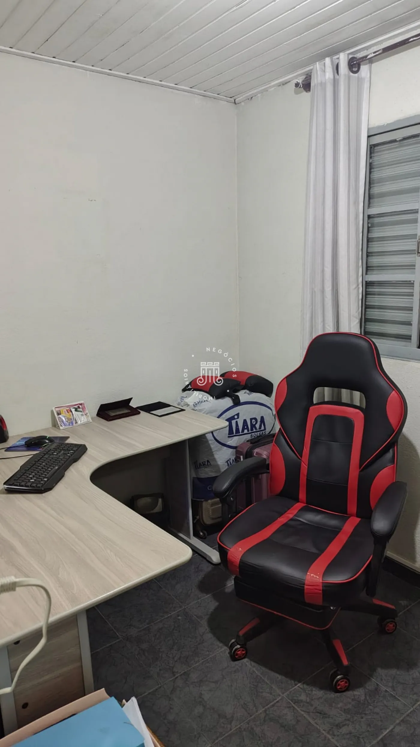 Casa com 3 quartos, sendo um com escritório, sala, sala de jantar, cozinha, área de serviço, depósito e 2 banheiros.