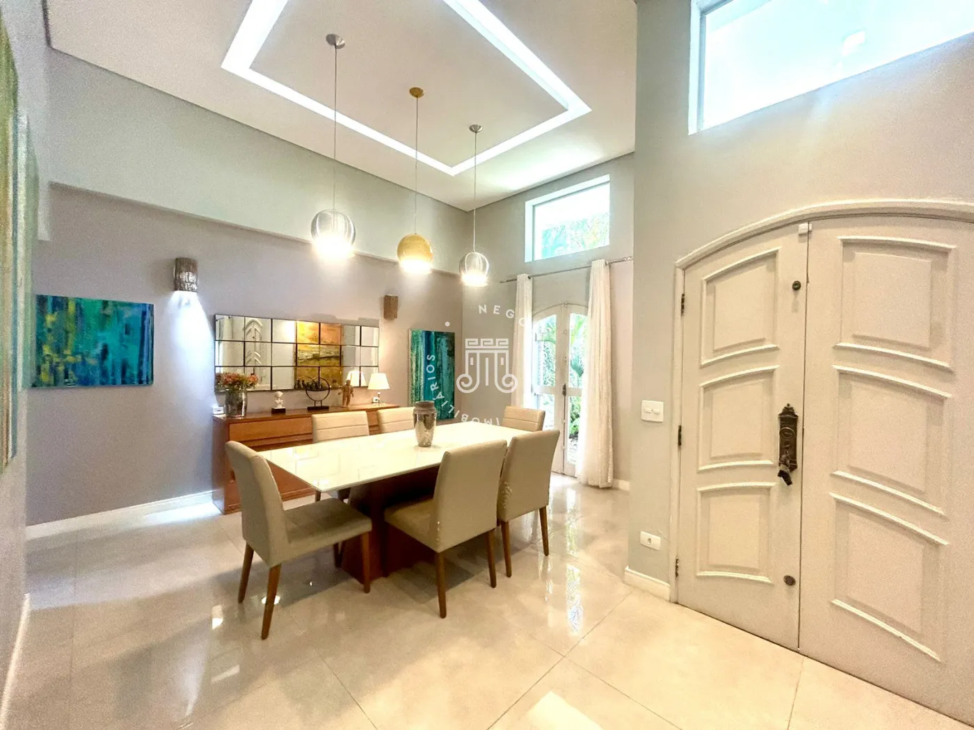 Belíssima Casa com 04 dormitórios, sendo 03 suítes, uma máster com banheira, suíte de empregada, sala ampla com pé direito duplo com lareira, cozinha integrada a sala de tv, área gourmet, piscina com bangalô, salão de festas, sauna e banheiros na piscina, lavanderia ampla e arejada.