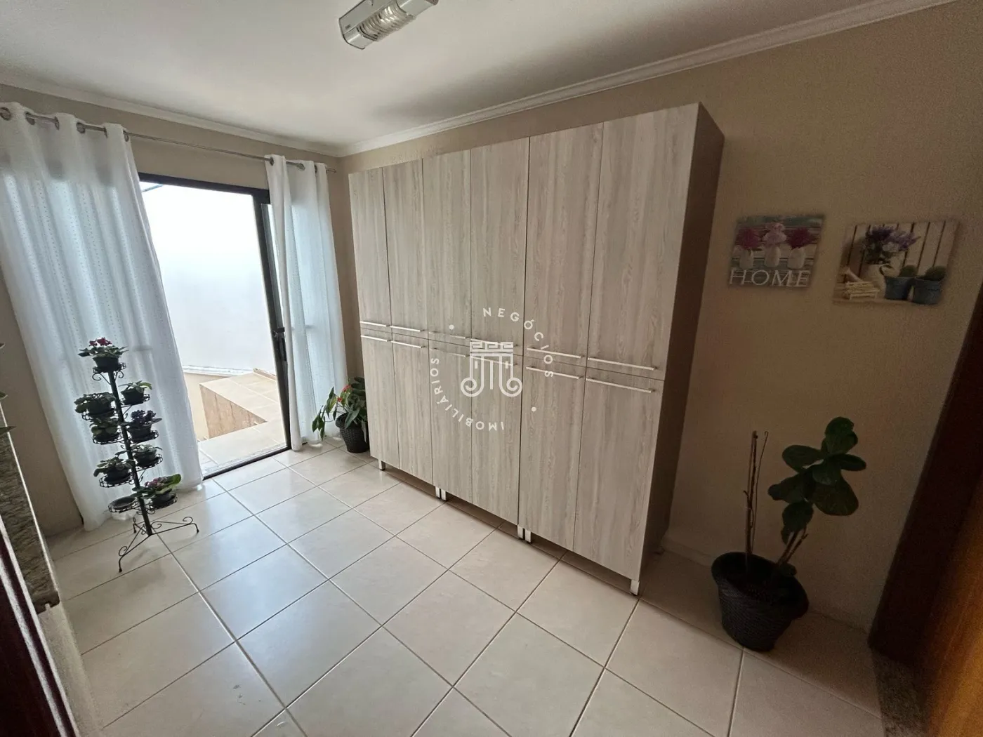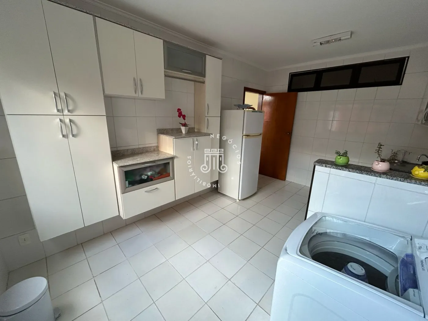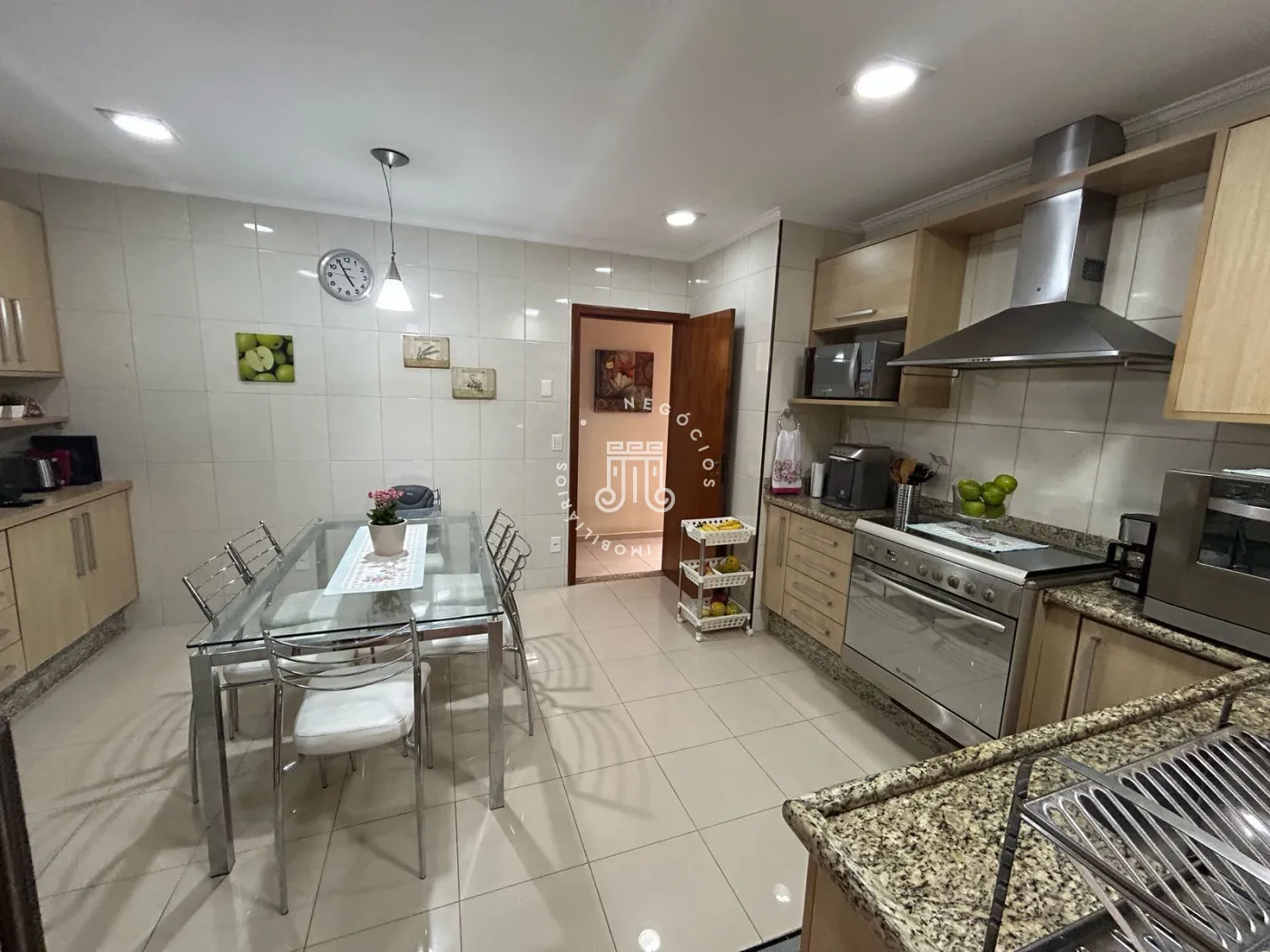 04 Dormitórios sendo 1 suíte com armário planejado e varanda, todos os dormitórios com armários planejado, (podendo reverter 1 em escritório), banheiro social com Box de vidro e armários, sala 3 ambientes, jardim de inverno, cozinha ampla planejada c/fogão e forno embutido, área de serviço planejada, salão de festas (que pode ser usado com edícula, pois possui um espaço amplo com 1 banheiro, cozinha e lavanderia), espaço gourmet c/ churrasqueira e forno de pizza, piscina, banheiro, jardim, vaga para 3 carros.