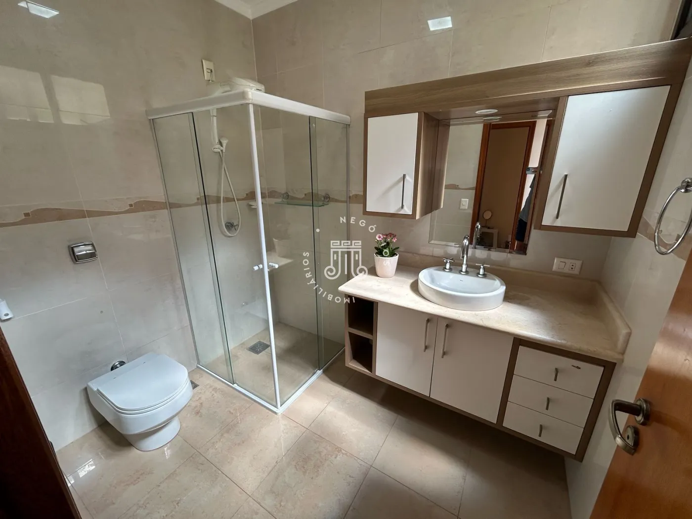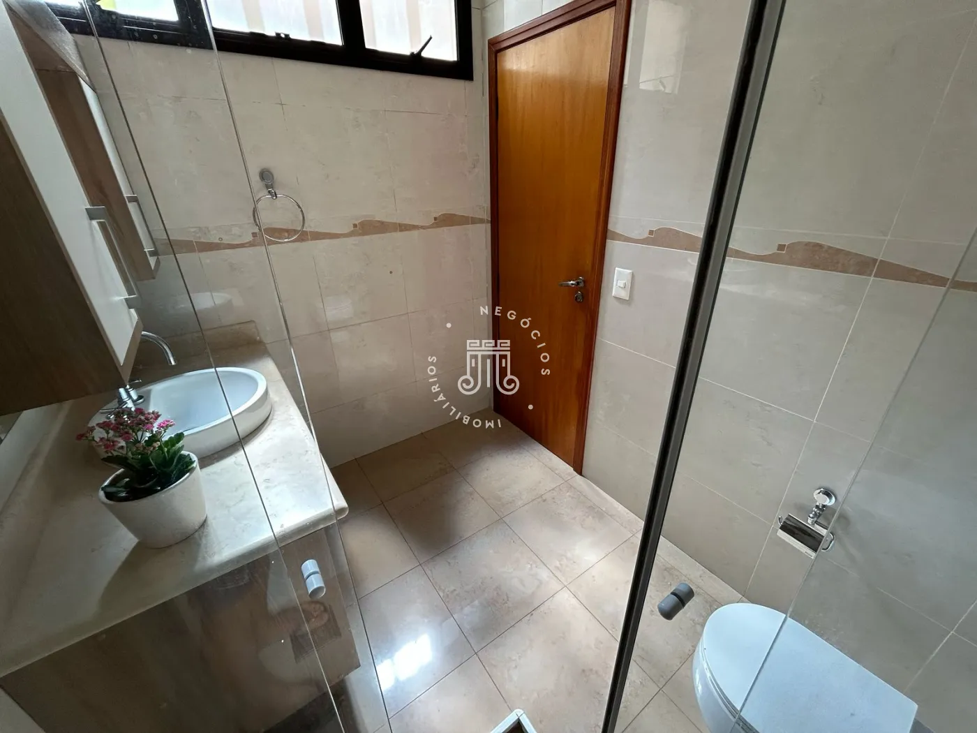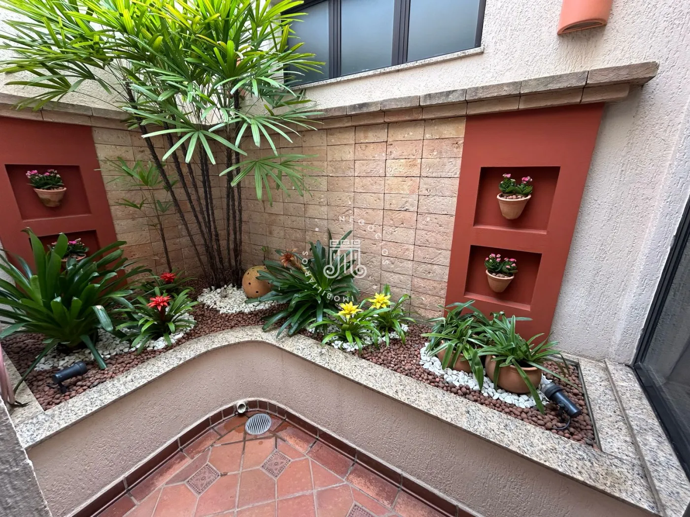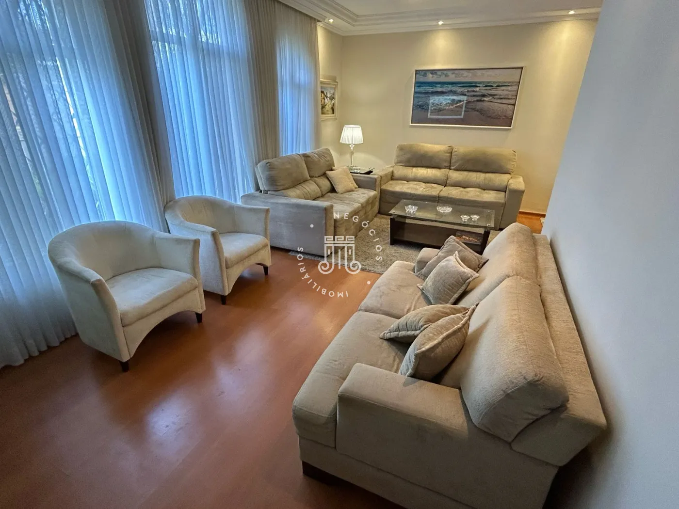 04 Dormitórios sendo 1 suíte com armário planejado e varanda, todos os dormitórios com armários planejado, (podendo reverter 1 em escritório), banheiro social com Box de vidro e armários, sala 3 ambientes, jardim de inverno, cozinha ampla planejada c/fogão e forno embutido, área de serviço planejada, salão de festas (que pode ser usado com edícula, pois possui um espaço amplo com 1 banheiro, cozinha e lavanderia), espaço gourmet c/ churrasqueira e forno de pizza, piscina, banheiro, jardim, vaga para 3 carros.