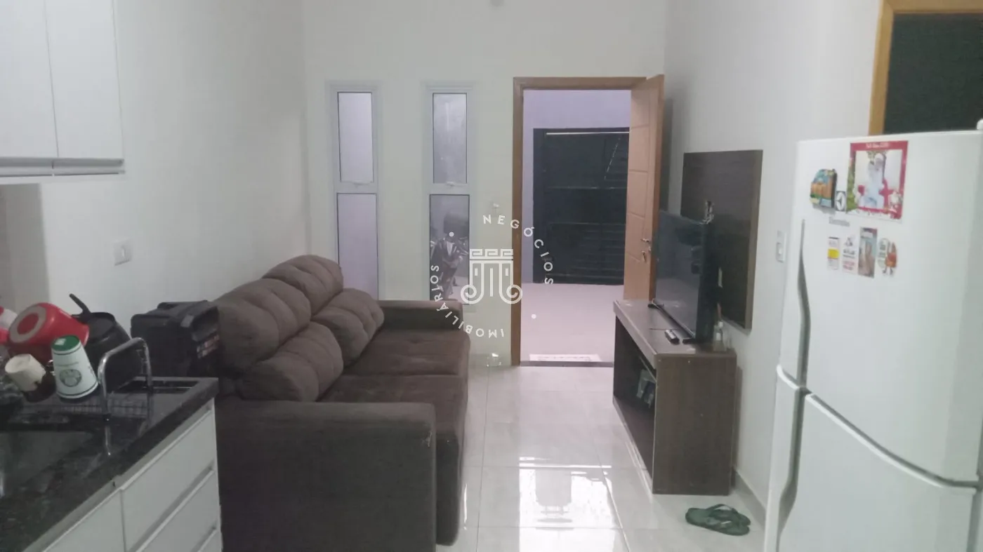 Área da casa 45 metros com mais 15 metros de área externa. Composta por 2 quartos, sala e cozinha americana, 1 banheiro, área de serviço. Garagem para 3 carros com portão automático e sistema de câmeras e alarme integrado.