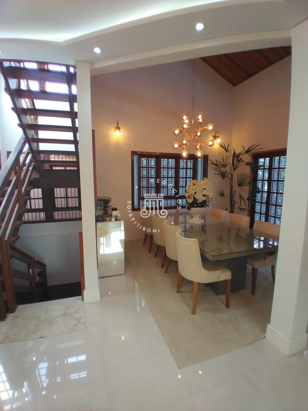 Com 304 m² de terreno e 320 m² de área construída, composto por 5 dormitórios sendo 1 suíte máster com closet e sacada com vista para a Serra do Japi , 3 banheiros com box de vidro e armários com fino acabamento, mezanino, sala de jantar e estar integradas com pé direito duplo com parede de destaque em marmorato e lustres fantásticos, bar aconchegante para receber os amigos, escada em madeira nobre com espaço para uma adega, escritório amplo com entrada separada, cozinha planejada com armários modernos, forno embutido, bancada, área de serviço com deposito, espaço gourmet com cozinha planejada, churrasqueira e piscina aquecida e 3 vagas de garagem cobertas.
