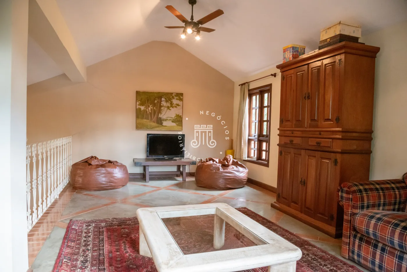 Casa Térrea com piscina e área gourmet à venda no Jardim Samambaia composta por: 03 quartos sendo 1 suíte, 01 sala de estar com 2 ambientes, 01 sala de jantar, 01 sala de TV, 01 mezanino (grande), 01 área gourmet, 01 piscina, 01 churrasqueira, 01 forno de pizza, 01 cozinha com armários, 01 área de serviço e 03 vagas de garagem coberta. O imóvel ainda possui uma edícula com 02 suítes no estilo apartamento.