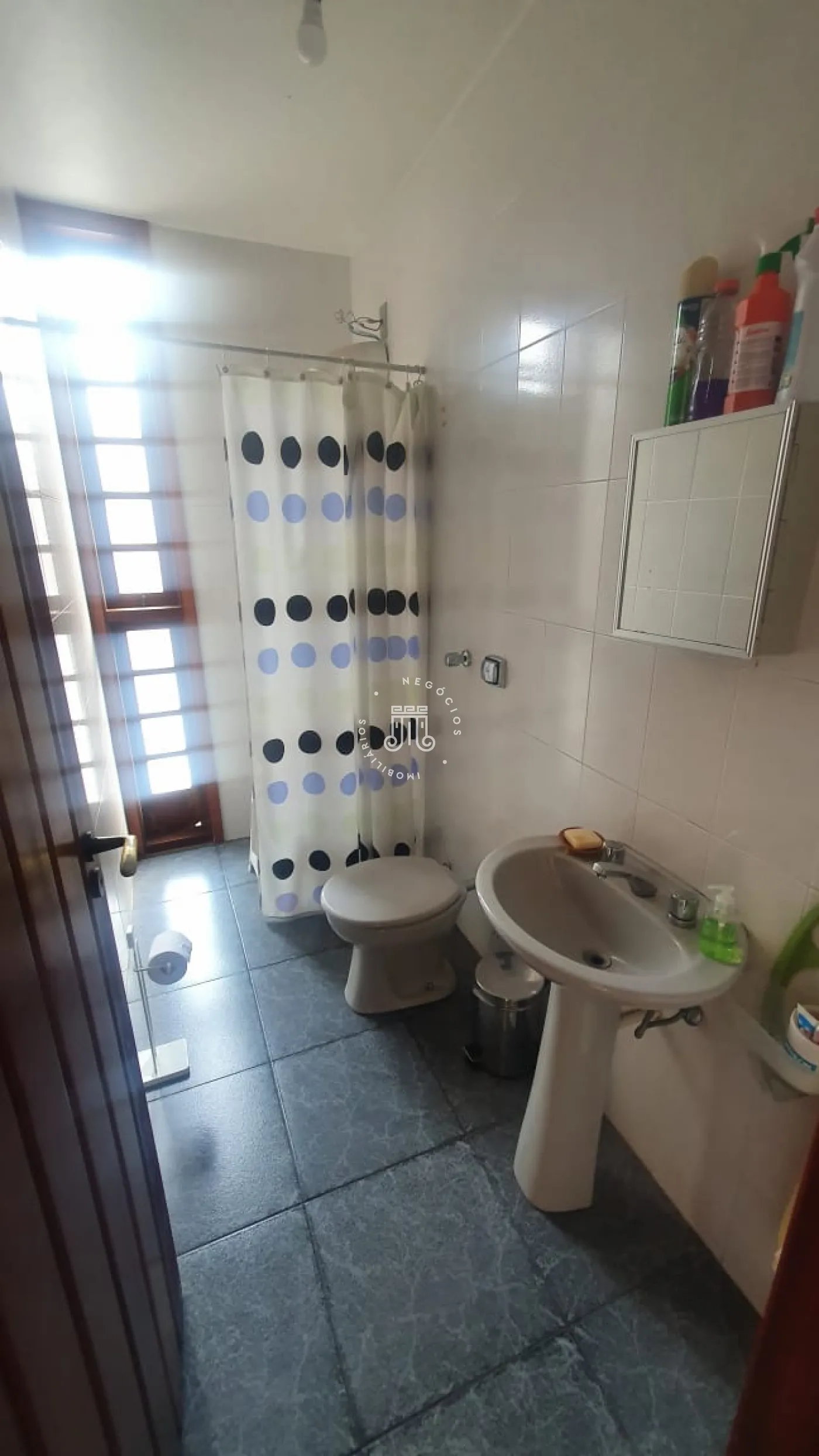 Lavabo e banheiro social, ambos com piso frio. Área de serviço e depósito para empregada com banheiro.