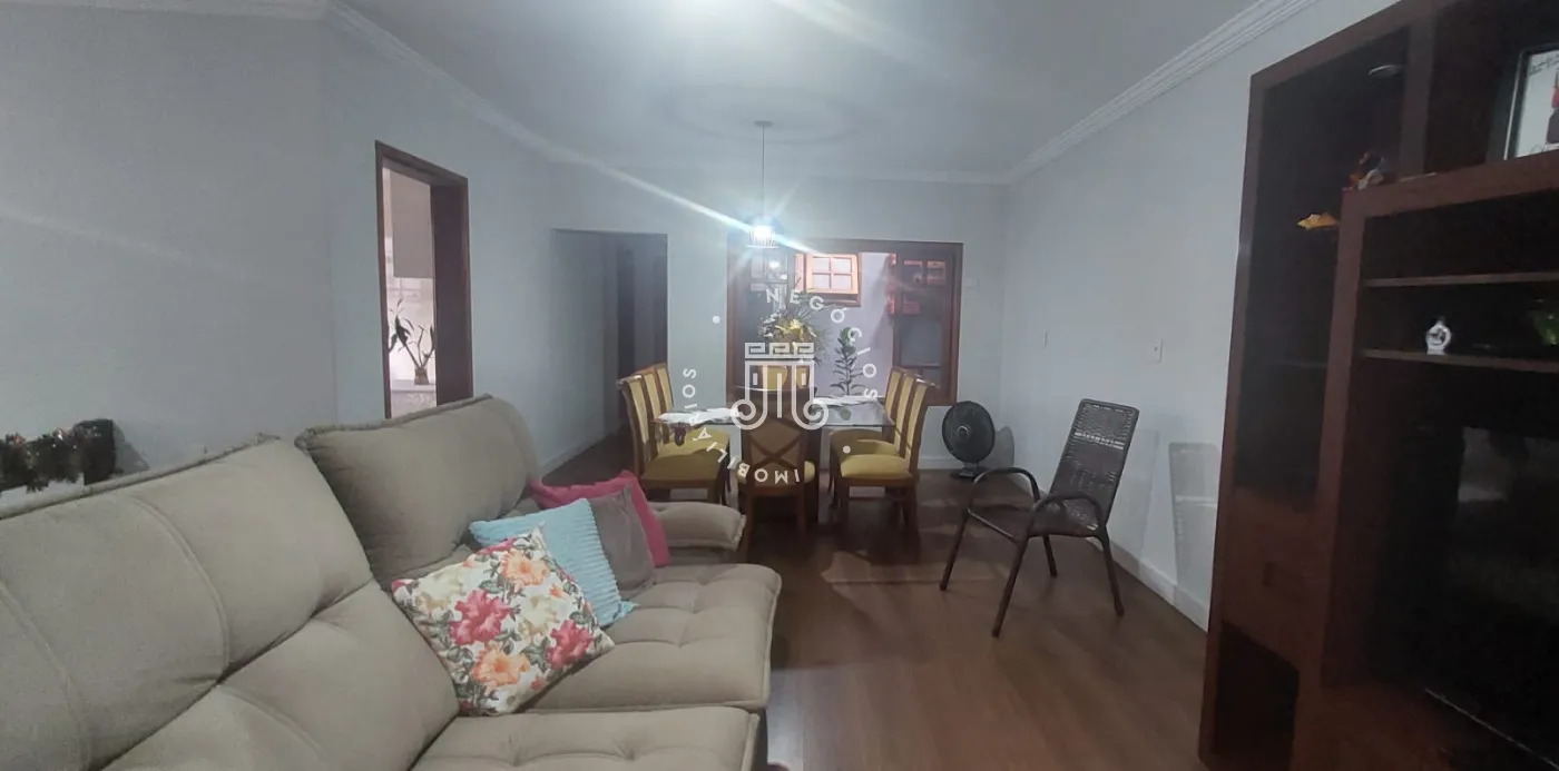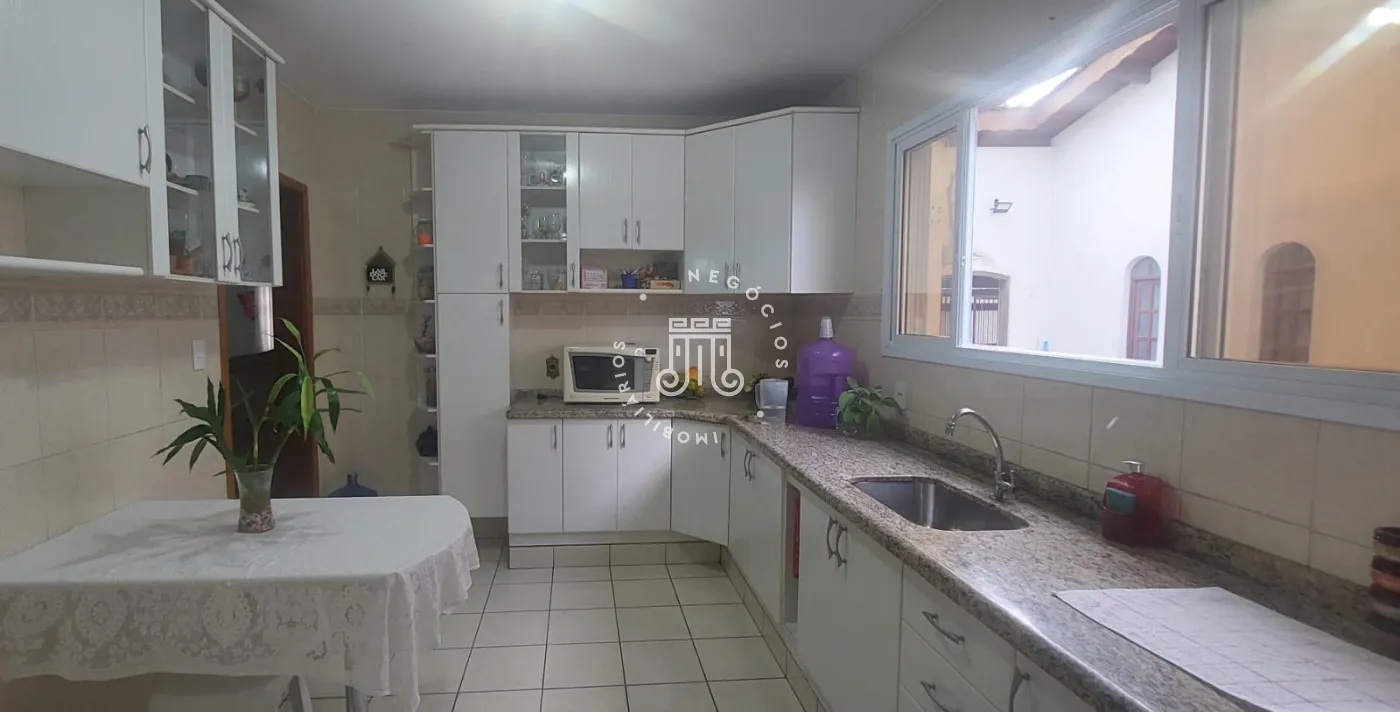 Sala dois ambientes, sala de estar e jantar, com jardim de inverno, cozinha ampla e com armários planejados. Quintal com área grande com espaço para construção de piscina, garagem com capacidade para 4 carros.