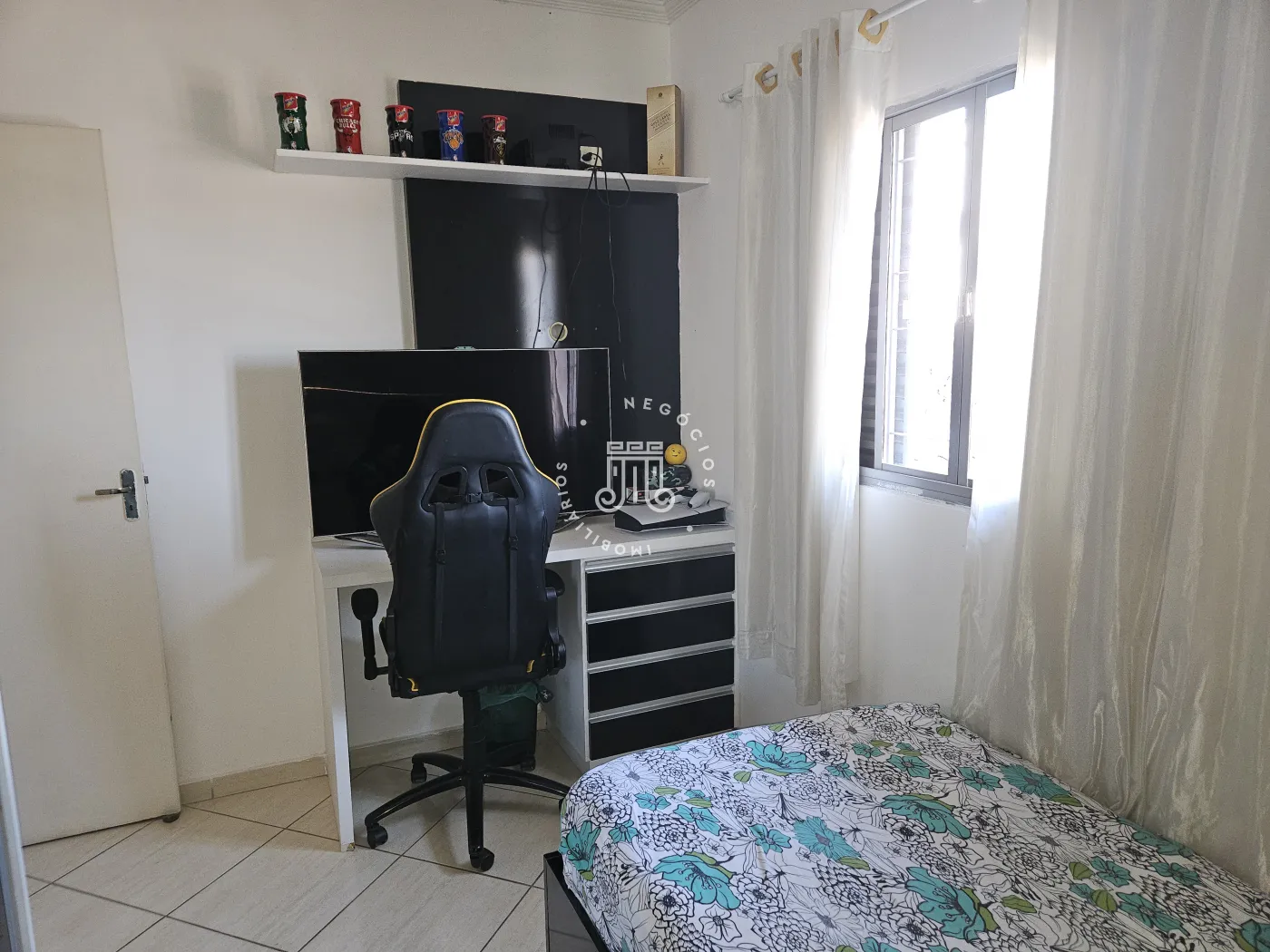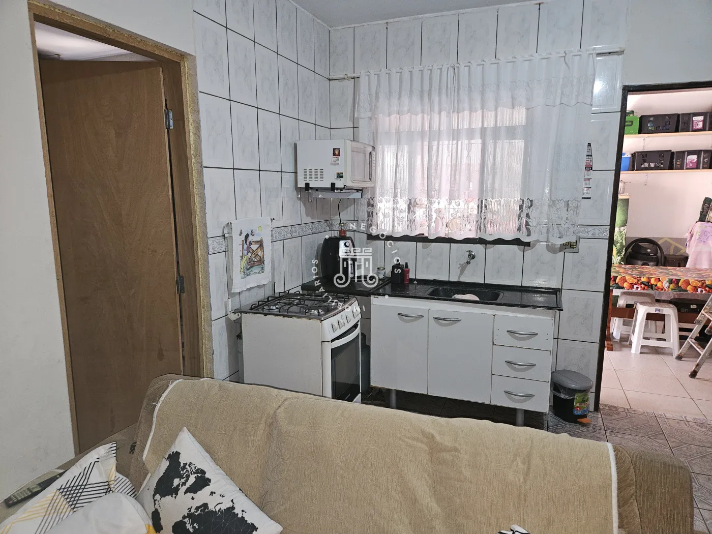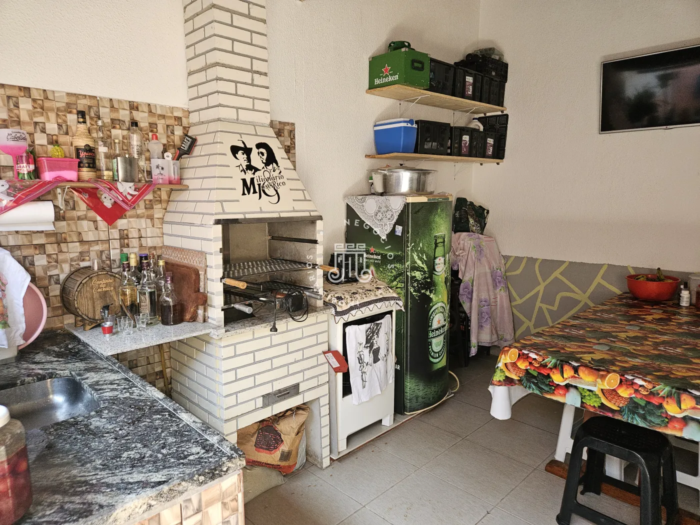 O imóvel possui: 03 dormitórios, 02 banheiros, sala, cozinha e 02 garagens.