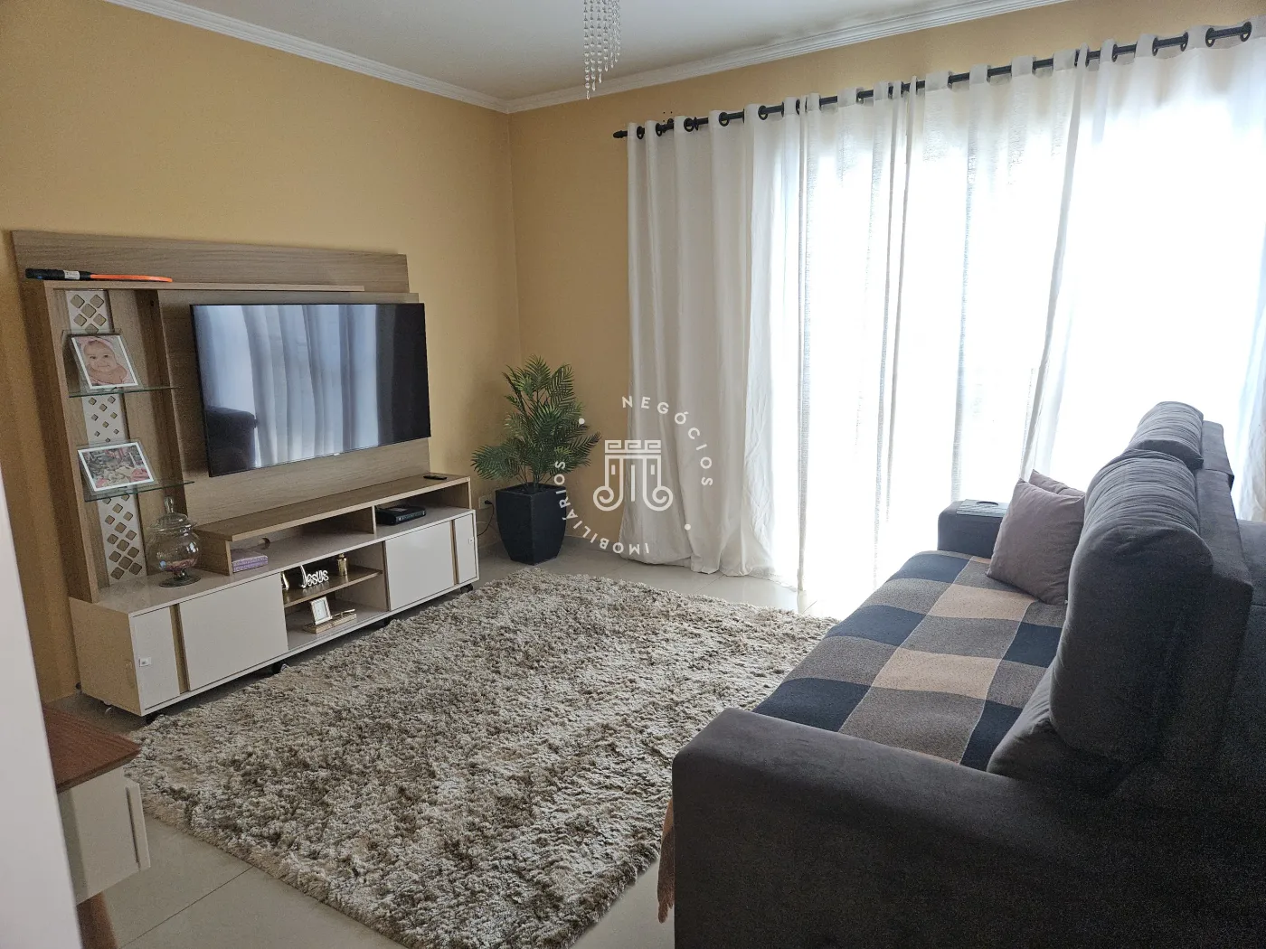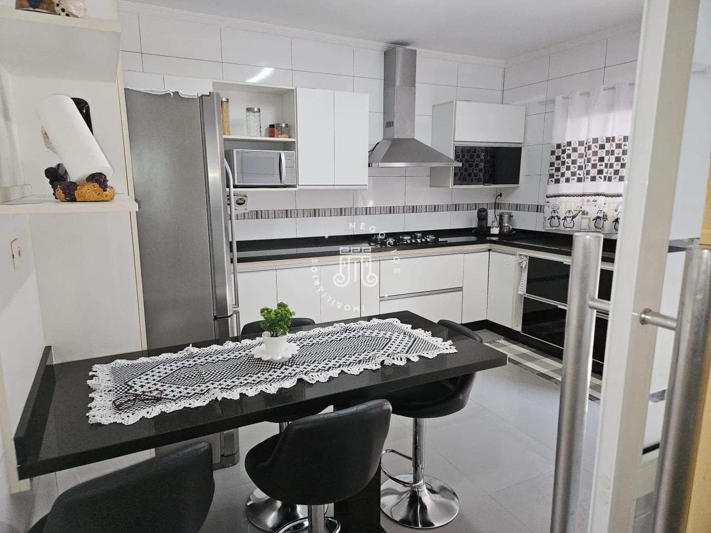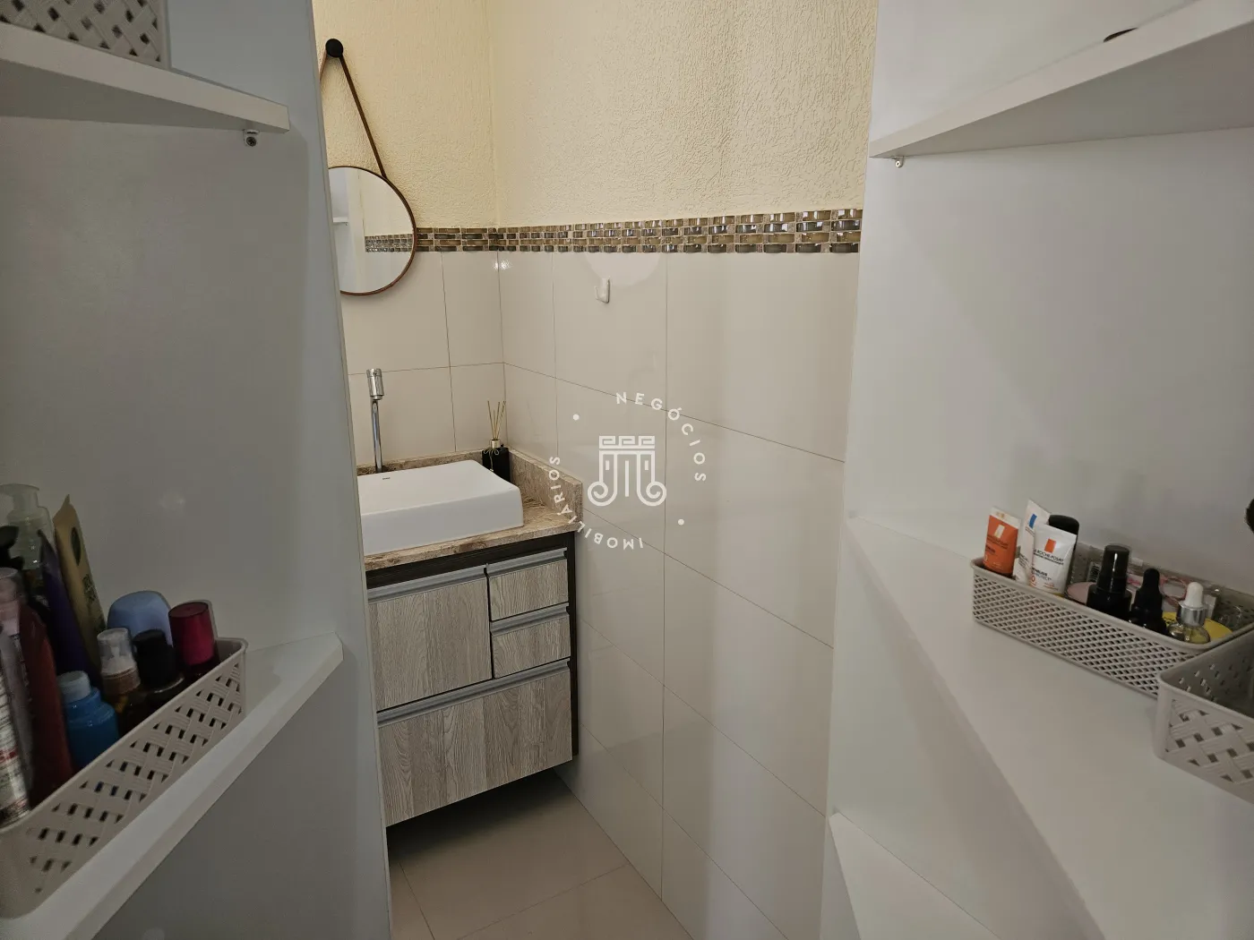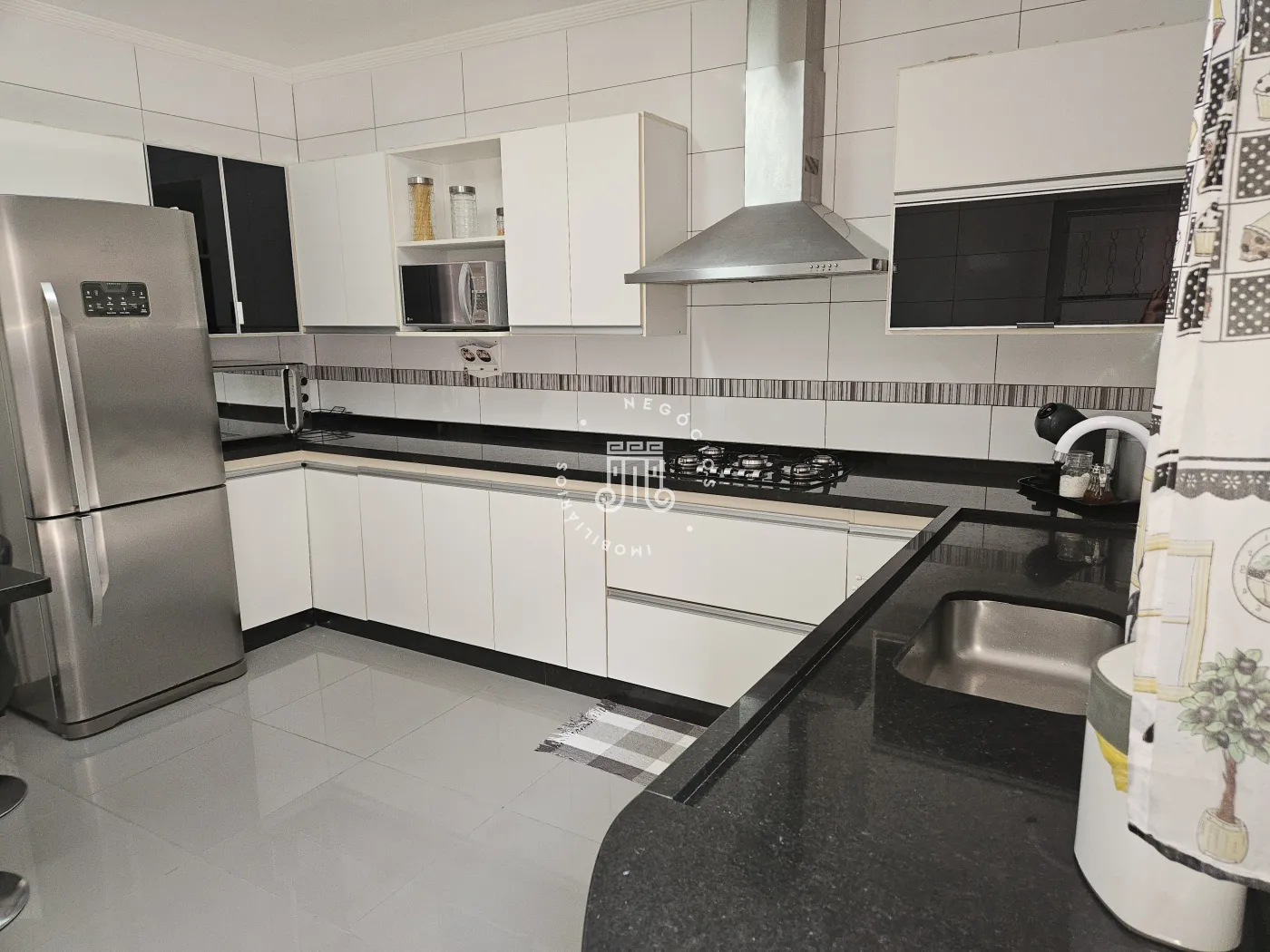 O imóvel possui: 03 dormitórios, 02 banheiros, sala, cozinha e 02 garagens.