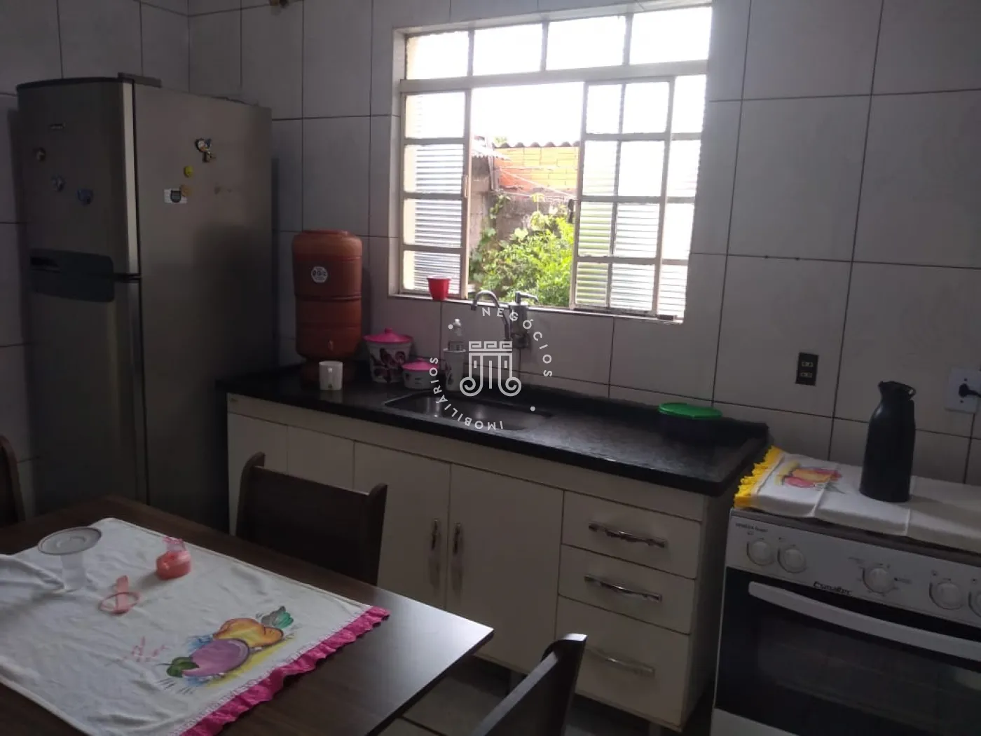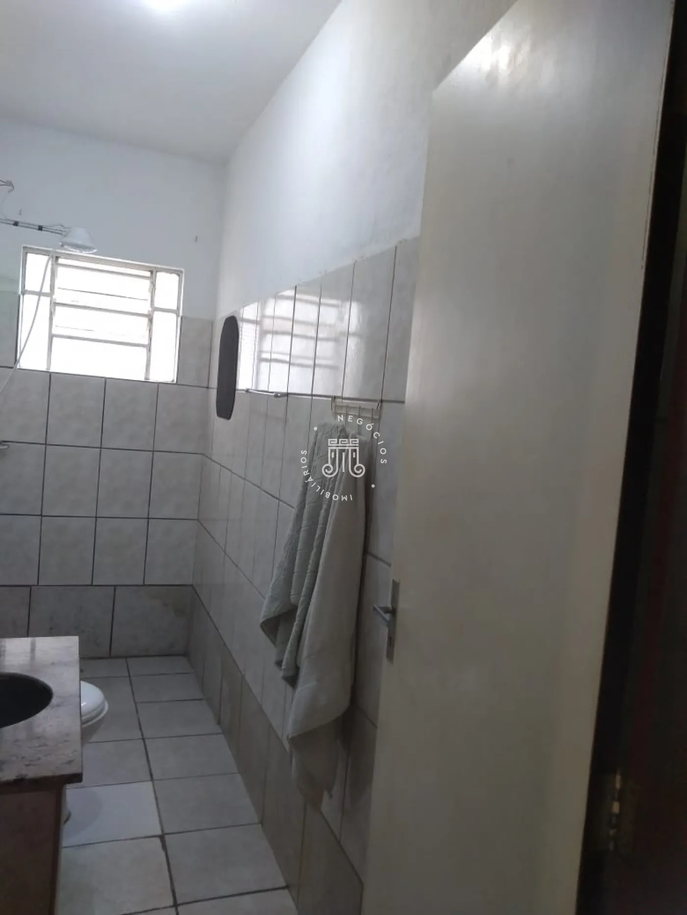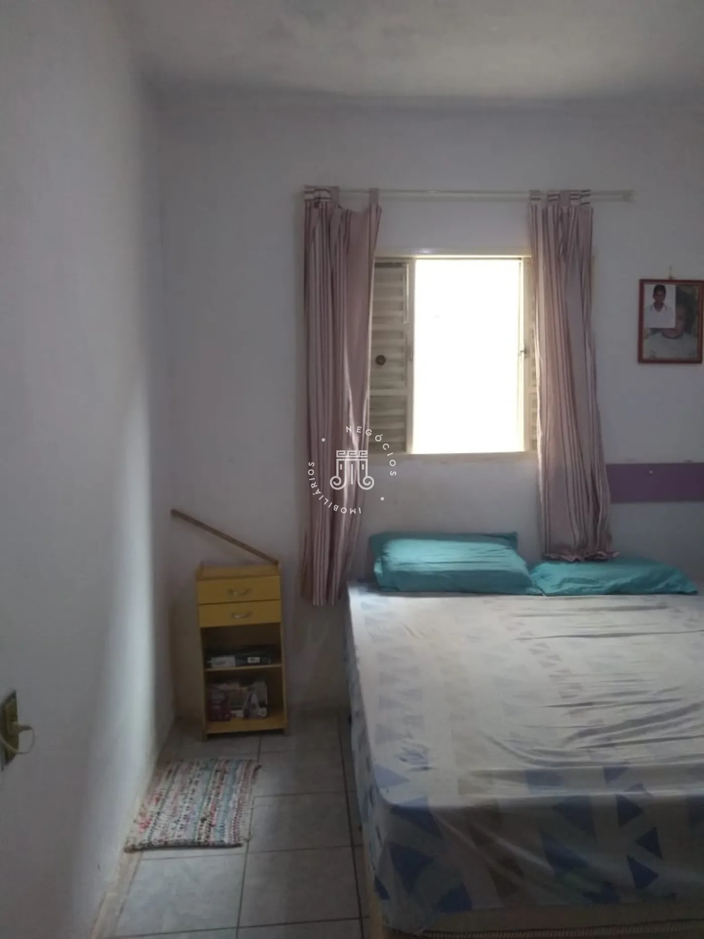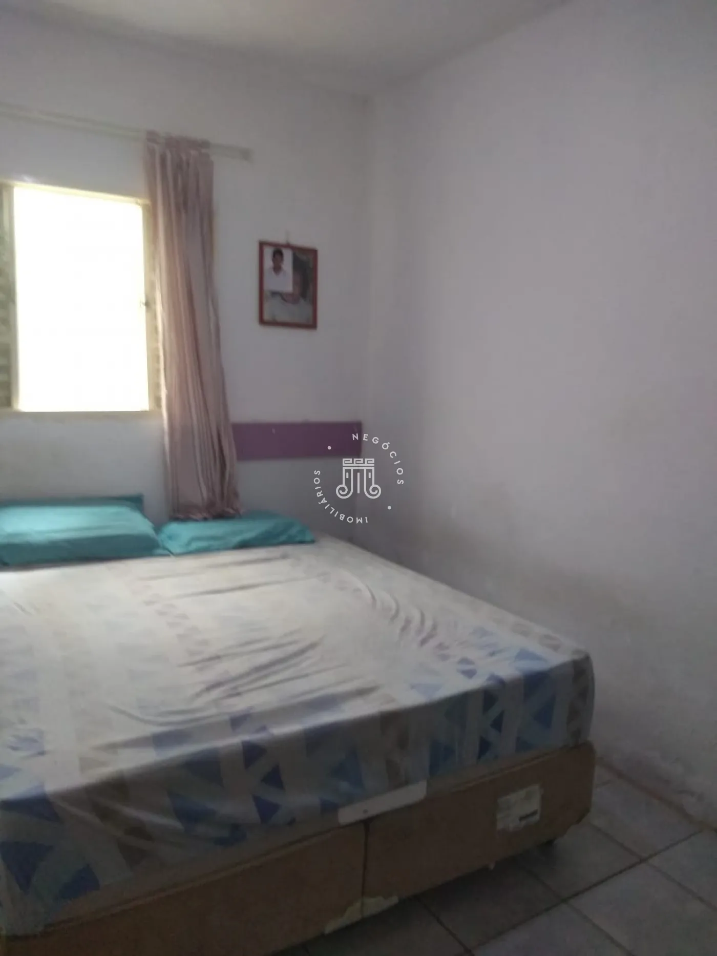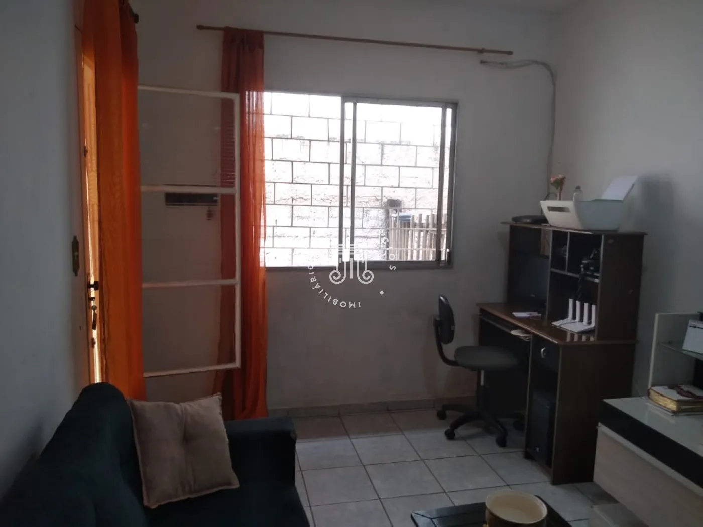 Casa disponível para venda no Residencial Jundiaí I. O imóvel possui três quartos, sala, cozinha e um banheiro. Conta com um quintal na parte frontal e nos fundos, além de um corredor lateral. Há um espaço destinado à garagem, com capacidade para dois veículos em vagas descobertas.