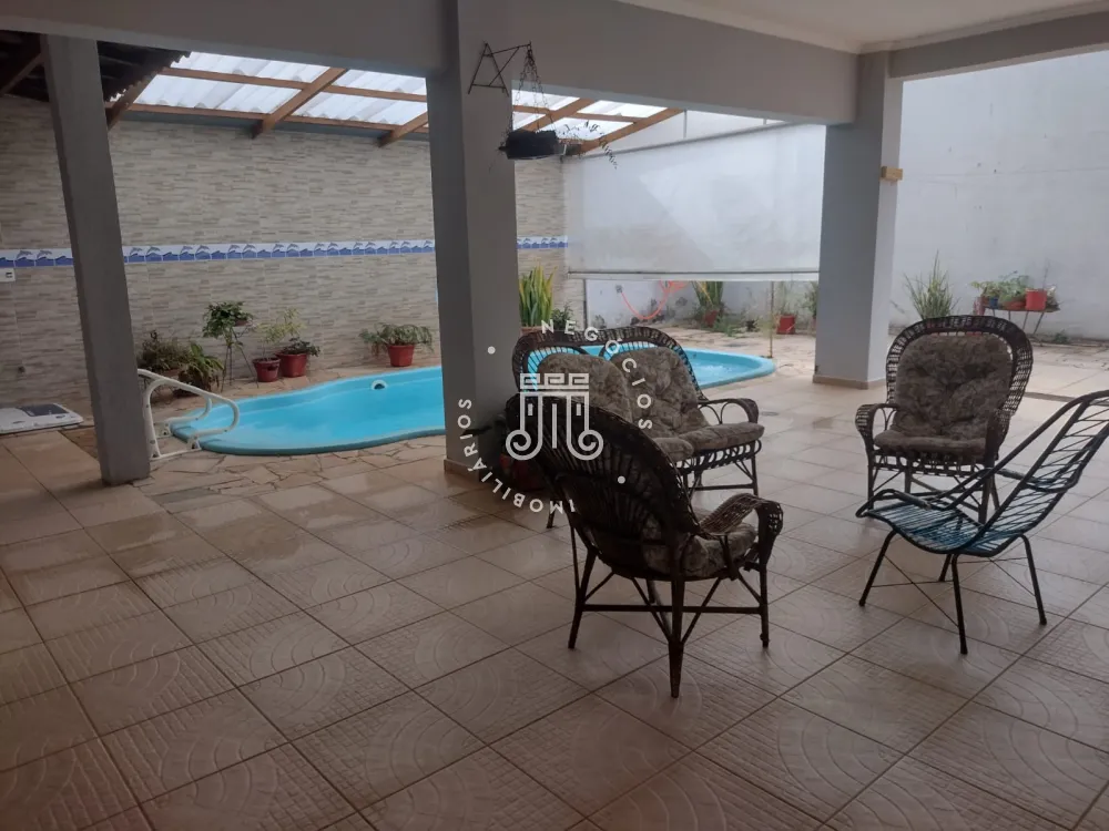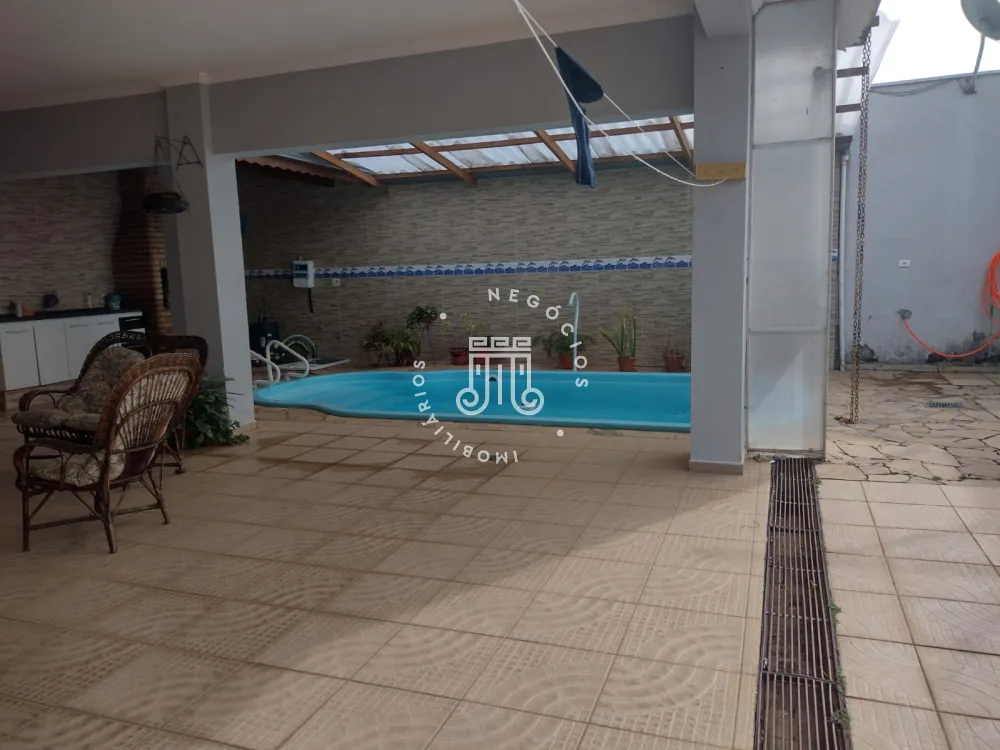 Composta por 03 dormitórios sendo uma suíte, com closet e varanda, sala de estar, sala de jantar, cozinha com armários, lavabo e 02 banheiros sociais. Com piso em madeira nas salas e dormitórios e piso frio na cozinha e lavanderia. Além uma ampla área de lazer coberta com churrasqueira e piscina aquecida e garagem para 9 automóveis.