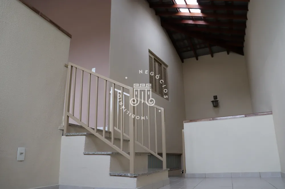 O imóvel conta com três vagas de garagem e portão automatizado.