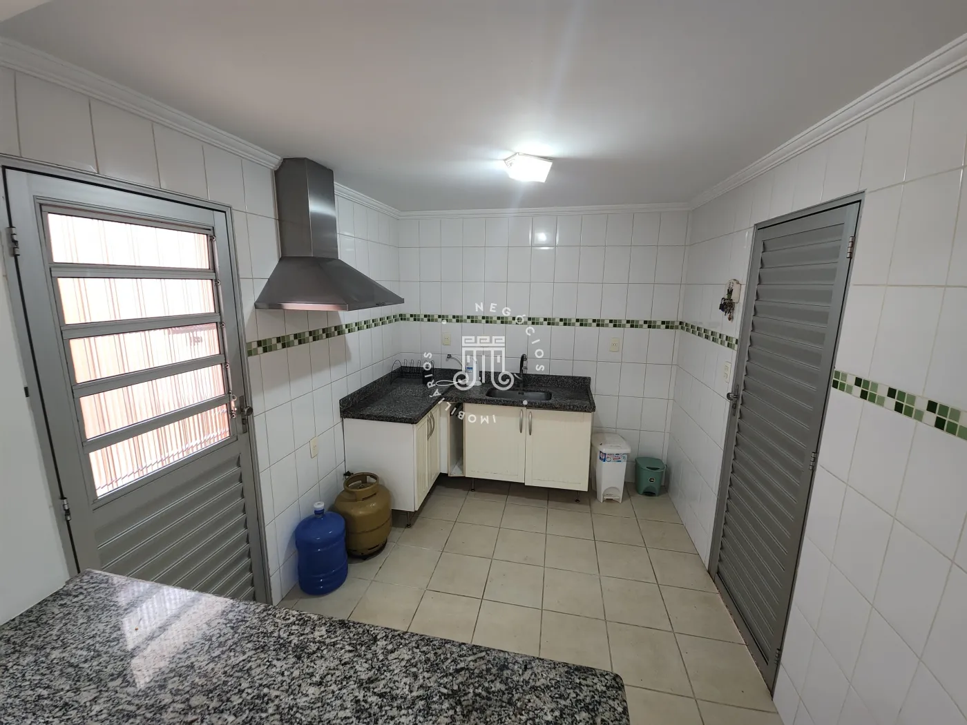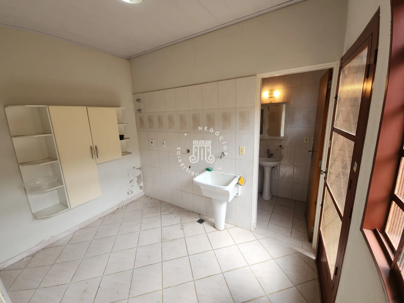 Nos fundos possui uma churrasqueira com pia, uma pequena edícula com banheiro. Além do quintal que é amplo e espaçoso.