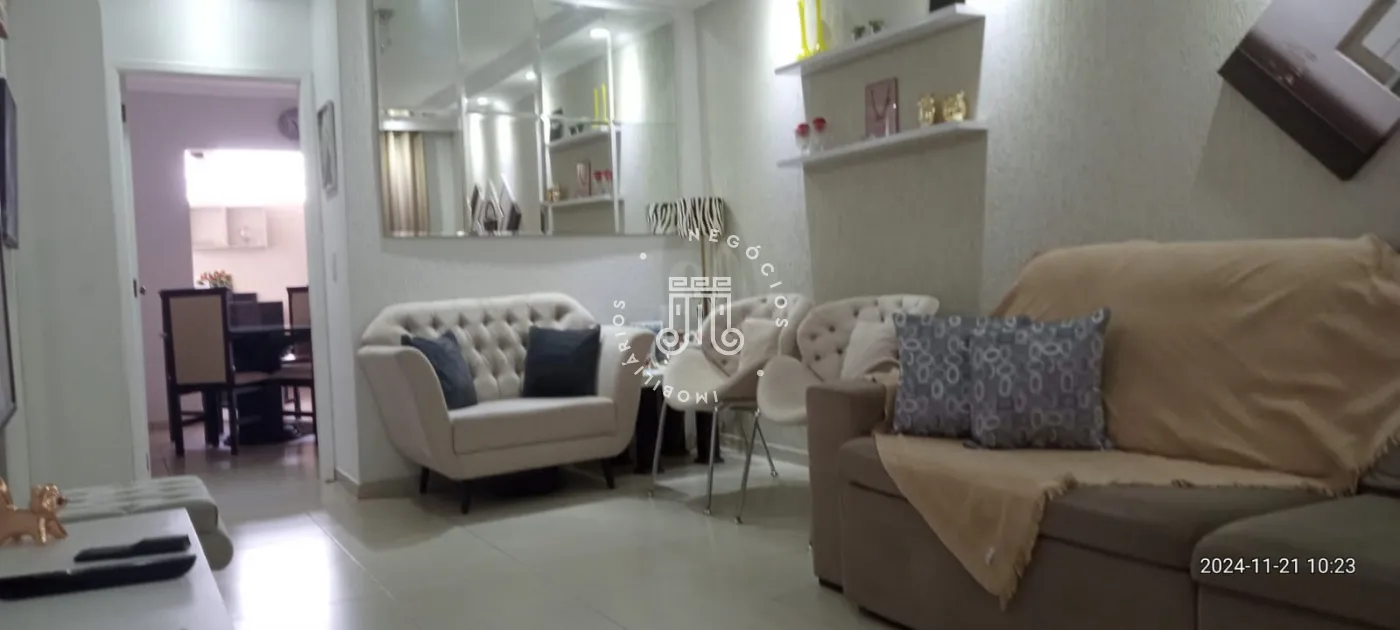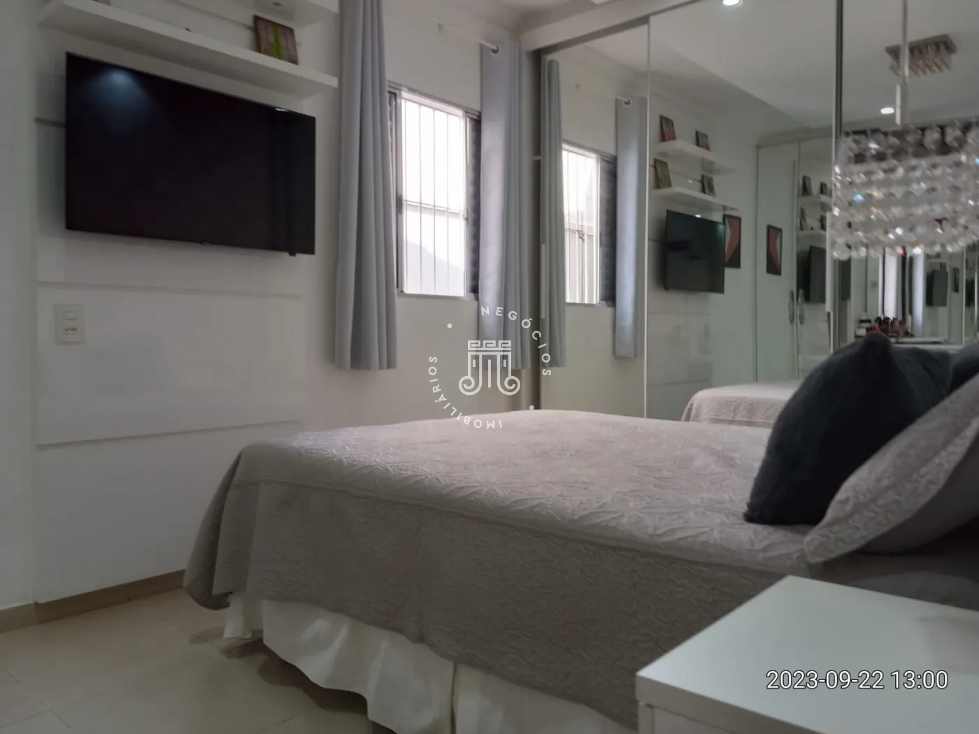 O imóvel possui: 02 quartos com armários planejados, 01 banheiro social completo, sala ampla para dois ambientes muito bem decorada, com acabamento incrível, ampla cozinha repleta de armários integrada com a área gourmet com churrasqueira e pia de apoio e ainda possui 02 vagas de garagem.