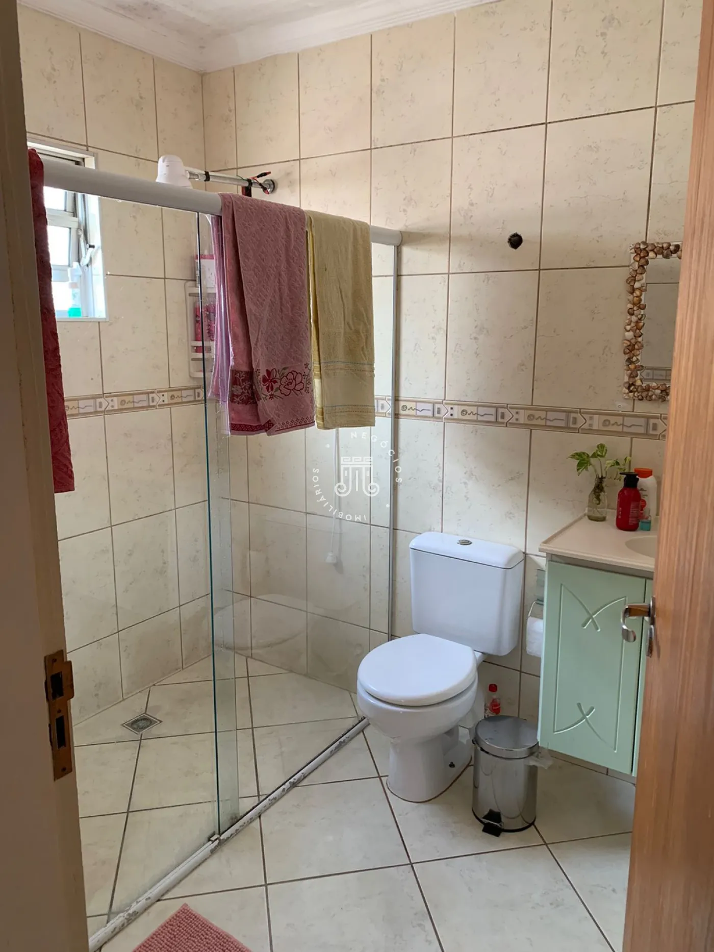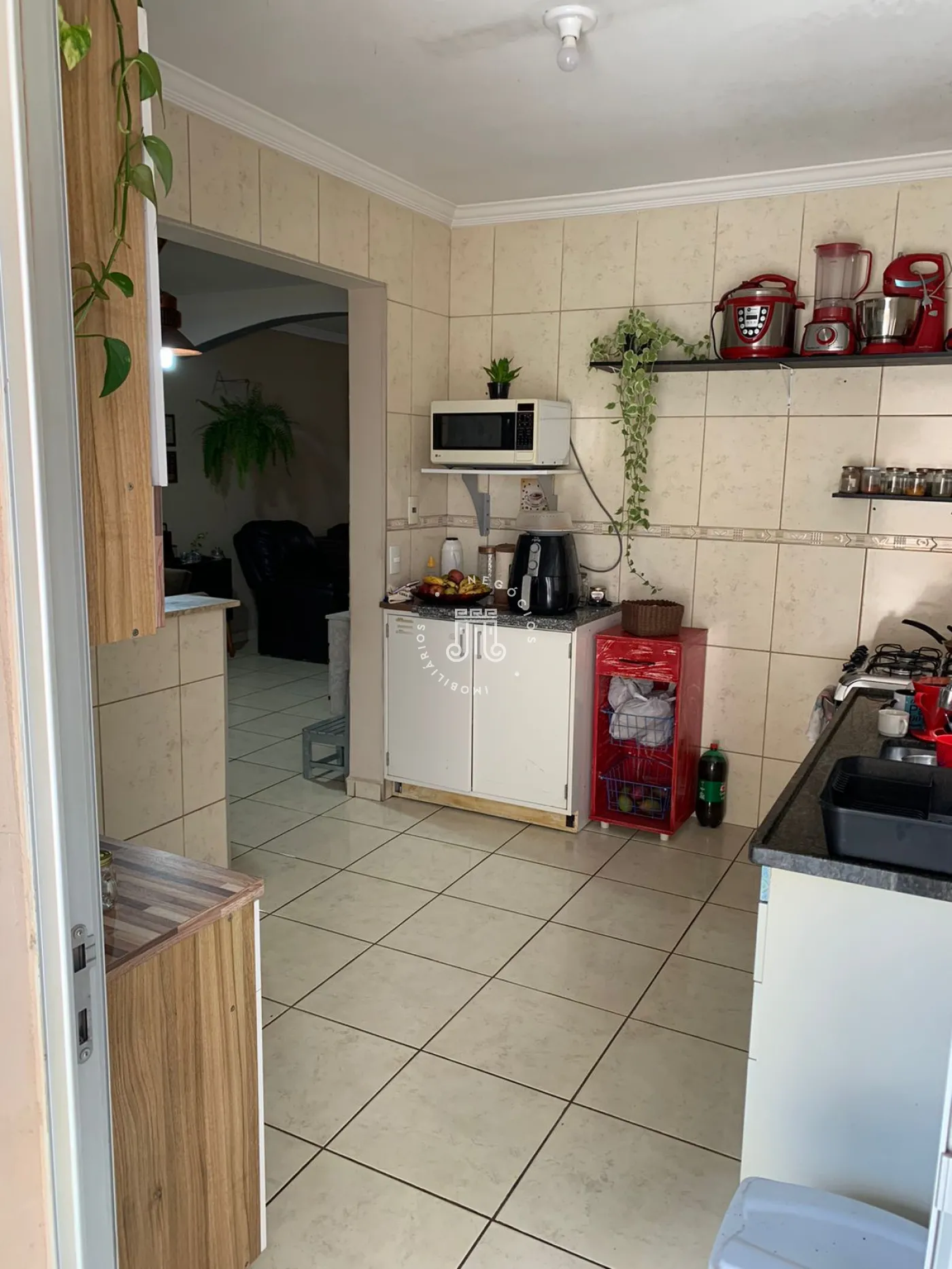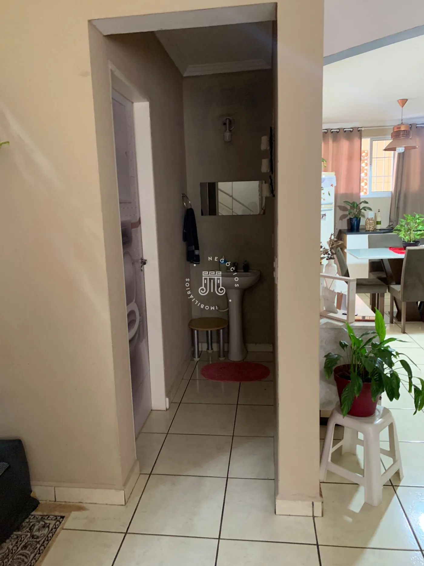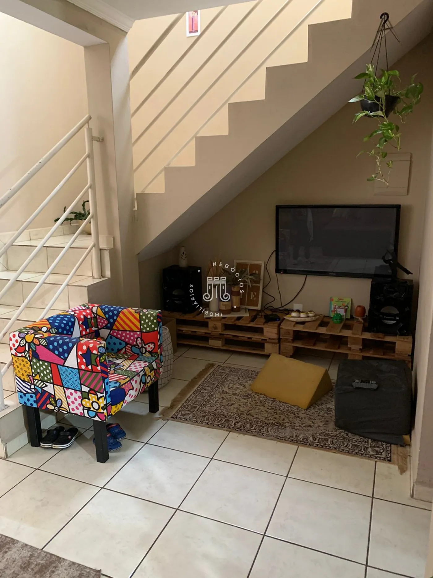 Sobrado com 02 quartos e um banheiro no piso superior, piso inferior com sala dois ambientes, sendo uma sala de estar e uma de jantar, cozinha estilo americana e lavabo, 02 vagas de garagem.