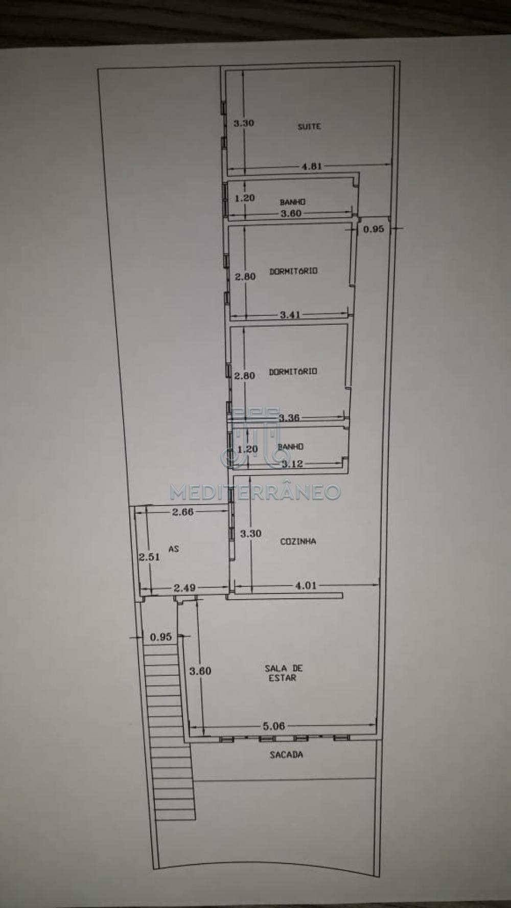 Com 2300 m² de terreno e 170 m² de construção, composto por 03 dormitórios, sendo 01 suíte, banheiro social, sala para 02 ambientes com sacada, copa e cozinha, área de serviço, churrasqueira nos fundos e pequeno quintal, e parte inferior 02 vagas de garagem, quarto de despejo grande e portão eletrônico.