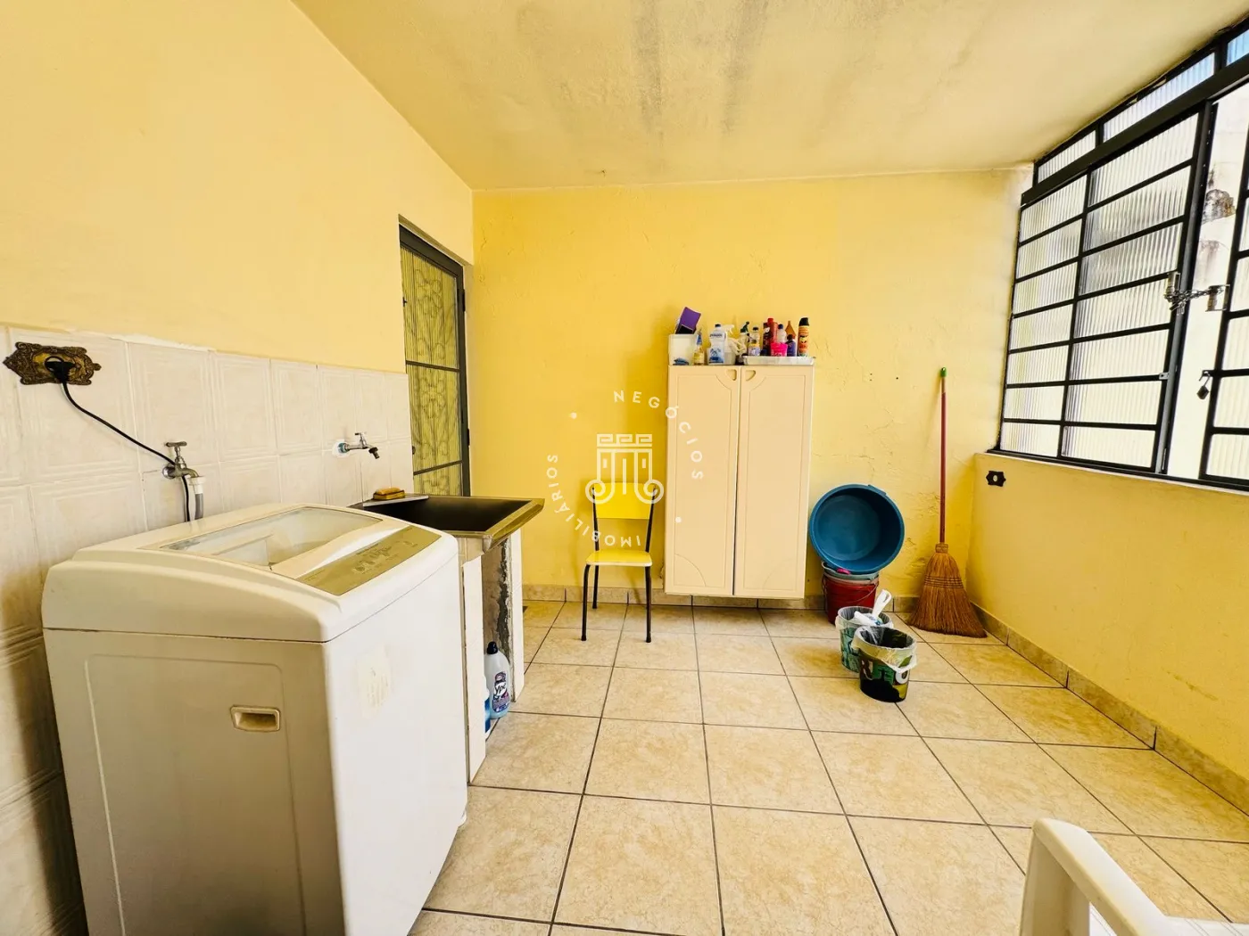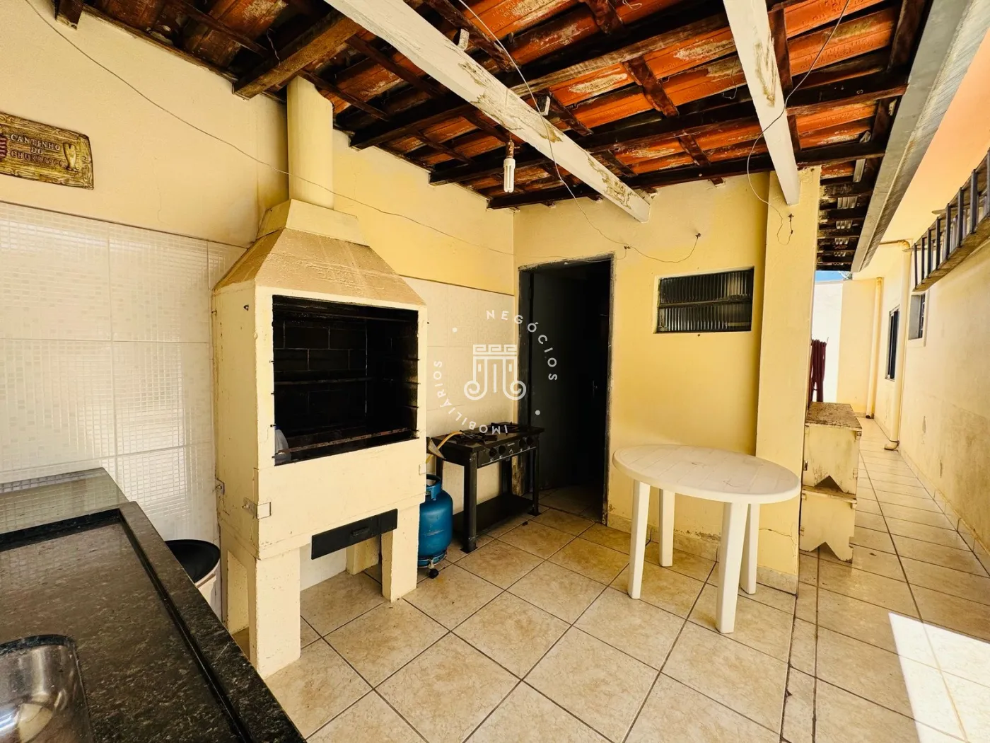 O imóvel é composto por três dormitórios, sendo um deles suíte, sala de jantar, sala de TV, escritório, banheiro social, cozinha, lavanderia fechada, quintal com área de churrasqueira e quartinho de despejo. A garagem comporta duas vagas cobertas e três descobertas.